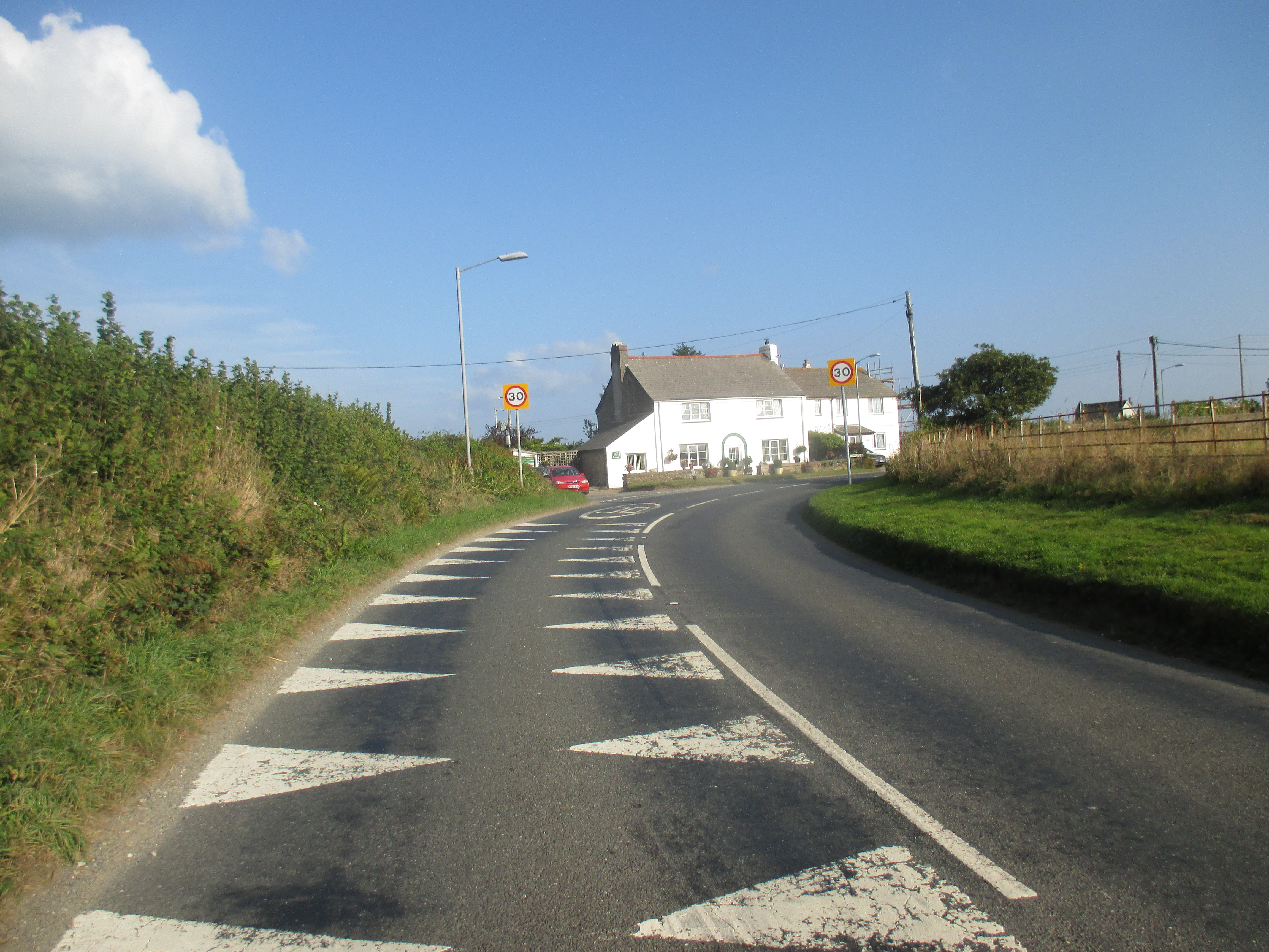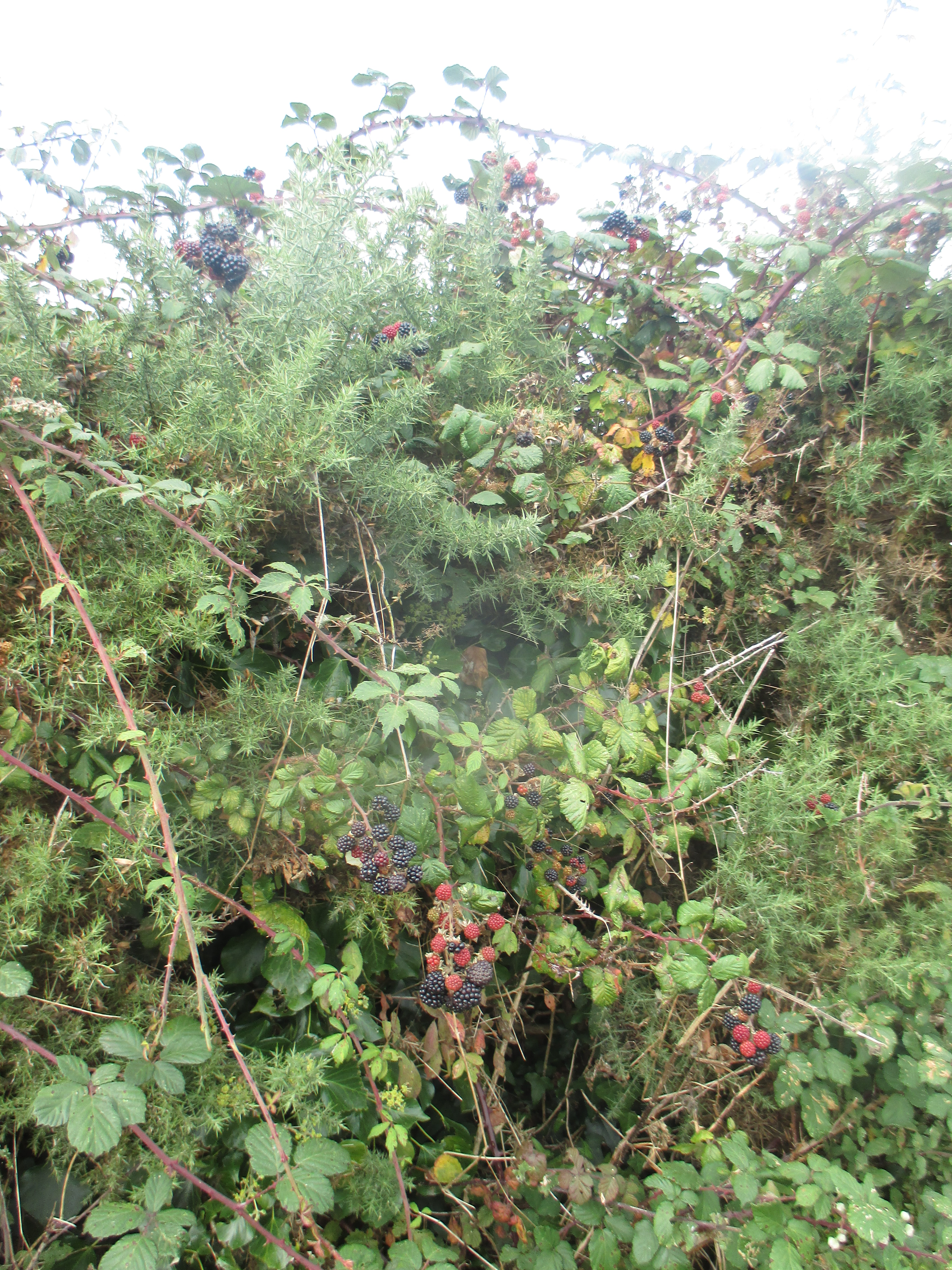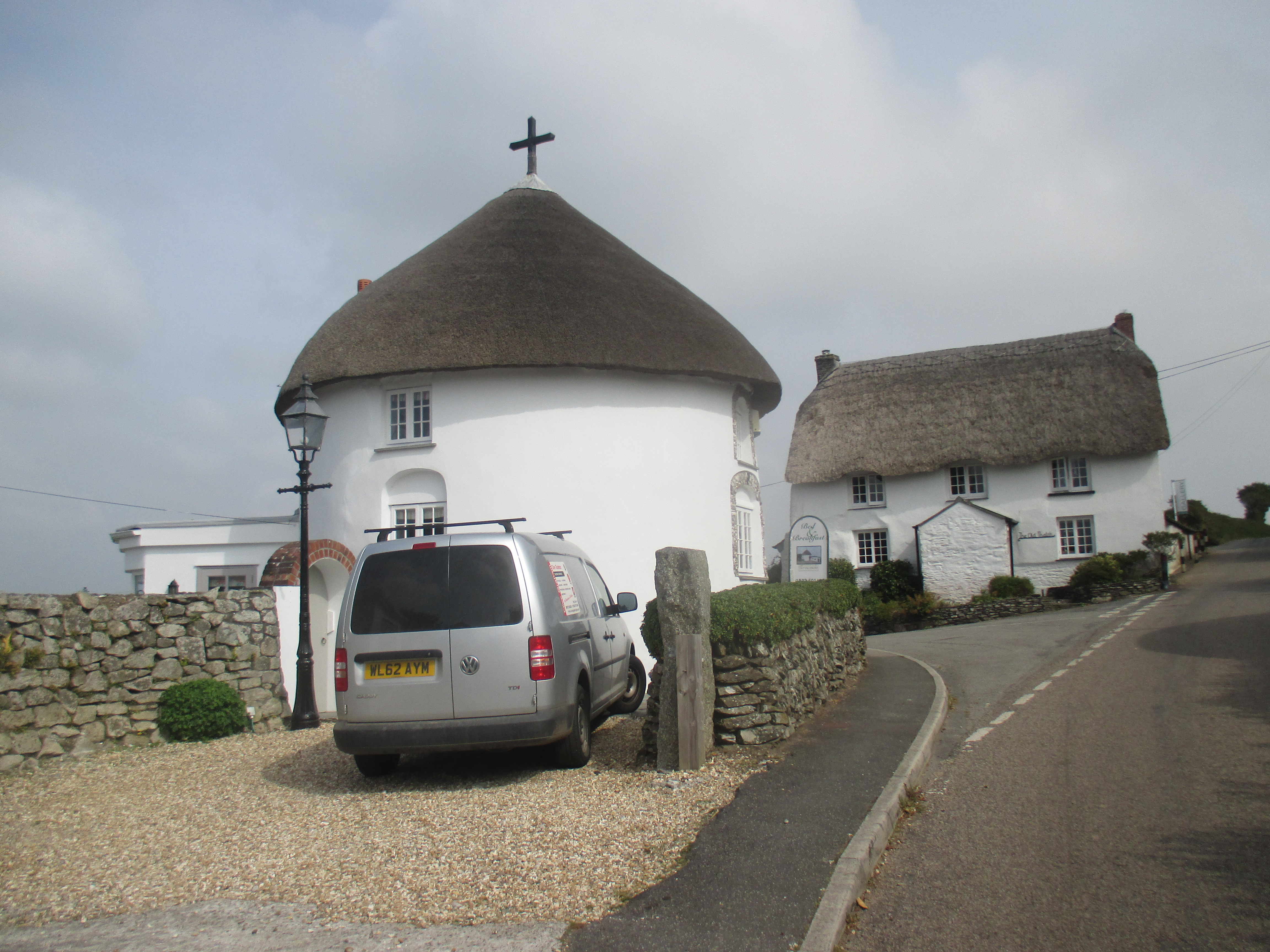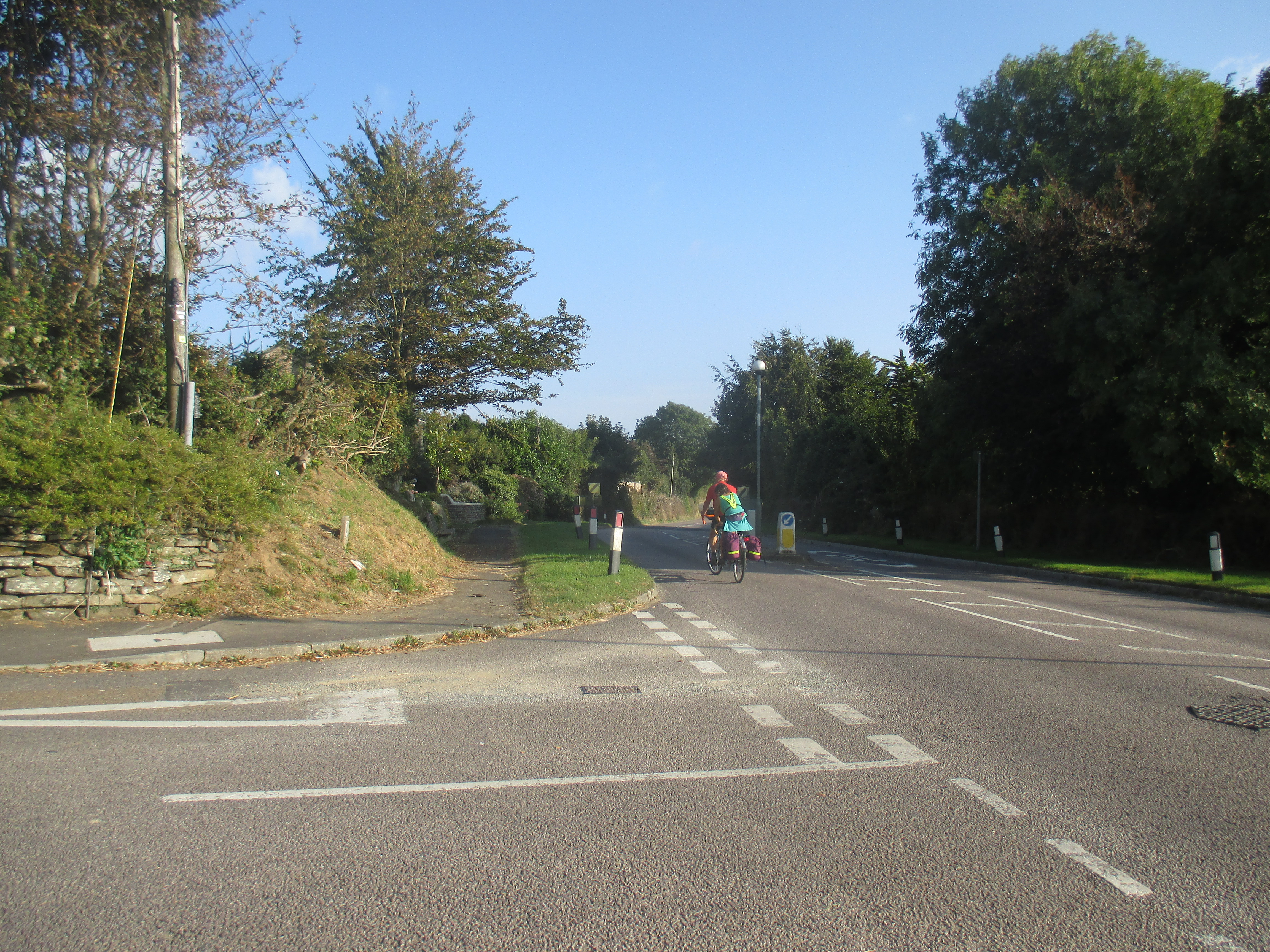 From St. Mawes I ride up and out towards St Austells, along a quiet and uninteresting country lane. There are undulating fields all around, but no drama to this scene, no wilderness, just hedgerows and tame fields, over and again. I’m riding through the Roseland, a remote and depopulated peninsula. Unlike the Lizard, Roseland’s rich in rural scenery. Villages with thatched roofs, a prissy community noticeboard, trestle-tables and jumble sales, then outside, small fields that suggest generational ownership, and bushes with blackberries that burst in one’s fingers. I ride out of St. Just and later, Veryan, then lose track of the eastward trail, veering up to the larger village of Tregony before following a road towards St. Austell. The scenery’s pleasant but little stays in mind. Mind drifting into itself, I decide to skip the old fishing village of Mevagissey on the eastern coastline and push on.