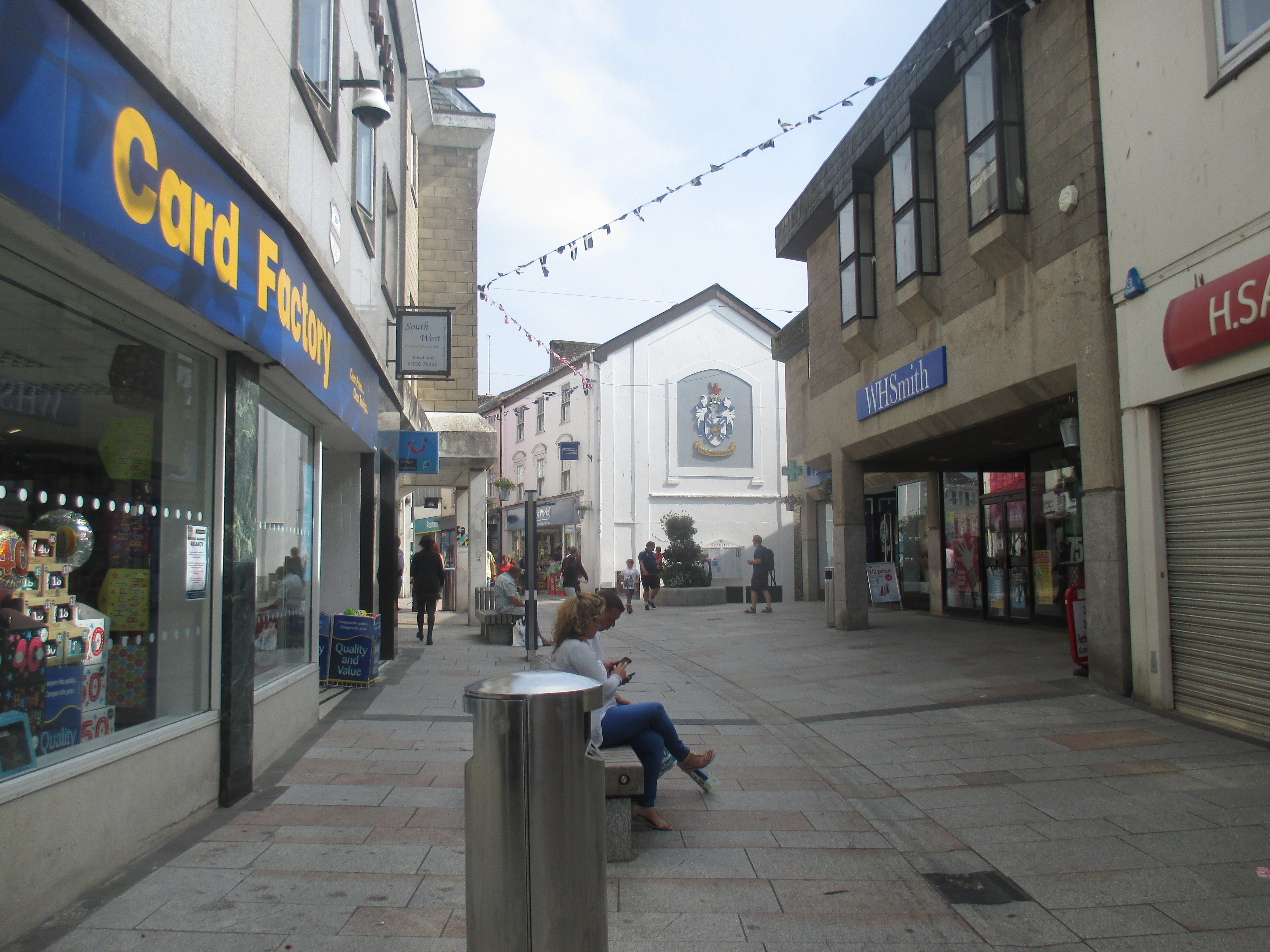 St. Austell is a large town, neatly arranged and modest in appearance. There’s a viaduct and a council built high-rise in the distance, so strange to see here, a reminder of home, dispelling the magic aura of Cornwall. That aura is perhaps an effect of the tourism industry, from the tales of King Arthur to its mythic surfing beaches. The town itself has no obvious centre and is underwhelmingly workaday. The town has been subject to a number of half-hearted attempts at development. A misguided attempt at producing an identikit British Town Centre has been effective. The White River Place is filled with familiar shops away from the older part of the town, causing whatever was the former shopping precinct to be taken over by charity shops or left derelict altogether. It’s eerily empty. A little like Helston, St. Austell seems to be a place for the tourists to pass through on their way to the Eden Project, and where the Cornish themselves can actually afford to live. But where is anyone?