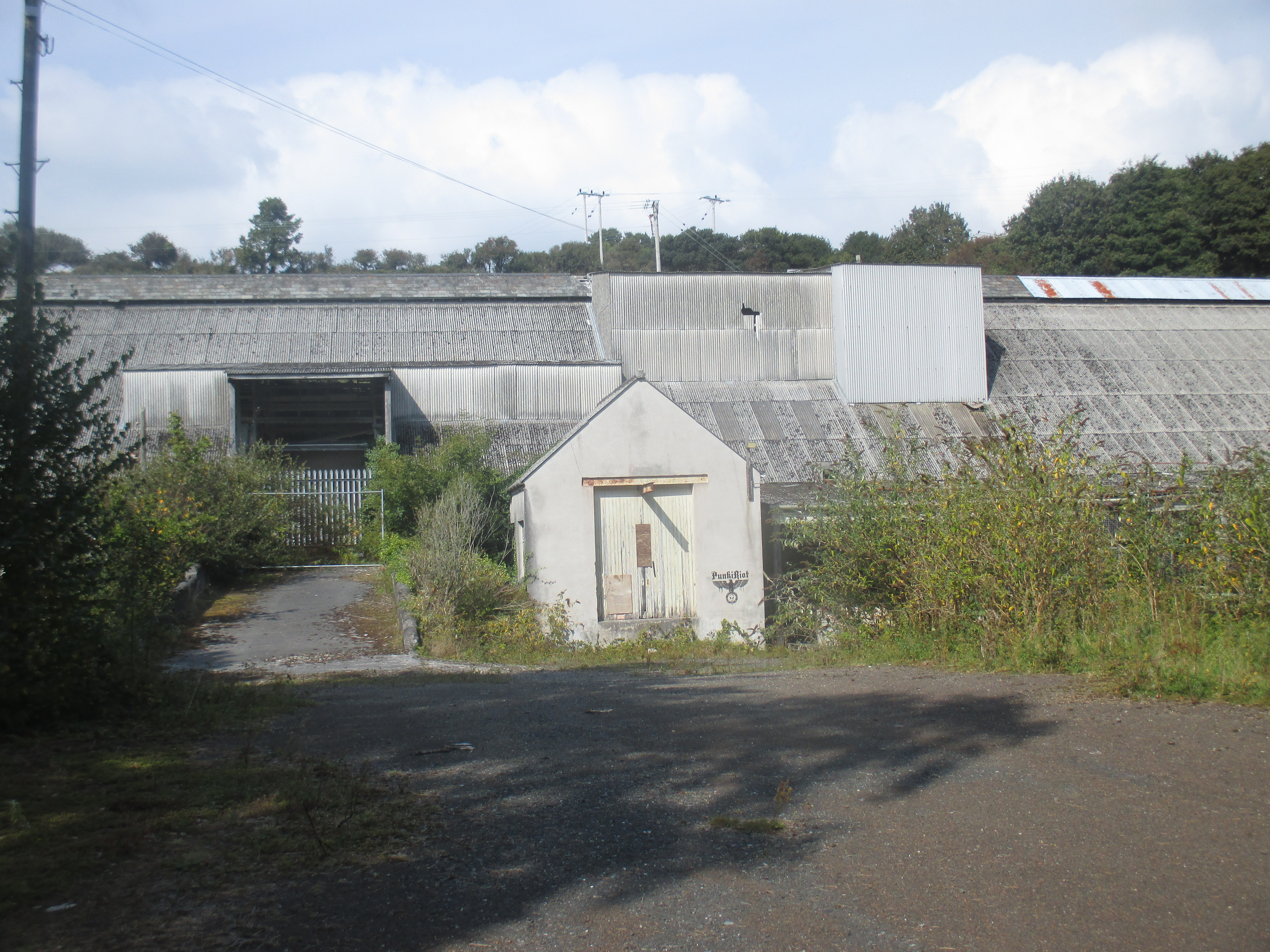 Riding east, my road hugs the edge of St. Austell Bay, though any view of the golden around is obscured by the trees, hedges and occasional warehouse along the road. Just south of the town, the shaggy sea shanty harbour of Charlestown is regularly used for Hollywood films. But east, as I go, a general air of abandonment hangs over the place. I ride through Par, an ugly old docking settlement with rows of tightly-cramped terraced housing. Whatever form of late-19th century industrial employment nourished the town has clearly vacated, and the area looks deprived and emaciated. By here is Carlyon Bay and the Cornwall Coliseum, once a popular music venue and seaside resort where big crooners like Cliff Richard, Shirley Bassey and the Who would come and provide musical form to people’s fantasies and dreams. Since the 90s it has been abandoned, and today it rots in the bay with the same permitted neglect as a world war submarine base, roof ripped off, waiting for one sharp wind to put it out of its misery and crumble it down.