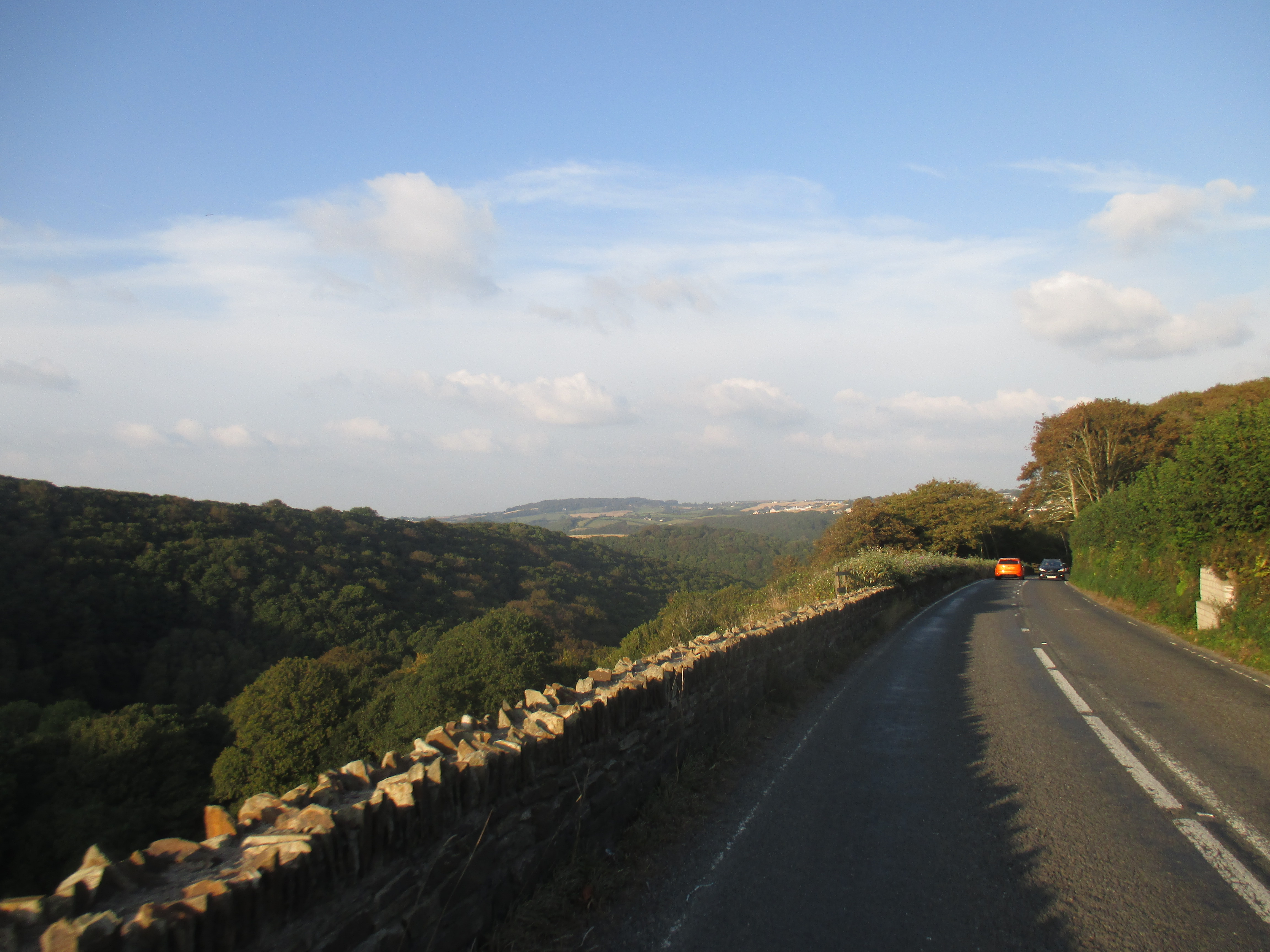 Beware the three Ws! Wind, wet and w-shaped hills. Thankfully there’s no rain, but the hills zigzag up and down, making it impossible to relax into a rhythm. Spend ten minutes struggling and huffing up a hill, then plunge down it again in ten seconds. Repeat twenty or so times. The wind is tough today today, grinding down progress, beckoning me back west. By the time I reach St Austell I’m quite knackered.