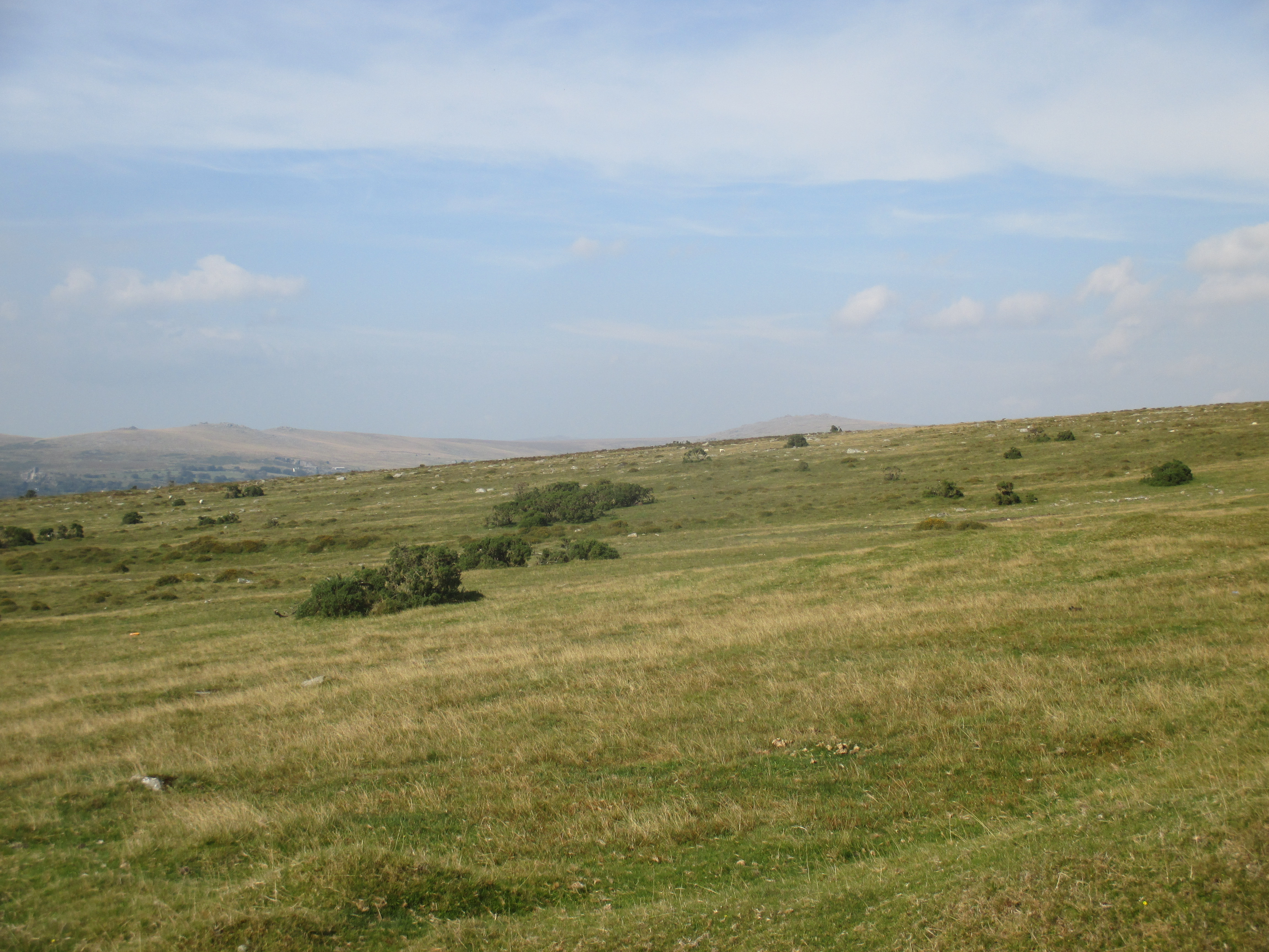Charles Windsor owns much of the land here under the Duchy of Cornwall, an entity that pays no corporation tax. The land is farmed in common here, hence the distinctive lack of hedgerows or drystone walls that one sees everywhere else. He has attempted to develop more farming here, but the harsh winters have made this unviable. ‘Dartmore is muche a wilde Morish and forest Ground’, writes John Leland in the 1540s, and even by 1789 Richard Gough describes a ‘dreary mountainous tract’. Much of it is open moorland, still today, and few roads cross through it, preserving its wildness. There are still standing stones, cairns and the remains of neolithic settlements across it, like the unusual double circle at Grey Wethers, between Princetown and Tavistock north, or the stone rows and circles at Yellowmead Down. Much of it is tors, rocky outcrops that explode out of grassy hill slopes, and beneath them, flowering heather, bracken, peaty bogs, and horses which look back with with idle curiosity.