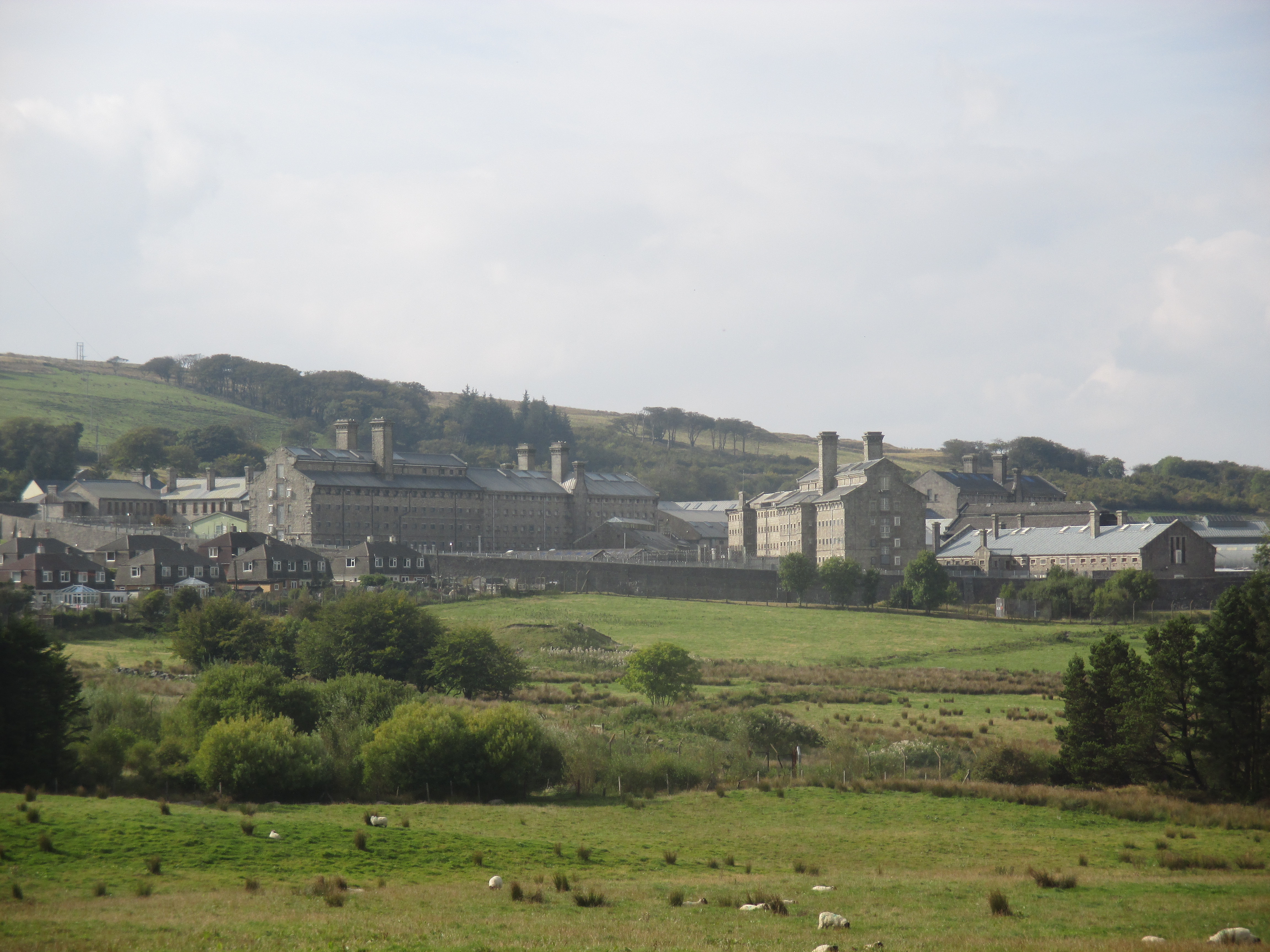 Eventually I climb up to Princetown – it is a steep ride, be warned – with the bleak granite of HMP Dartmoor in the distance, and stop for a little while in the visitor centre, where the electricity’s been cut off. It is one of the very few settlements on Dartmoor, and one built by French prisoners captured during the Napoleonic wars. The town is particularly isolated, and Imke told me earlier that many French killed themselves here after the prison was built, or were snuffed out by the plague. Its rugged desolation remains present now. There are few visitors in the tourist centre. The assistant inside points to an empty building opposite. There were arts studios here until funding dried up. Most young people leave the area, like her son, frustrated by the lack of employment beyond the prison and there being nothing to do. I explore the remainder of the modest village, past old St Michael’s church built by the same French and American prisoners of war, and further up, the large chimneys and workhouse-like grey-brick appearance of the prison itself. Today it is a category C prison which houses around 650 prisoners; in the past over 5000 were crammed here in appalling conditions. On its large stone arch is etched ‘parcere subjectis’, spare the subjected, take pity on those locked up here. Beneath it on the other side, a vacant parking space for the employee of the year.