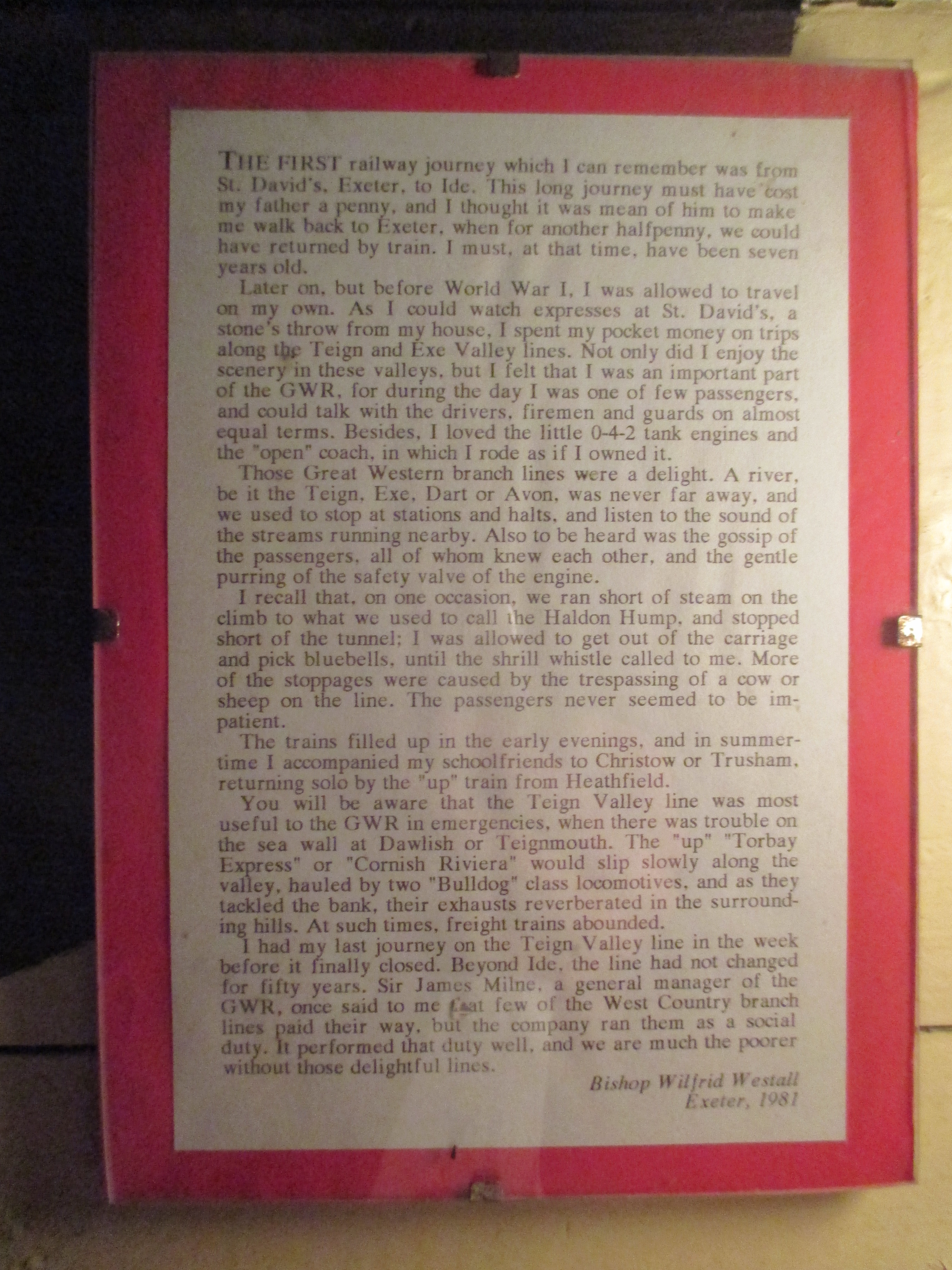 He’s ordinarily relaxed and self-deprecating, but his composure changes to one of passion and exasperation when on the subject of the modern railways. The collapse of the Paddington-Penzance railway at Dawlish due to floods earlier this year is a sore point. The huge disruption and millions spent in repairs could, he thinks, have also been used to restore the Teign Valley branch line, which was once kept open as a diversion line between Exeter and Newton Abbott, and on which traffic could continue in the case of more floods. But aside from the occasional helicopter or curious journalist, there has been no interest in his line, yet.