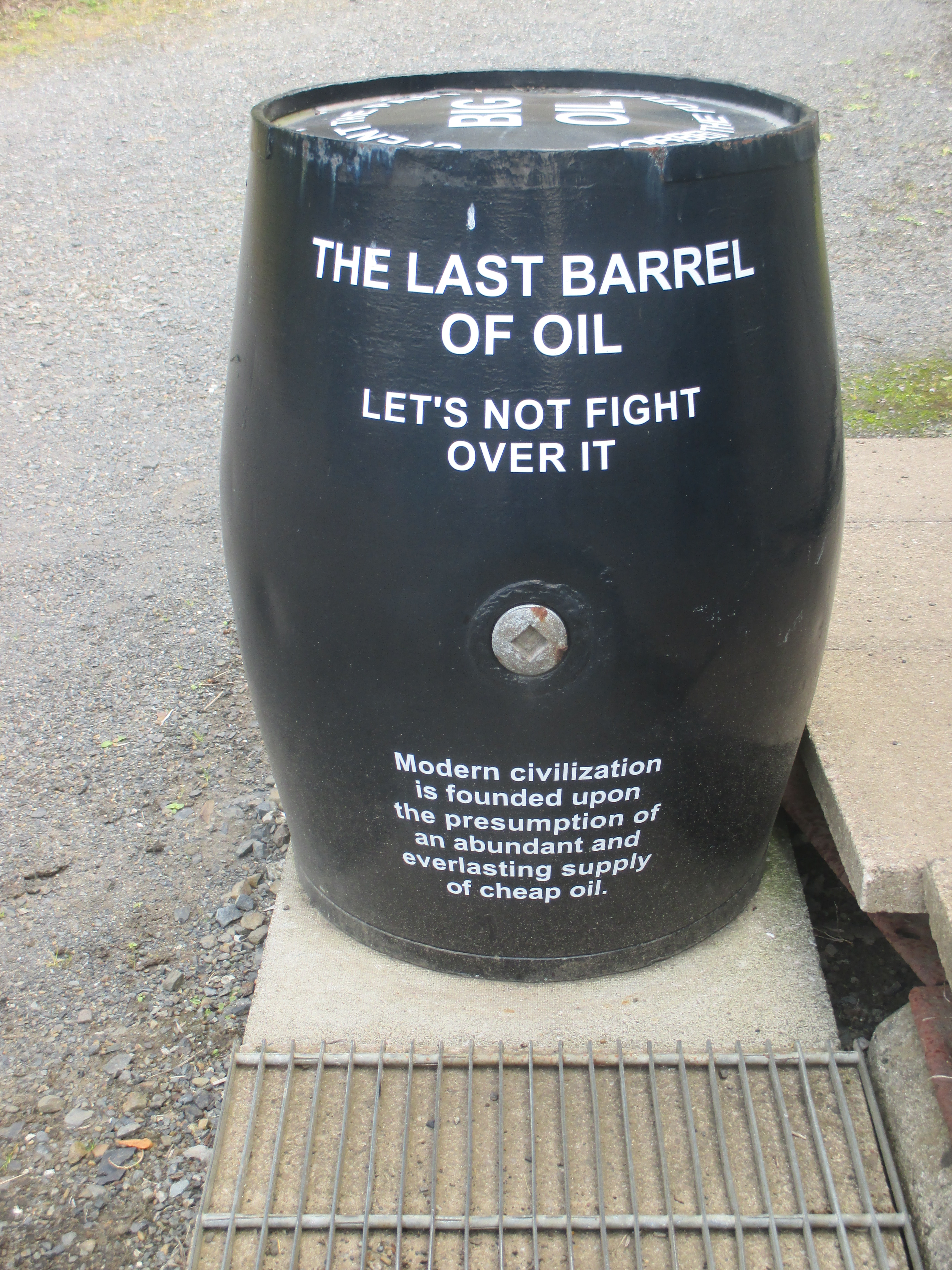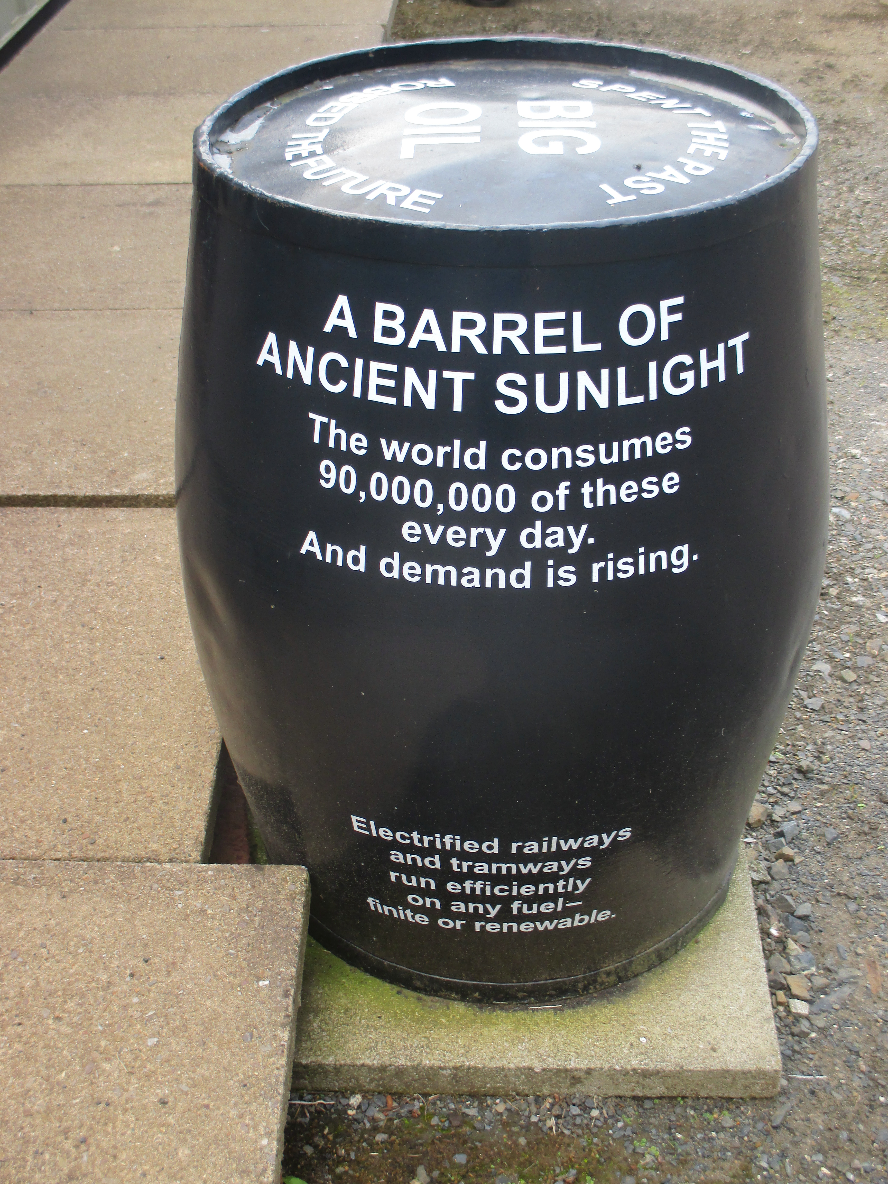 Morning has become early afternoon, and with hours passed in happy conversation, I really need to start making tracks. Before I leave, he points out an oil barrel beside the temporary office. ‘A barrel of ancient sunlight’, he’s had painted over it. ‘The world consumes 90,000,000 of these every day. And demand is rising.’ With no obvious breakthroughs in shale gas or nuclear fusion, and no committed policy to utilising the country’s abundant renewable energy potential, scarcity seems like a probability for the future, otherwise overcome by increasingly expensive energy. As I wheel out the bicycle, Colin insists on not taking any money for my night’s stay. I insist that he does, but there’s no capitulation. He laughs when I tell him how much I’ve written about our conversations. ‘Only a PhD could do that’, he chuckles. I sincerely hope he will reopen Toad in the future. It is the most interesting place I’ve stayed on in my journey. But before I go, he insists on one final thing: weighing the back of the bicycle. The luggage? Five stone, half my body weight. ‘That’s heavy!’ That explains why those bloody hills have been so tiring these last few days…