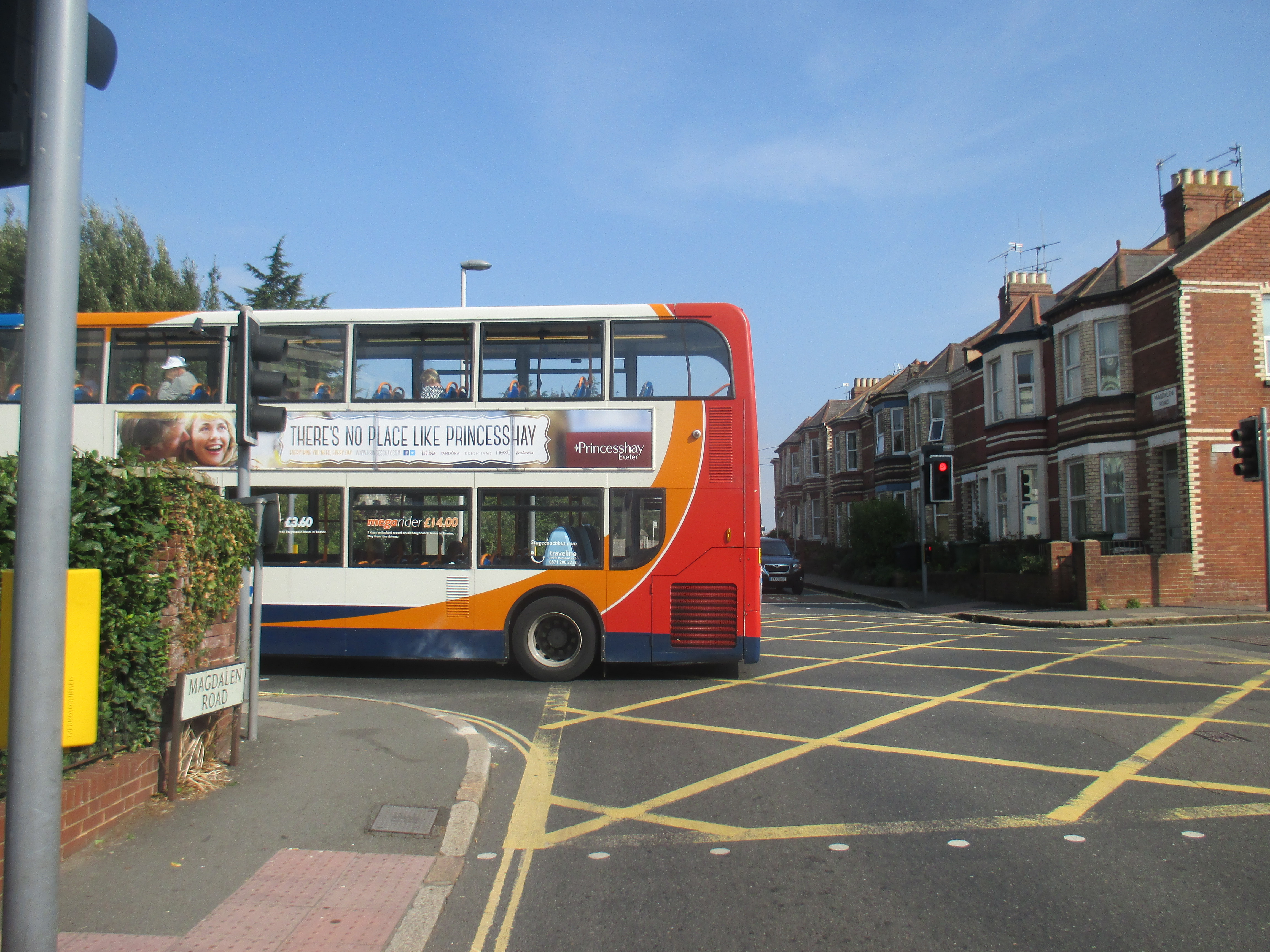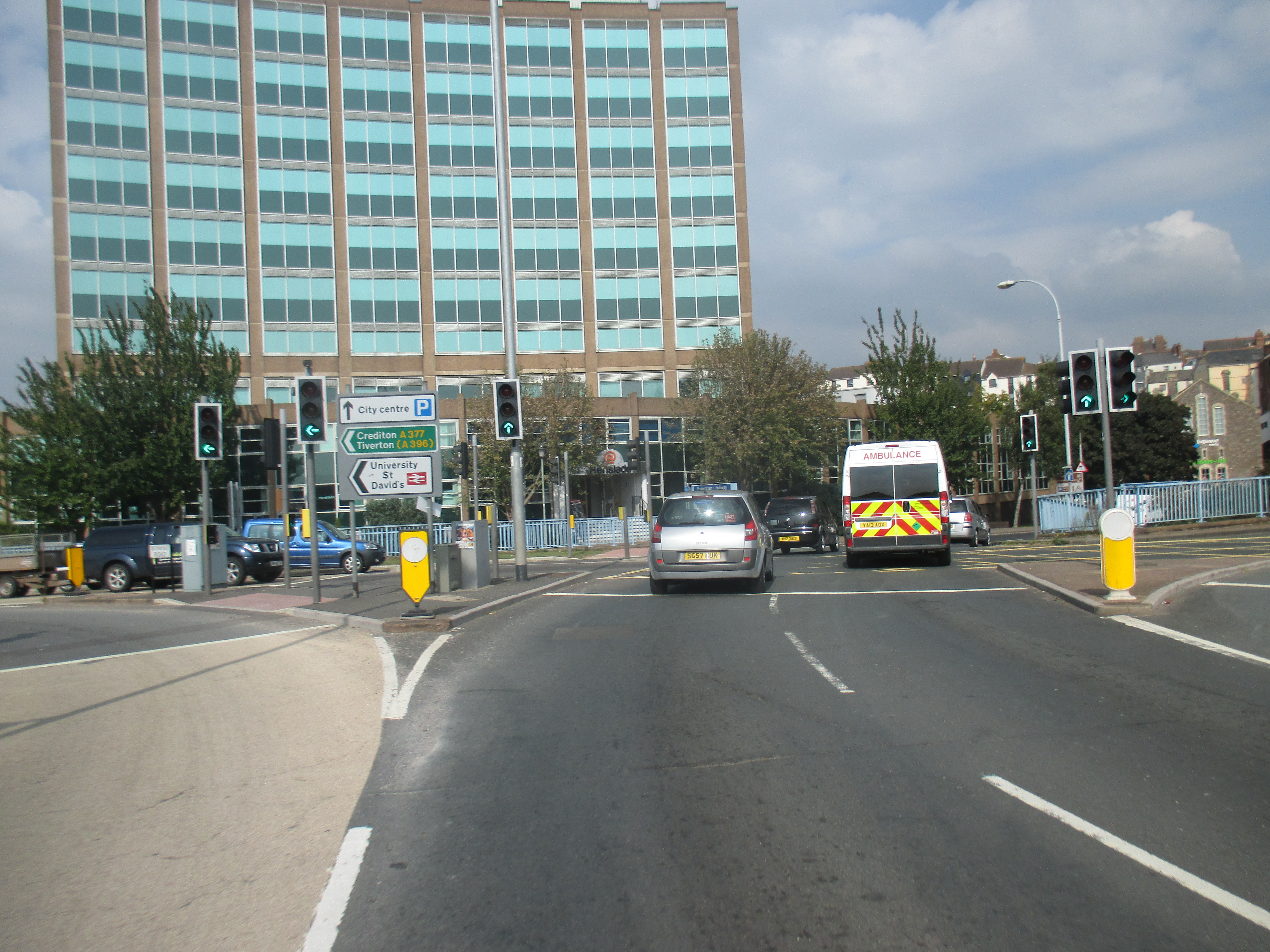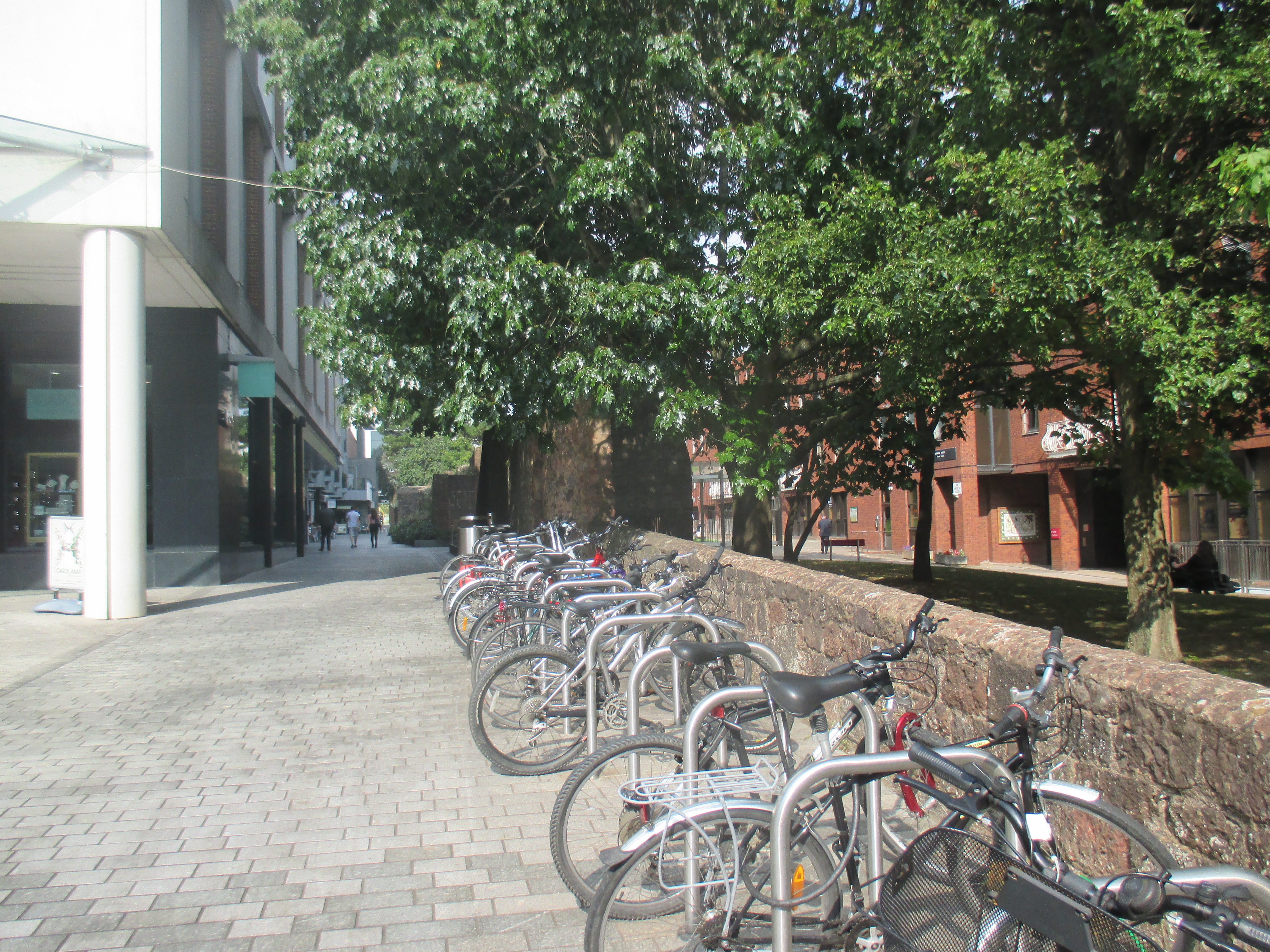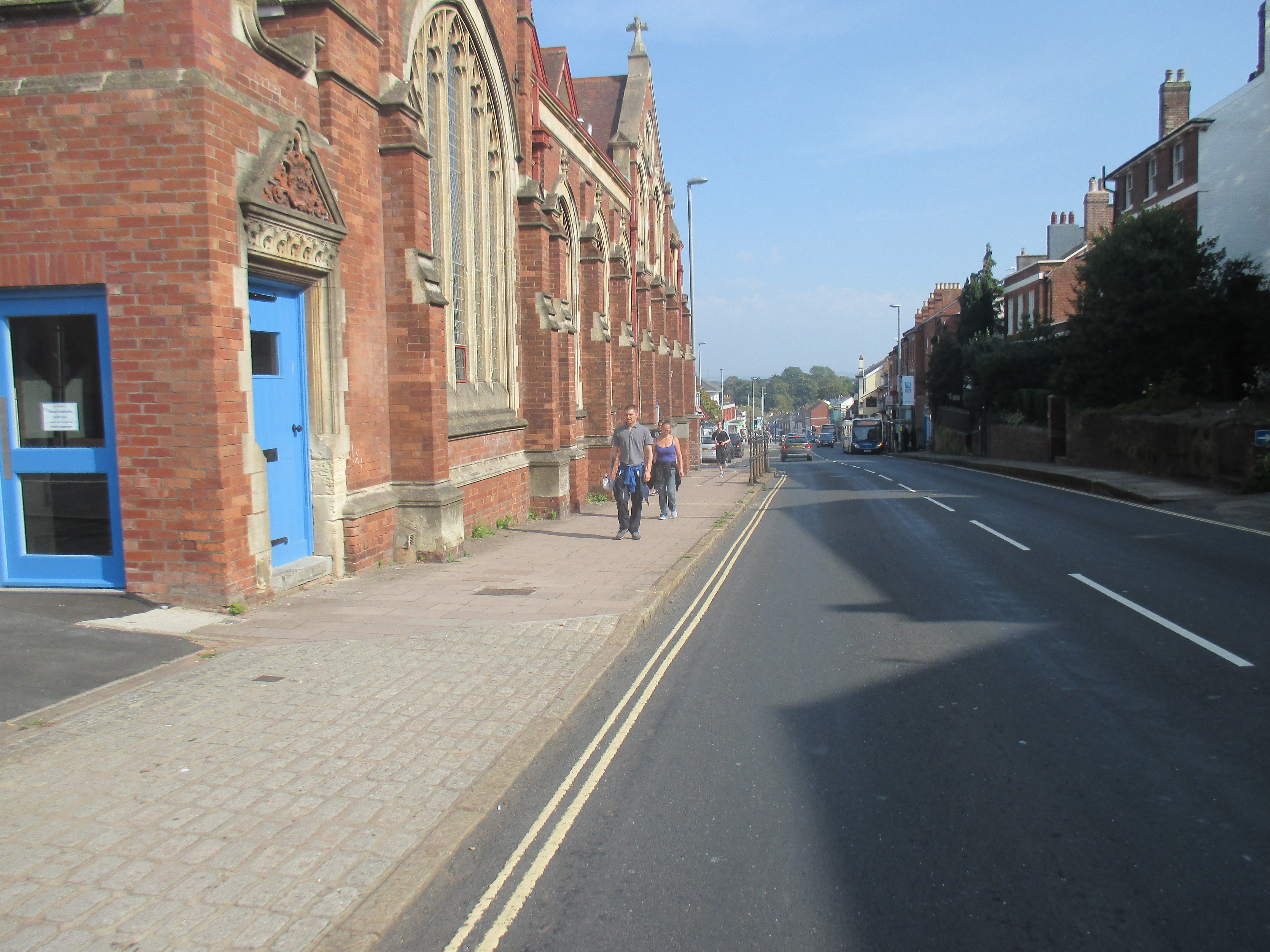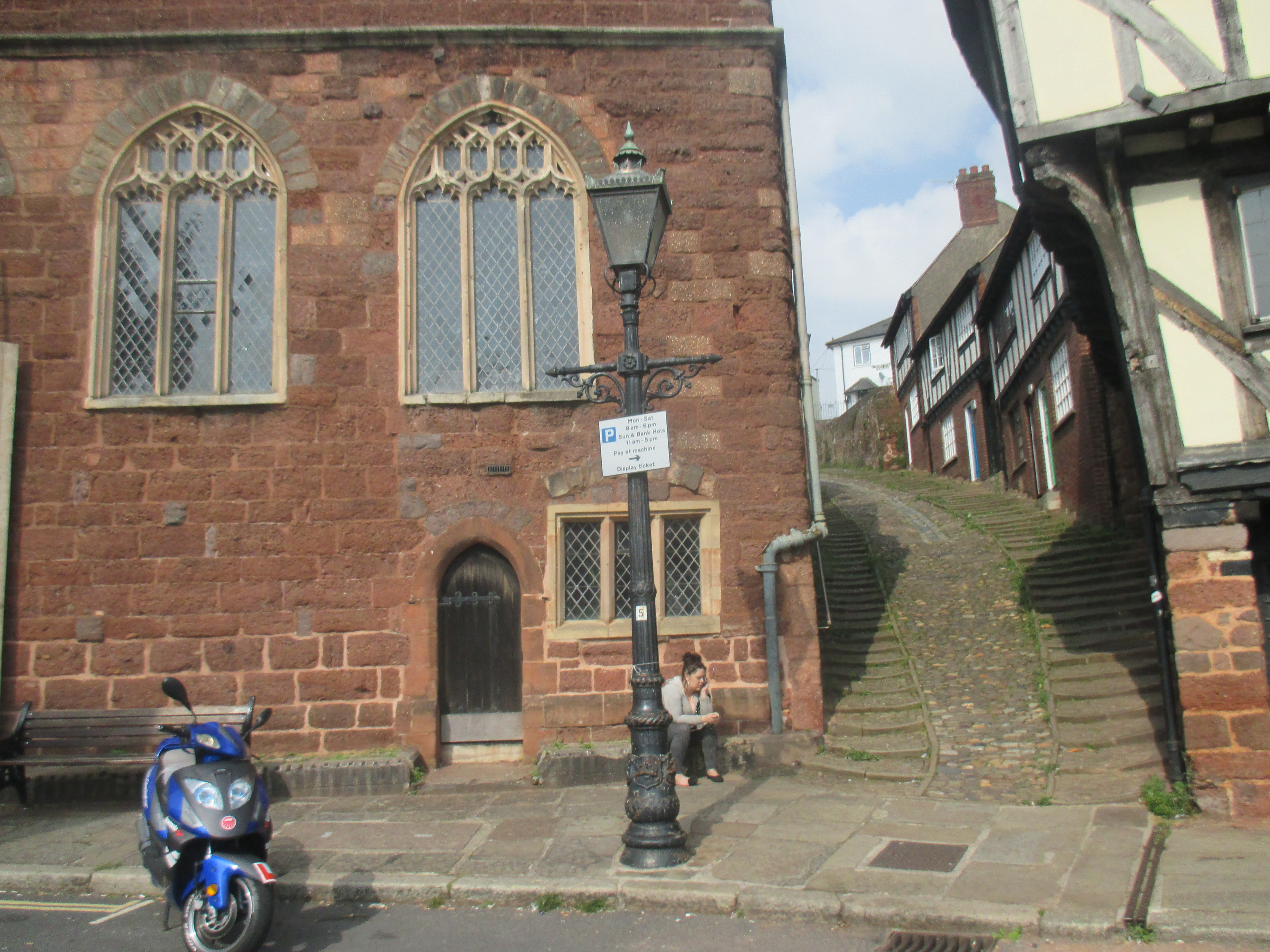 I ride out of Christow, passing the ruins of an old helicopter and a Christian retreat centre, all in strange proximity to Teign Rail and each other, before riding up towards Exeter. The land is more cultivated here than Cornwall, with thick hedgerows lining the road, and beyond them sweeping cocoa-coloured fields, freshly tilled, or wide expanses of golden corn fields. Clusters of woods peep up here and there as the road rises up towards Exeter then plunges down towards the city, situated in a valley. Its huge cathedral is remarkable from a distance, the bright white of its marble and gothic features dominating everything around it. It must’ve appeared staggeringly otherworldly to the rural Devonshire people as they travelled into the town for market days. The rest of the town is small and underwhelming. I push through Exeter St. Thomas, a tatty but friendly seeming suburb, then over the river Exe and into the centre.