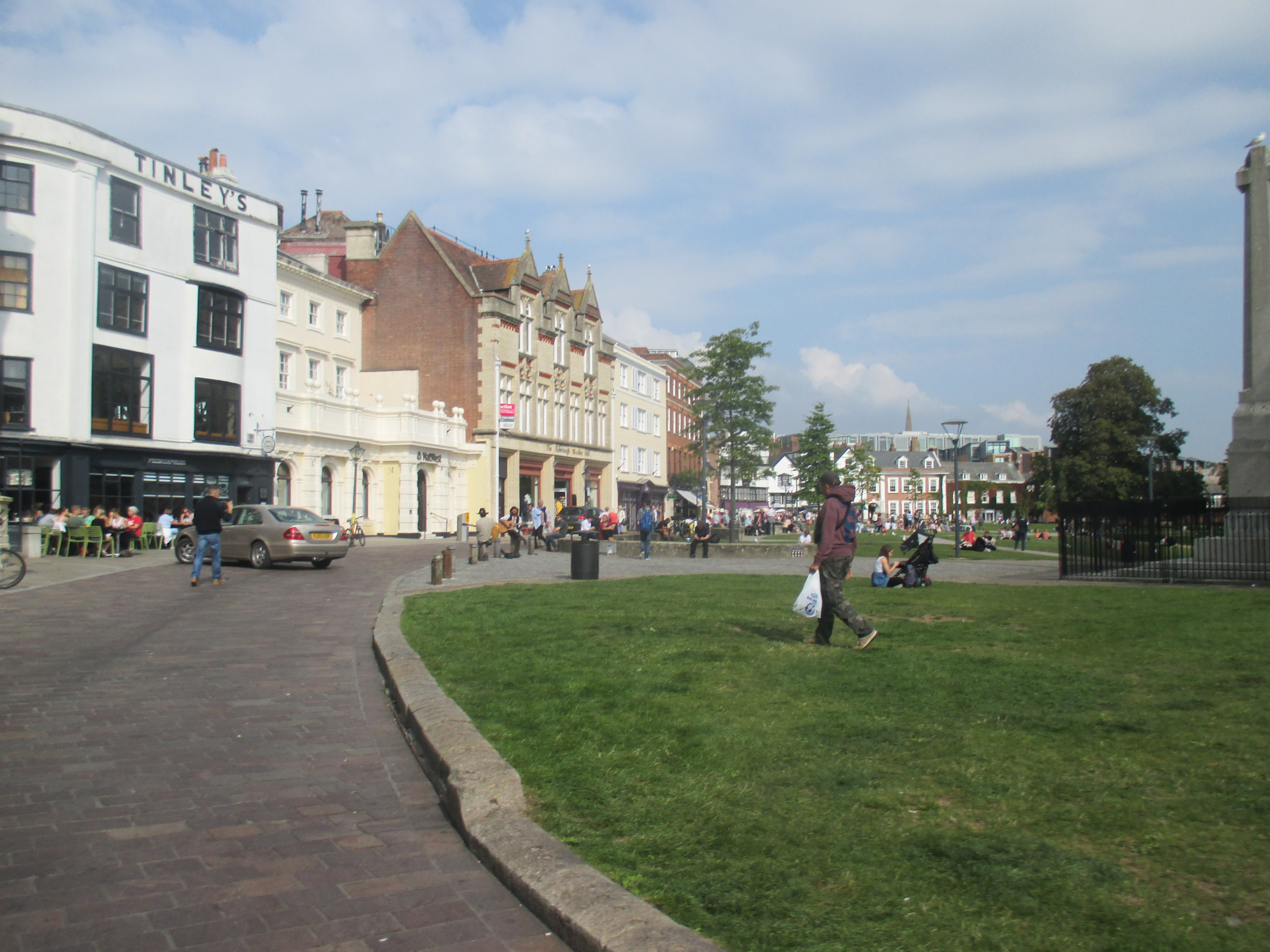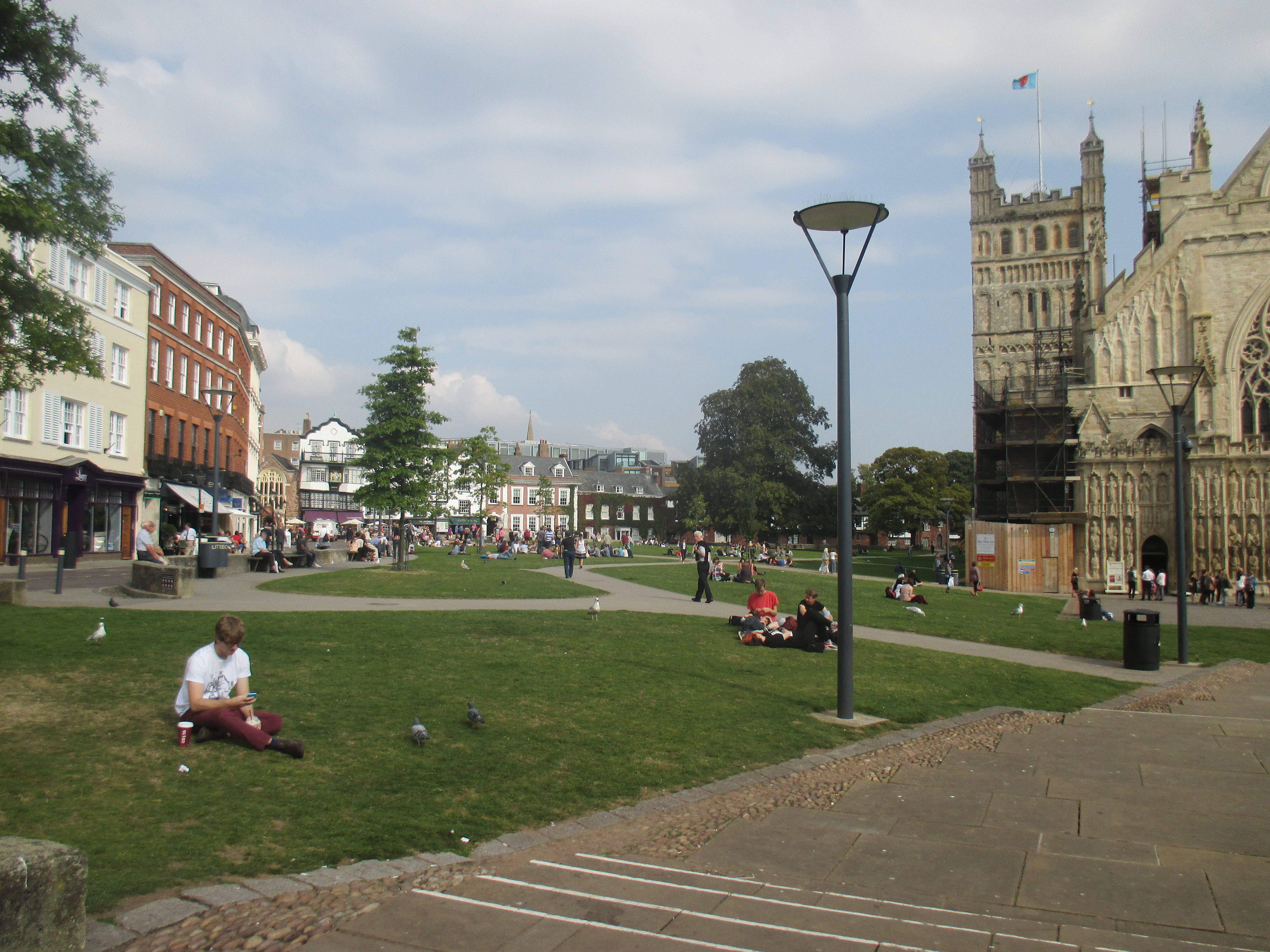 Far too much of the town centre is given over to a needlessly large series of shopping malls, but this is true of every English city, sadly without exception. There’s a number of interesting independent shops on Fore Street, and the cathedral area itself is a great place to stop. It’s a huge public space in the centre, and people of all ages are sat lunching and chatting on the greens, beneath weathered statues of old worthies and buskers desecrating the hymns of a countercultural yesteryear. Just out of the town is the large university, a place I presented research at last year. There’s not much to dislike about Exeter, really. If anything, it’s a little too nice, a little too straight-laced. There’s not much that stands out about it, in a good way I guess, but I need either bitterness or spice to enjoy a place, and that’s lacking. It is too cosily attached to its histories, and seems to be entirely ignorant of the vast ugliness of its bus centre, car parks, or modern malls in more recent times. There are no independent bookshops, and nothing that suggests an active civic identity, or empowered, or diverse, local communities. It is obviously more affluent and genteel than say Plymouth, but I’ve not met anyone over the last few days with any special praise for the city. It’s nice, and that’s it, is the sentiment I hear. Well, nothing wrong with that.