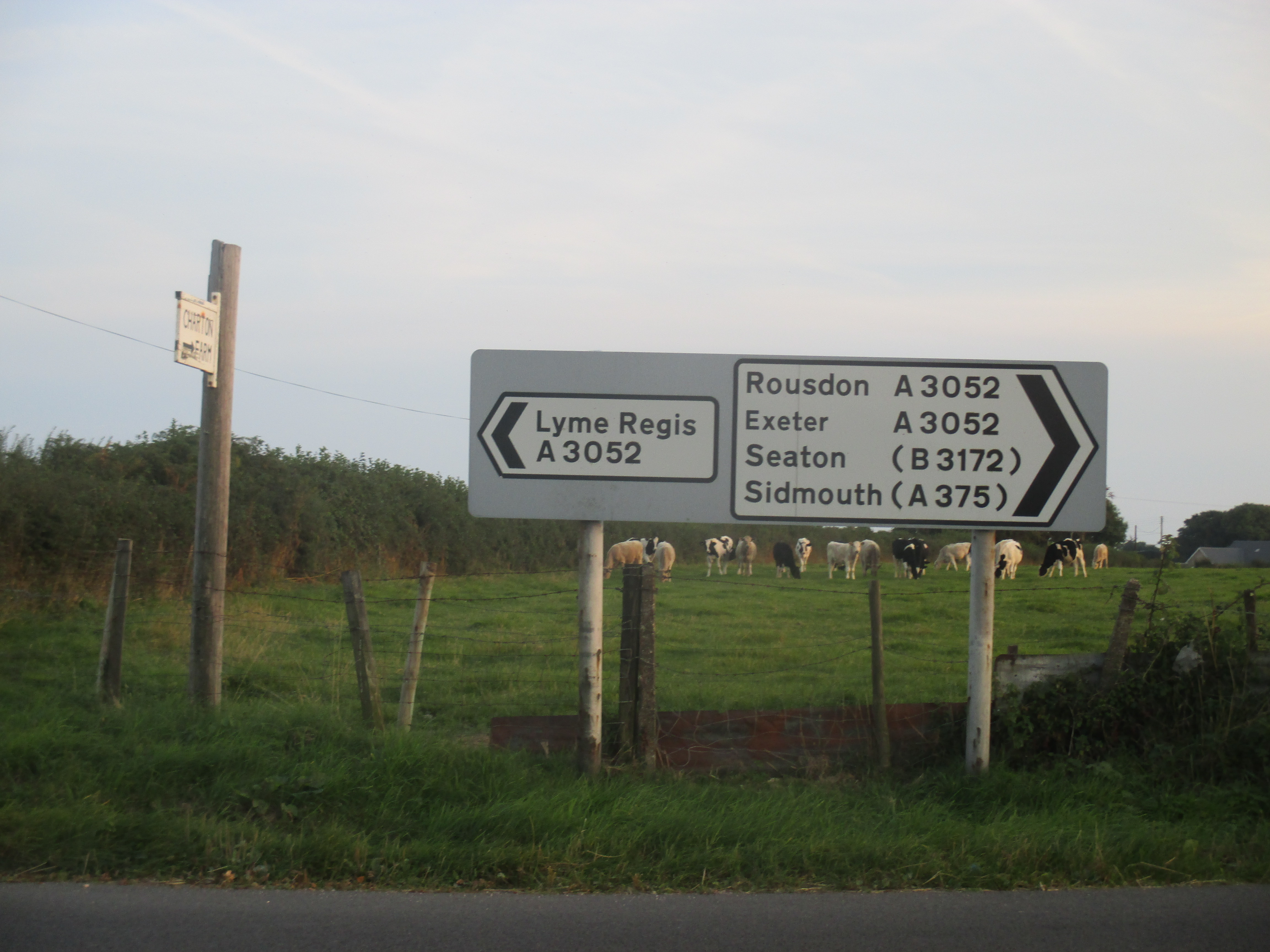 Leaving Exeter to its historical snoozing, I ride out along a busy A-road east towards Sidmouth. The roads are long and dull, and I don’t pass anything that features in my mind, just fields after fields. But the weather’s fine, and the terrain much flatter than north Devon. It’s defined by its rivers that thread in from the Channel, like the Exe and the Sid, the Coly, the Axe and the Otter, each enabling settlements to thrive around them, as well as wildlife and plentiful fish. There’s the Dutch eccentricity of Topsham, and further along the coast, the faded Regency glam of Sidmouth, and Lyme Regis, where I’m heading towards.