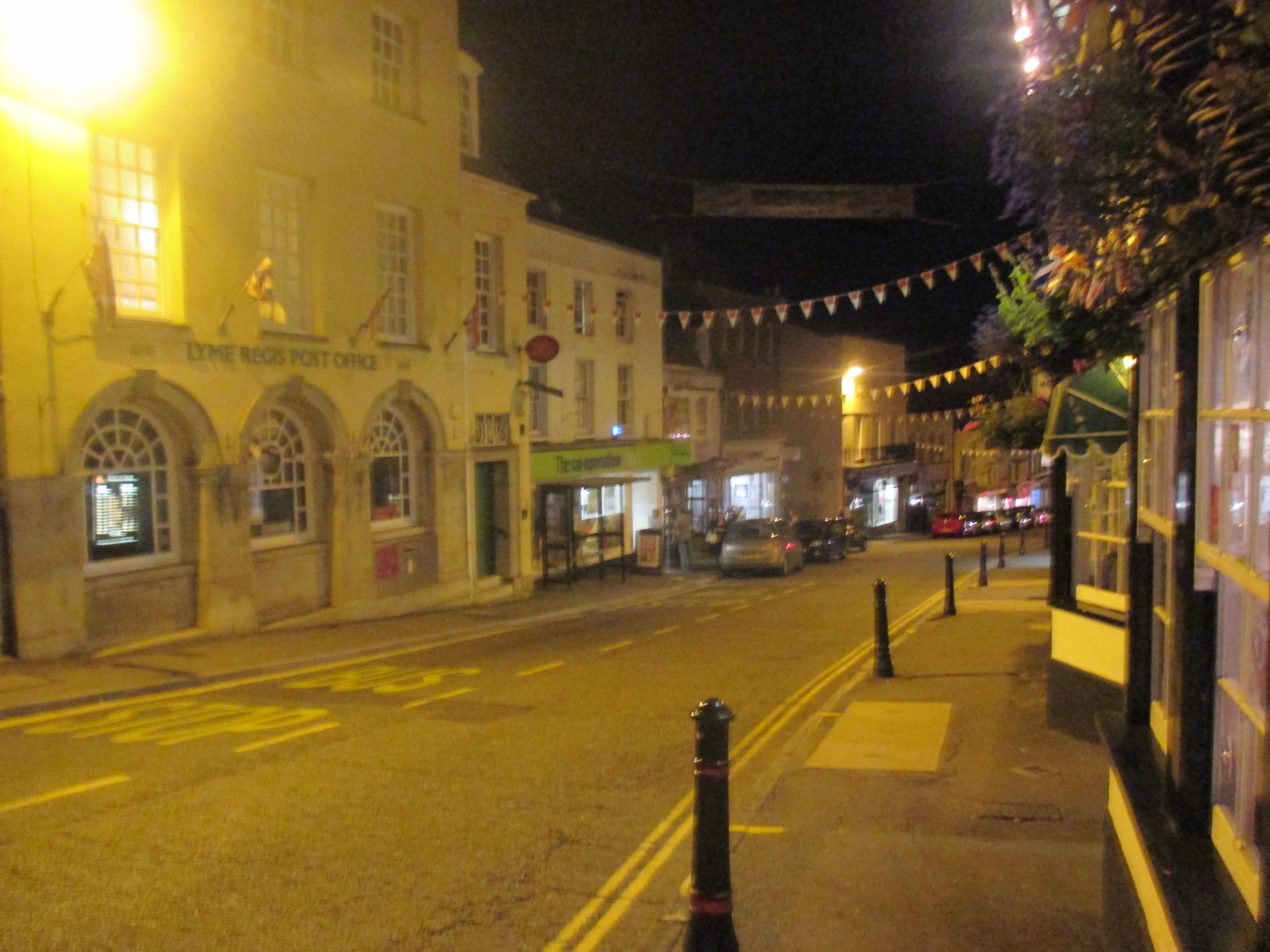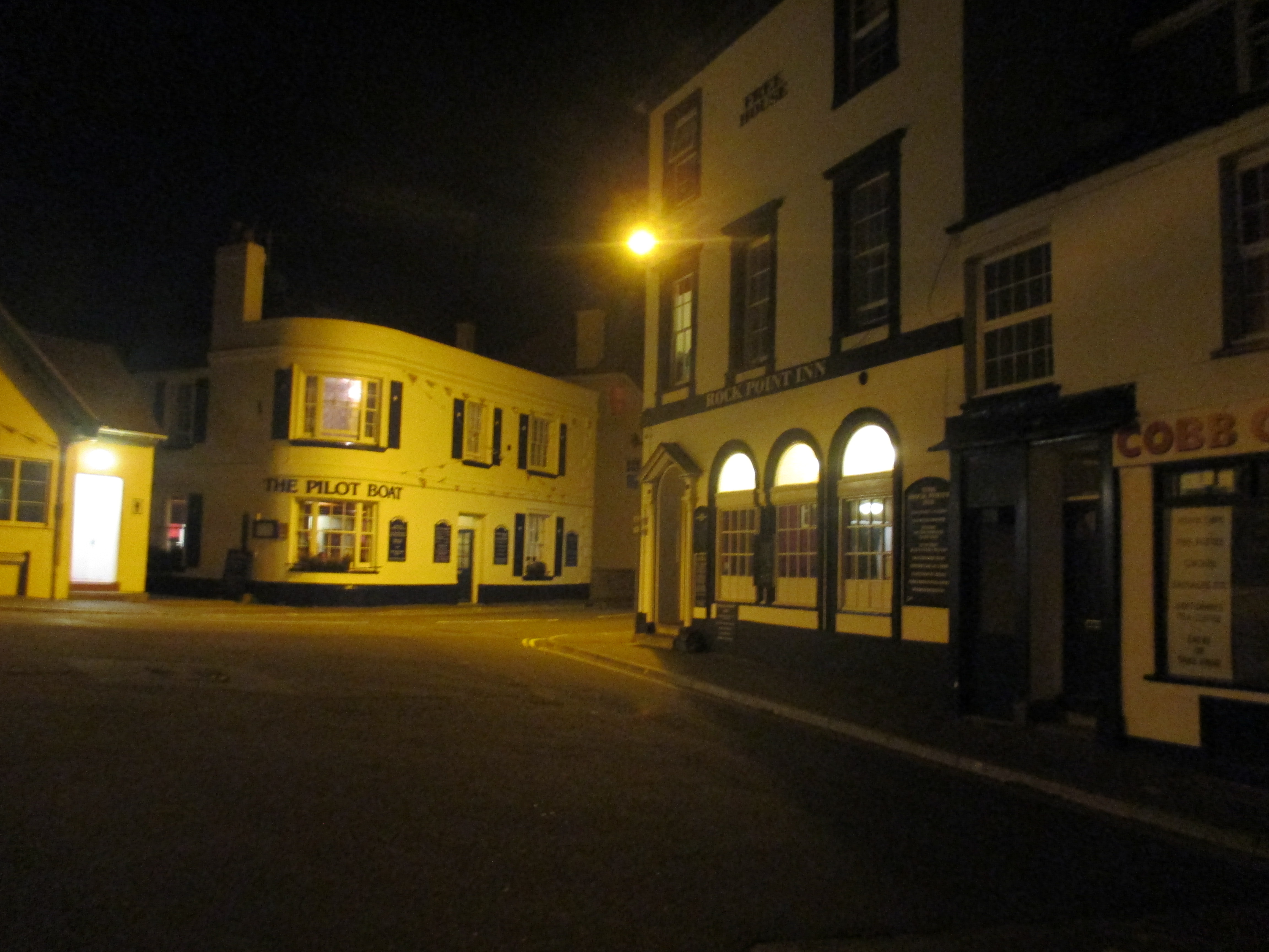 With time against me, I ride quickly through Seaton and Axminster, and don’t veer off to explore the coastal villages of Weston, Branscombe or Beer, or the ‘rebellious’ Colyton, so-called for its support of the Monmouth rebellion. But that for tomorrow. Time’s disappearing. It’s getting quite dark by the time I reach the edge of Lyme. There’s nowhere to obvious to wild-camp – no patch of forest or nature reserve on the edge of the small town, so I ride down towards The Cobb, the town’s old 13th century harbour, where I drift past sailboats and hungry visitors seeking fish suppers. There’s a couple of boat clubs here, and a rocky beach where dinosaur fossils and ammonites can be found. I push the bike up to its western edge, peering around the dark wilderness that flanks the coastal path, before finding an overgrown bit of wasteland at the back of a small complex of holiday chalets, most unoccupied. It seems like a safe enough bet, so I mentally note of the location then head back into Lyme.