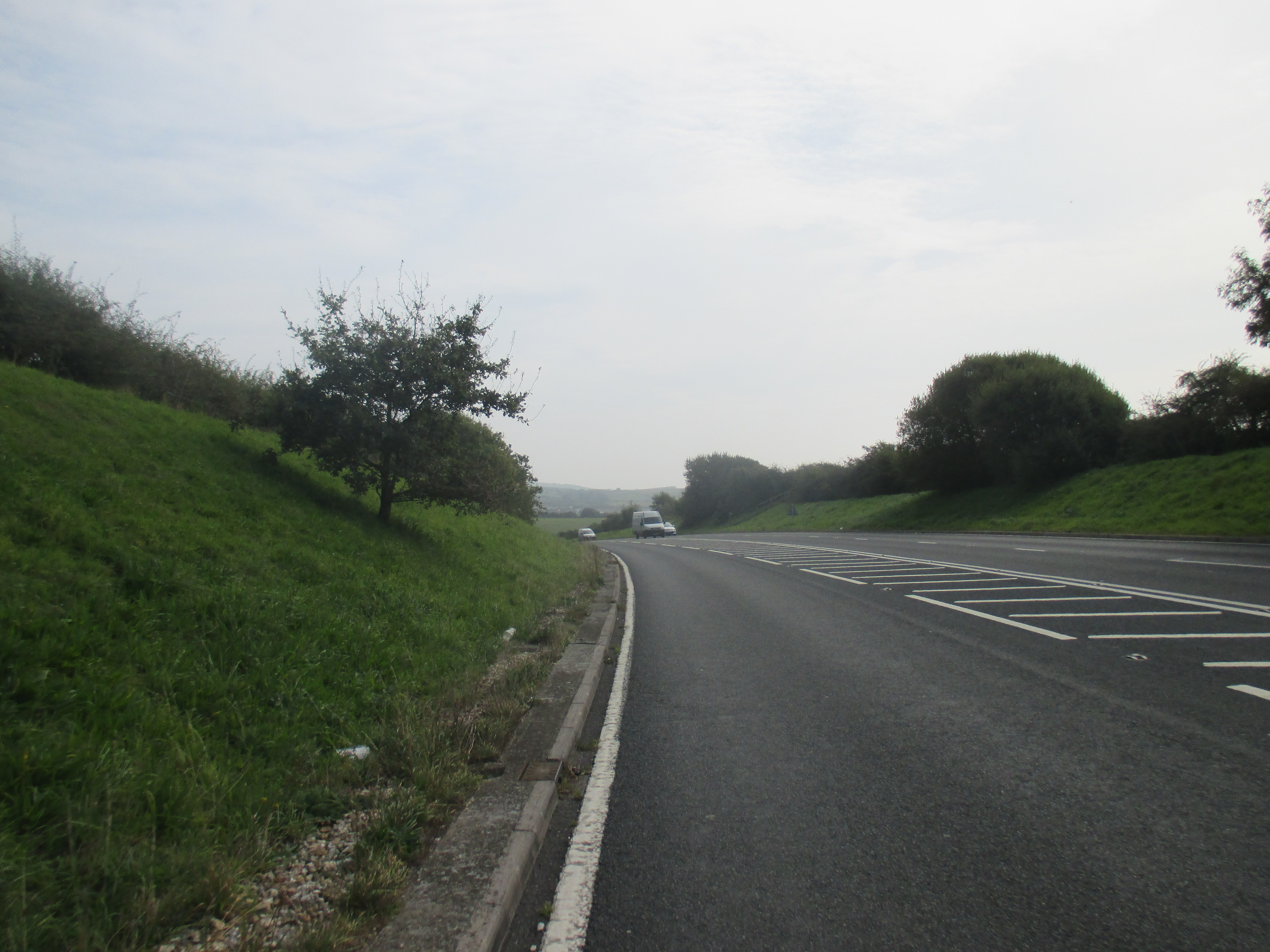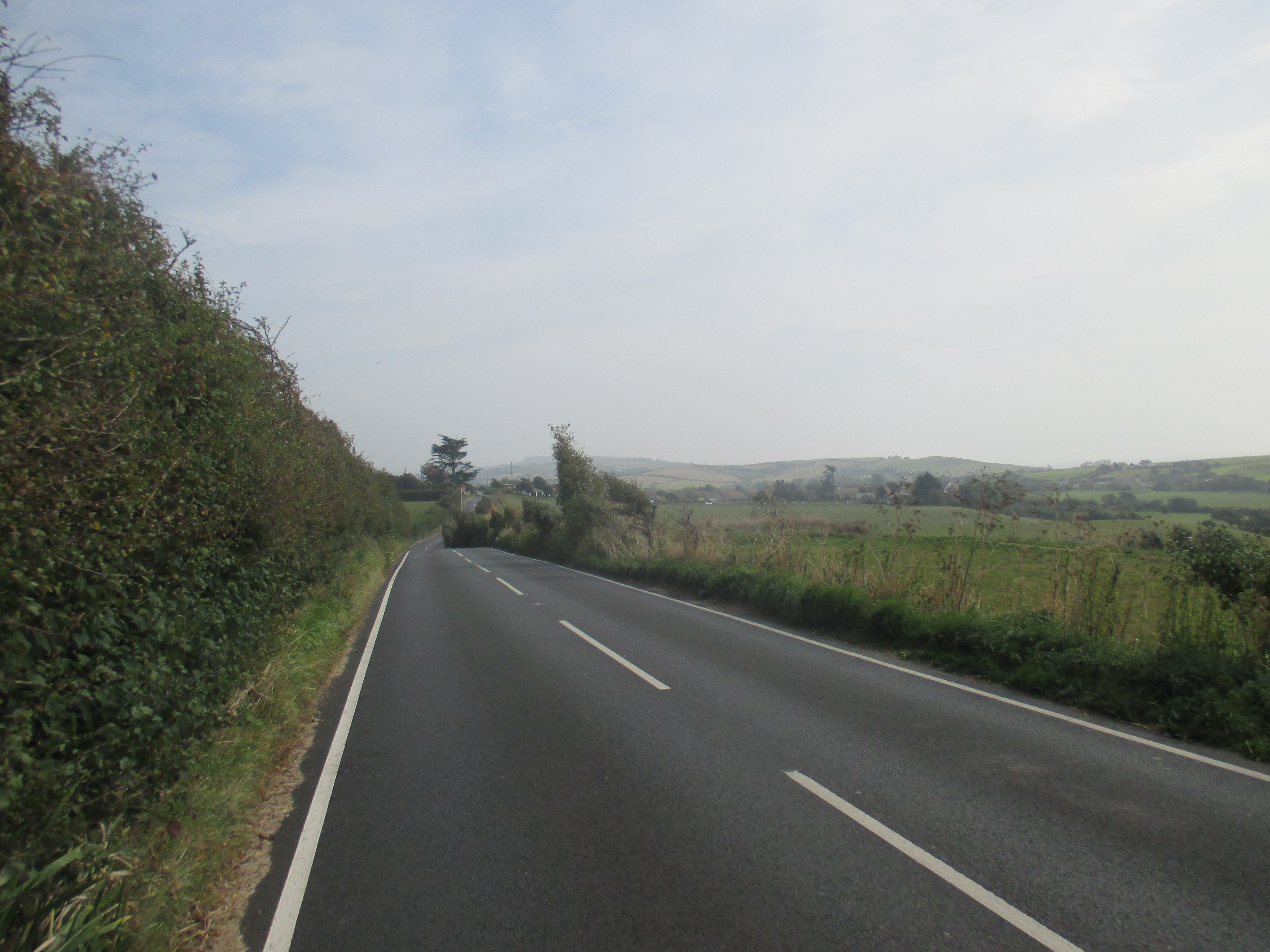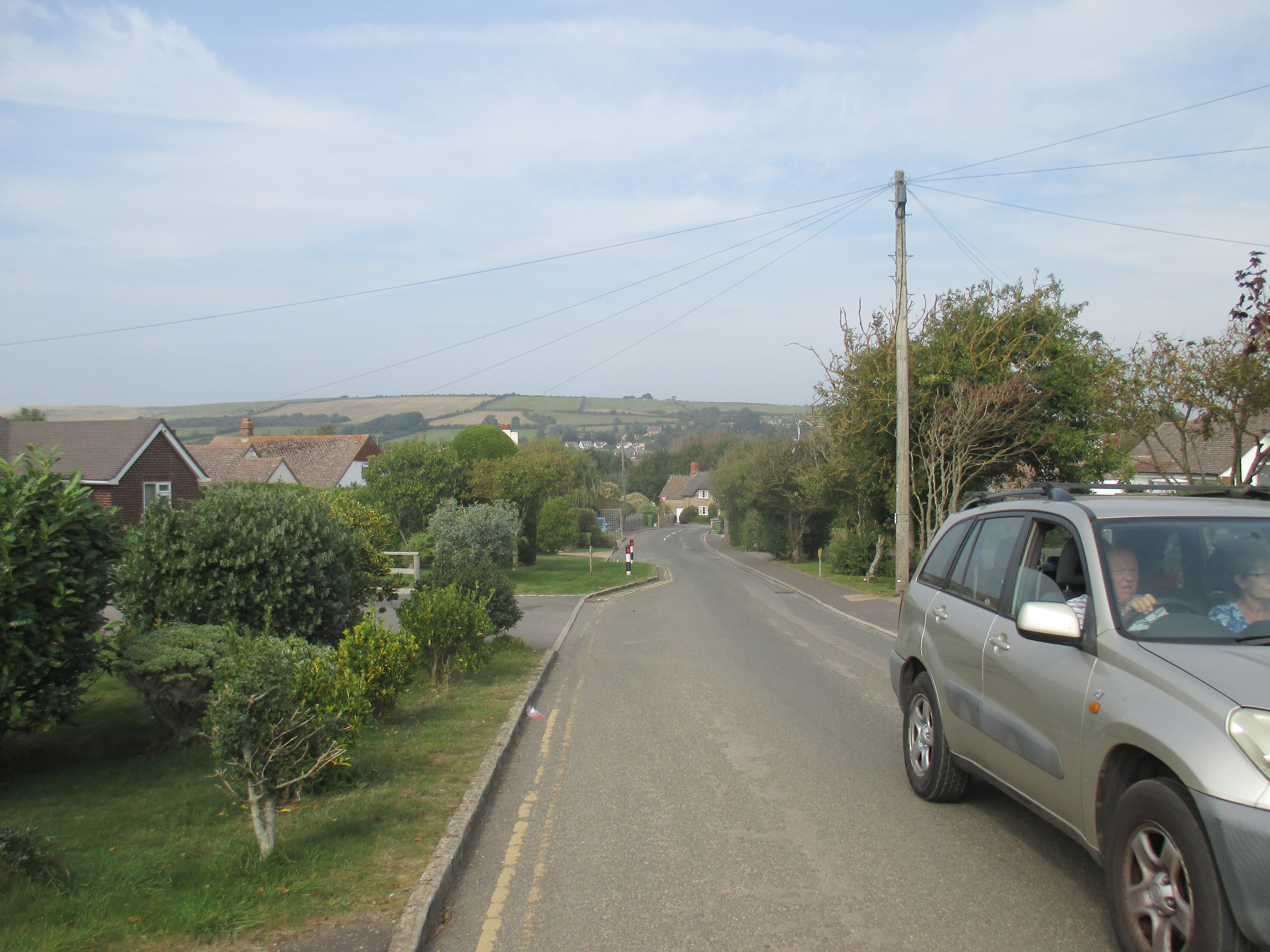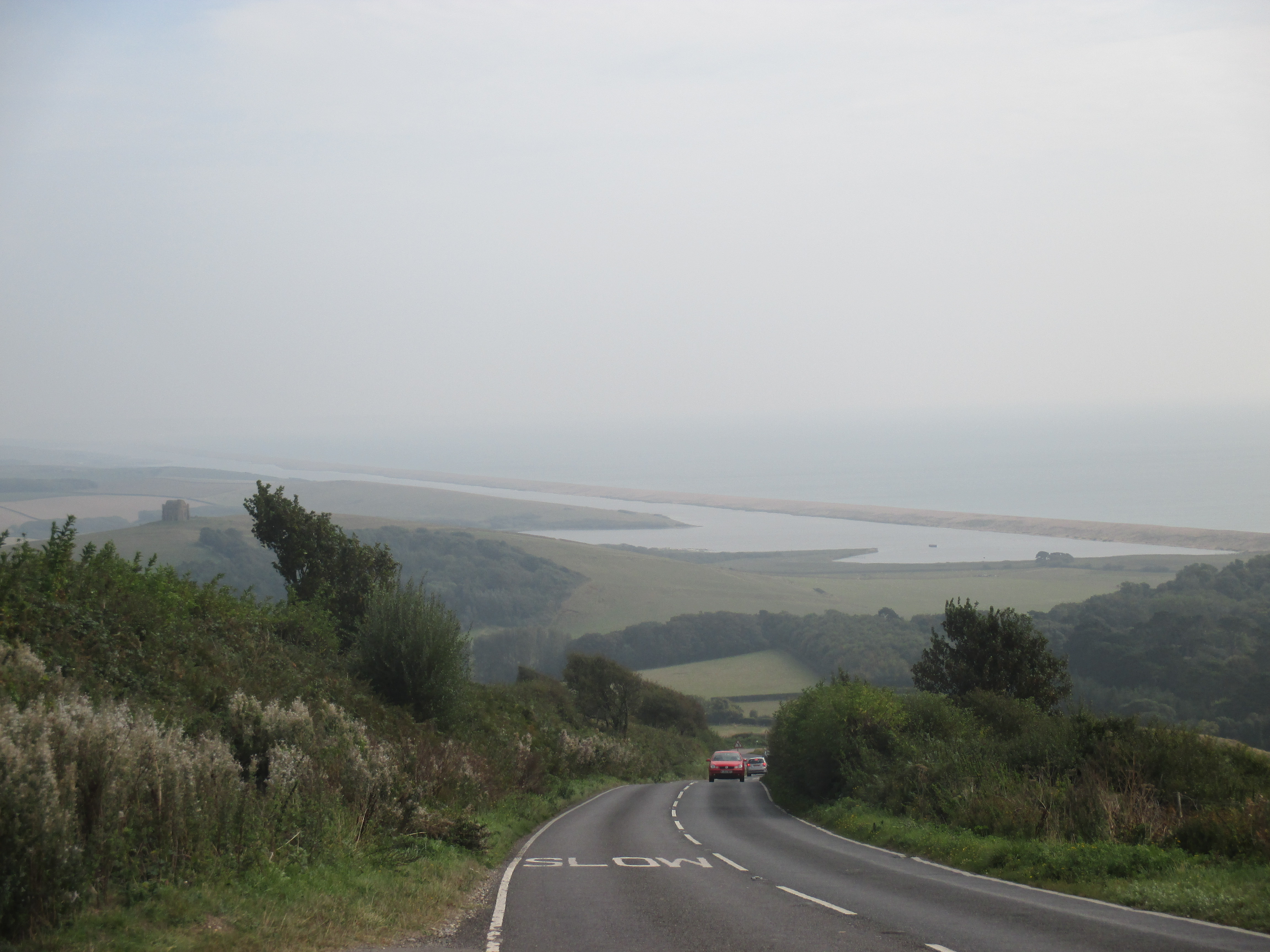 I leave Lyme by way of a brutal big hill, and then take a dull as dishwater eight mile ride up to Bridport along long and busy country lanes, picking up pace and terror as it joins the main A-road as I compete for space with articulated lorries. This is particularly tough up the many hills I travel up, and rarely it seems down: those W-shaped things. There’s the wind too to contend with, right in my face for a third day now. The wind could blow in any number of directions, but so often it is against me! I shout at it and curse it, urge it to bring its best, but a kind of fatigue is kicking in. Both wheels are now buckled, that’s clear. Unlike other bike tourers, I’m doing less miles per day now than when I started. I’m heading home, but I’m drawing on my last reserves. The hills increase in frequency after Bridport, at first a kind of continual ripple that then approaches the peaks and troughs of a seismograph.