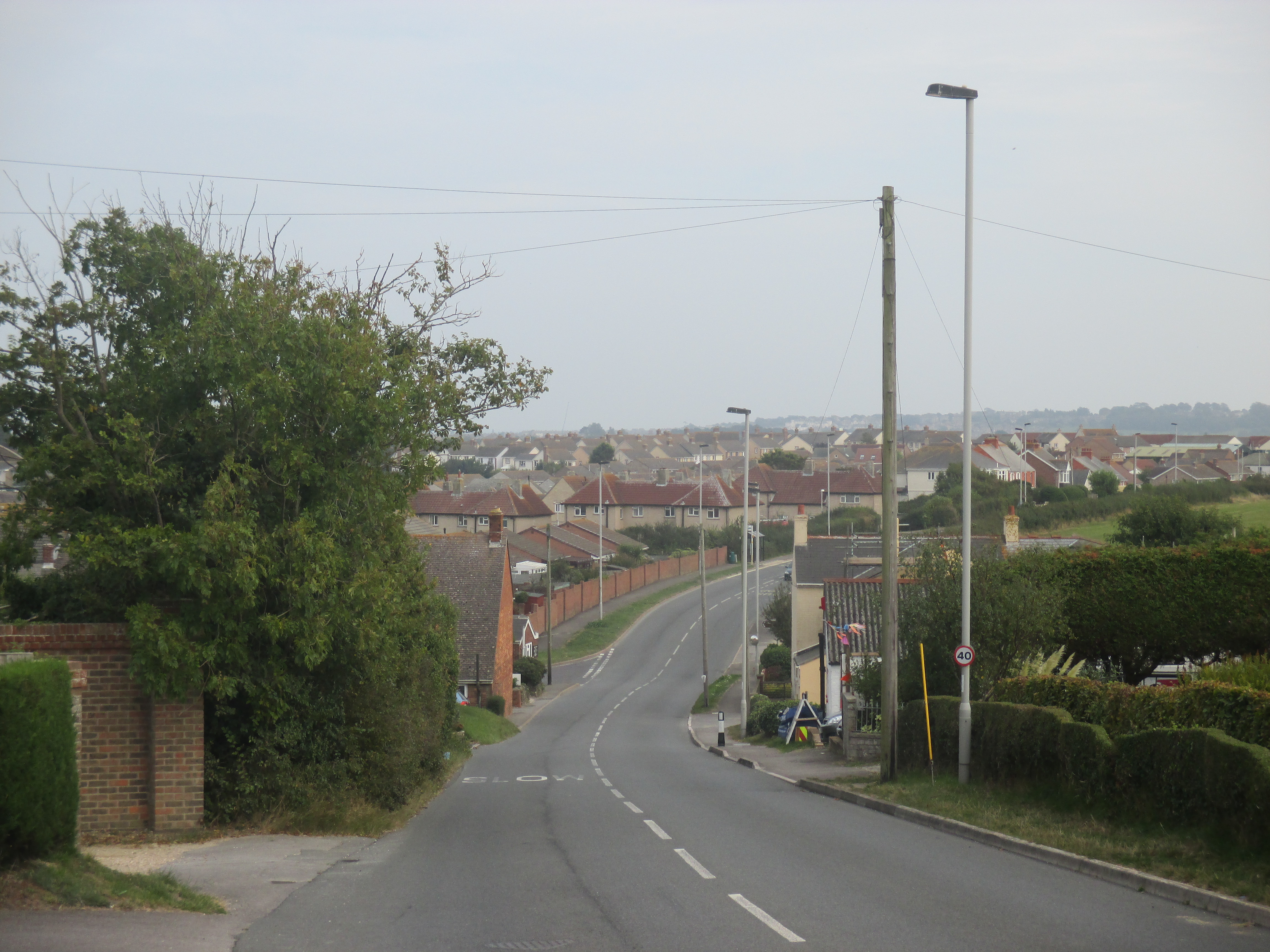 There’s a camp site two miles out from Weymouth in the adjoining suburb of Wyke Regis. Since reaching Chickerell there’s been a gruel-grey gloop of low-rise, detached bungalows that form a stretch of suburbia. It doesn’t thicken further in, just continues at the same rhythm as I follow the rising hill up towards Wyke. It reminds me of south Essex, of the suburbia around Newcastle or Birmingham, the same uniform 1920s red-brick style, with an over-emphasis on privacy, protection and distance, on sameness with one’s neighbours yet individual distinctions of that generic kind I’ve seen on this journey, the four by four, the personalised house name, the rose bush, the bird house, the large forbidding gate.