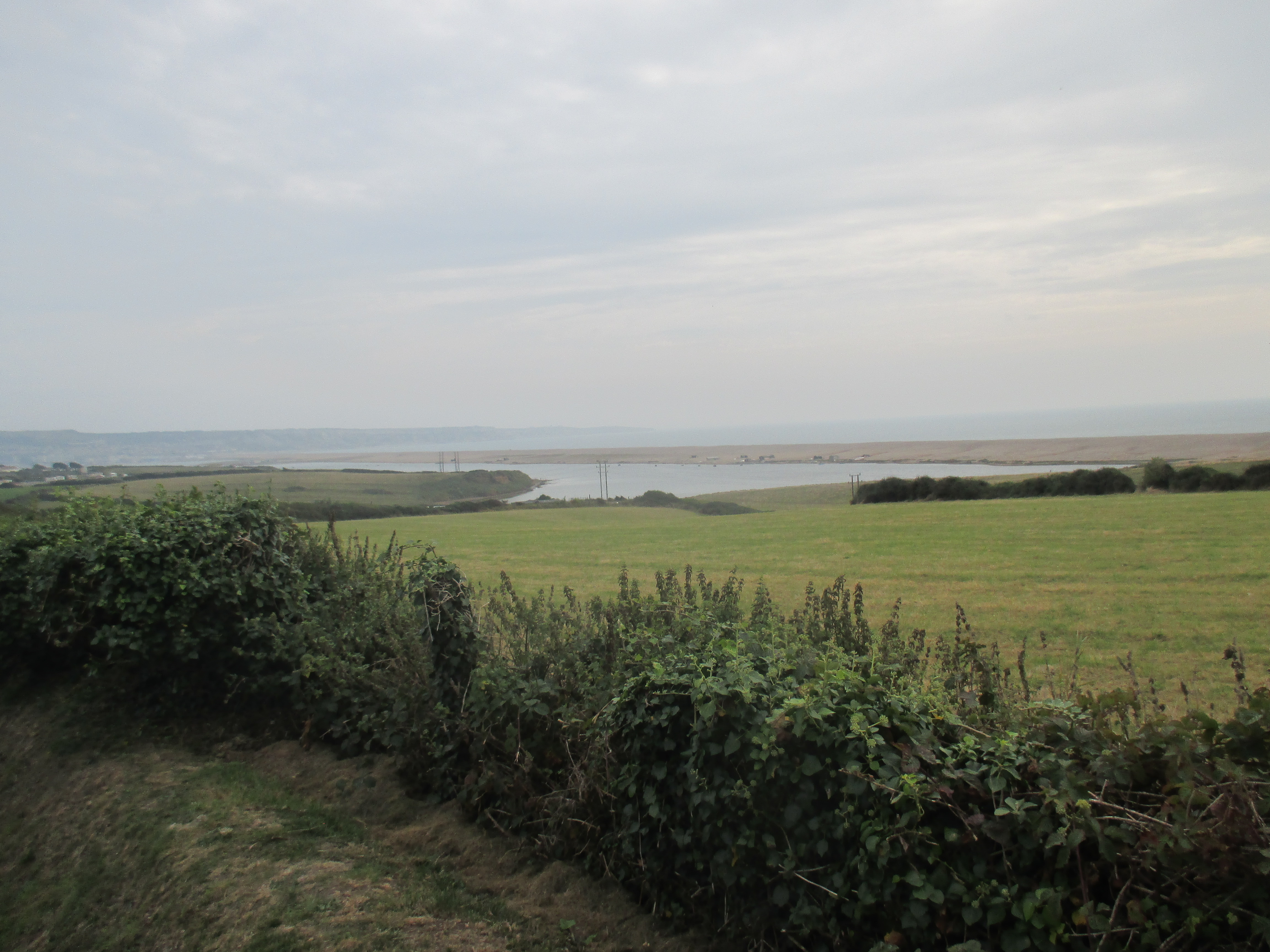 I reach the camp site down a long side road, a pleasant enough caravan park called Pebble Bank, opposite a derelict army training camp, rusty razor wire and Anderson shelters with smashed windows. It’s £15 a night, which split between two isn’t so bad. There’s a large and mostly empty field overlooking Chesil Beach and Portland, a small and almost separate island just south that is surprisingly urbanised. Its large harbour is apparent from the distance. After wild-camping for free in some of the most beautiful locations, I’m not sure how £15 covers a small pitch on an empty field but so it goes, and I pitch up and head out towards Weymouth.
