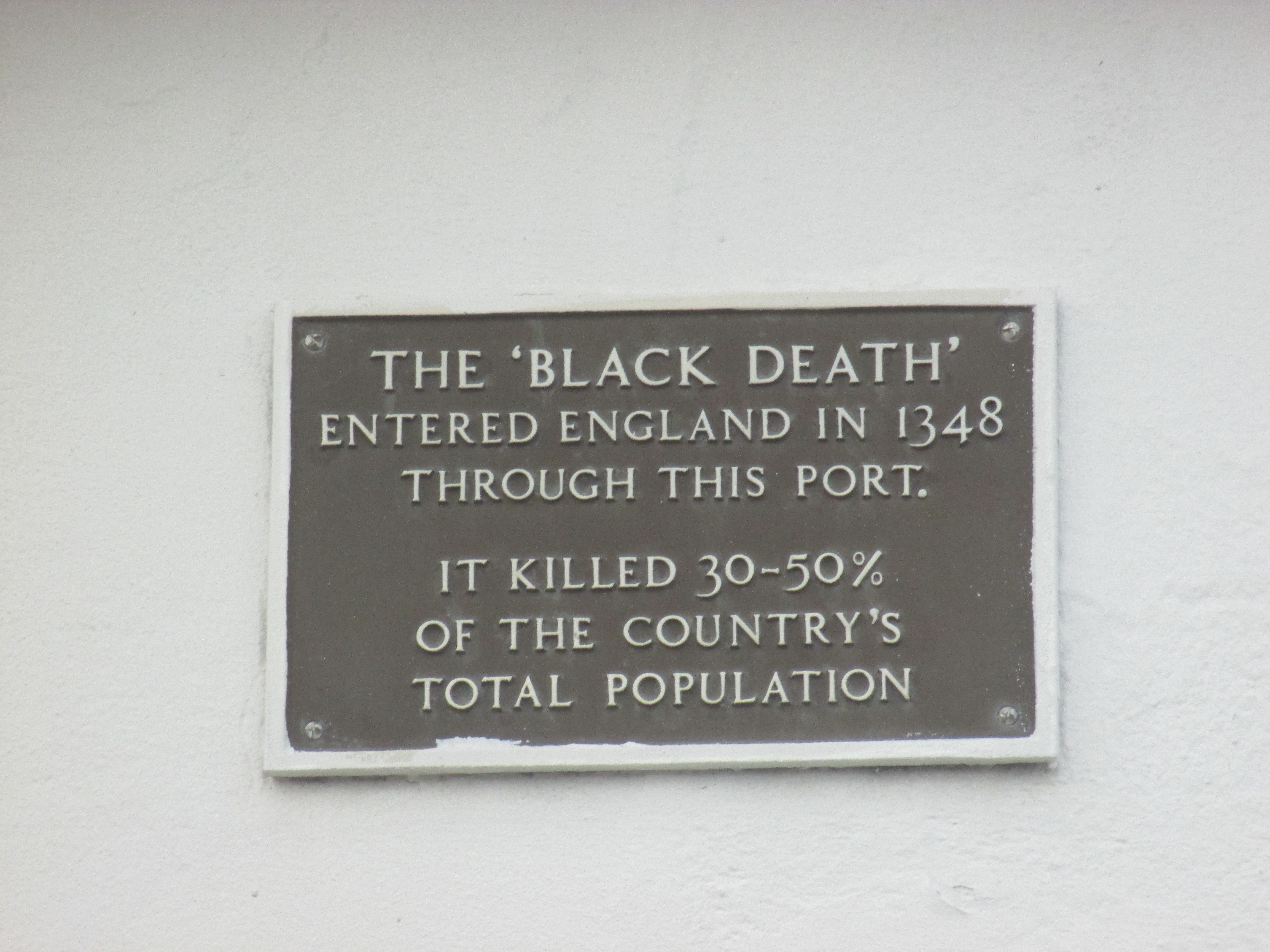 We wander along the old esplanade, by the harbour, with plenty to catch up on. We find the plaque that marks Melcombe Regis, now part of Weymouth but once considered a separate town north of the harbour. Here is where the Black Death of 1348 probably arrived into the British mainland, eventually killing between 30% and 50% of the population. All kinds of bizarre energies and treatments were released by the outbreak. In Europe, bands of flagellants would rove from town to town, whipping themselves whilst continually singing, and claiming to receive instructions from angels. Much of the clergy were killed, and for a time the religious and social bonds restricting medieval peasants were loosened.