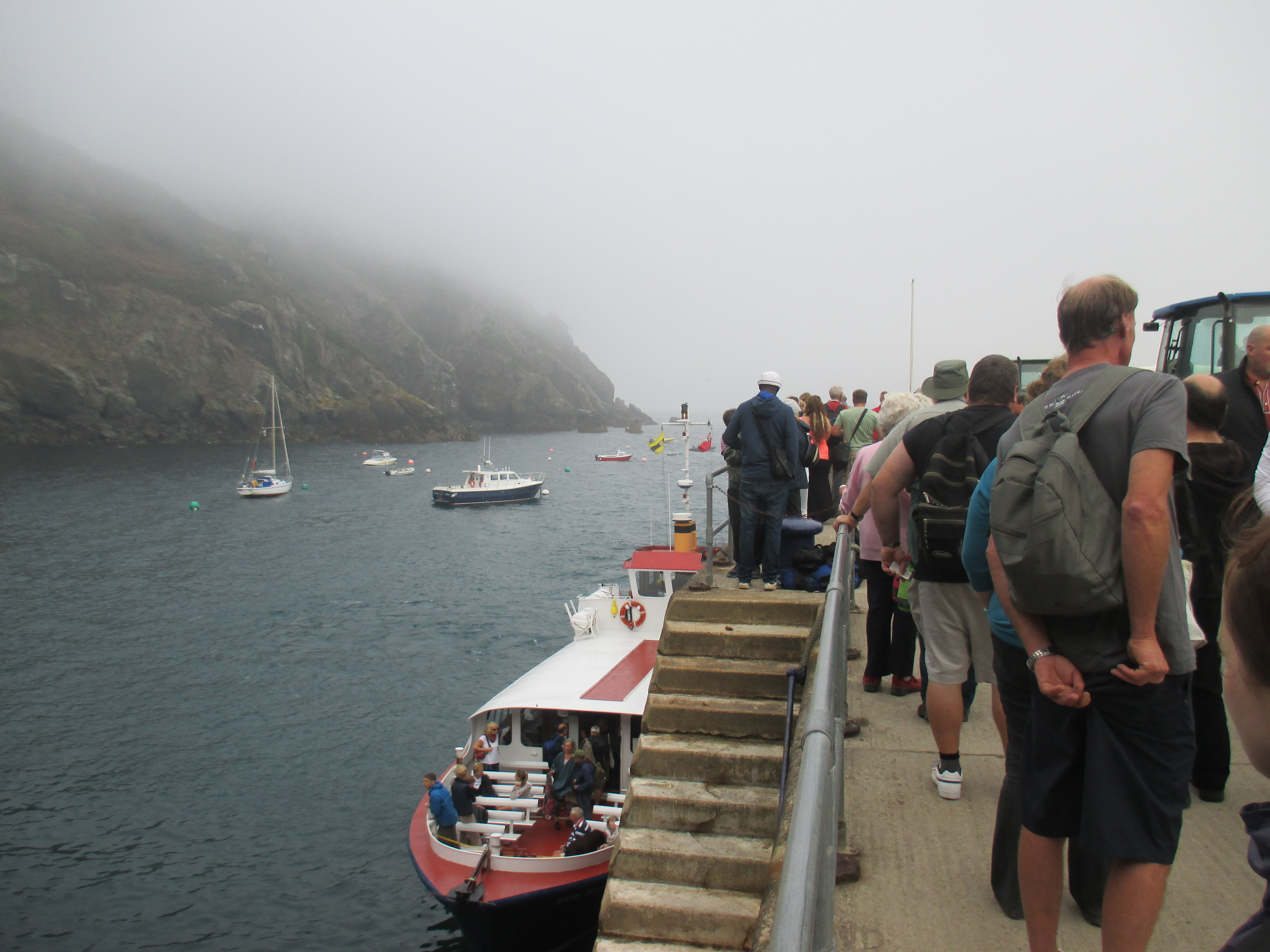 Phew! The ferry’s running late. Standing by the jetty are the members of Jomali, the band rocking out the Belair last night with their lively sixties-to-eighties rock-and-roll covers. Heavy mists shroud the island in a veil of secrecy, forbidding exit or entry. Nearby we spy dark crags snarling out of the water like the incisors of sleeping sea-dragons. I talk to the two front-men of the band as we wait for the boat to load. They’re from Guernsey, and play around the islands on a regular basis. They like Sark (‘I don’t want to leave!’, says the bassist), but for them it’s a kind of momentary escape from home. They’re two gruff, tough but friendly geezers, with an accent that sounds largely south-eastern, say of Sussex or Kent: clipped, short, abbreviating consonants where possible, but with elements of a south-western drawl, still a little roomy around its vowels, ees and aas.