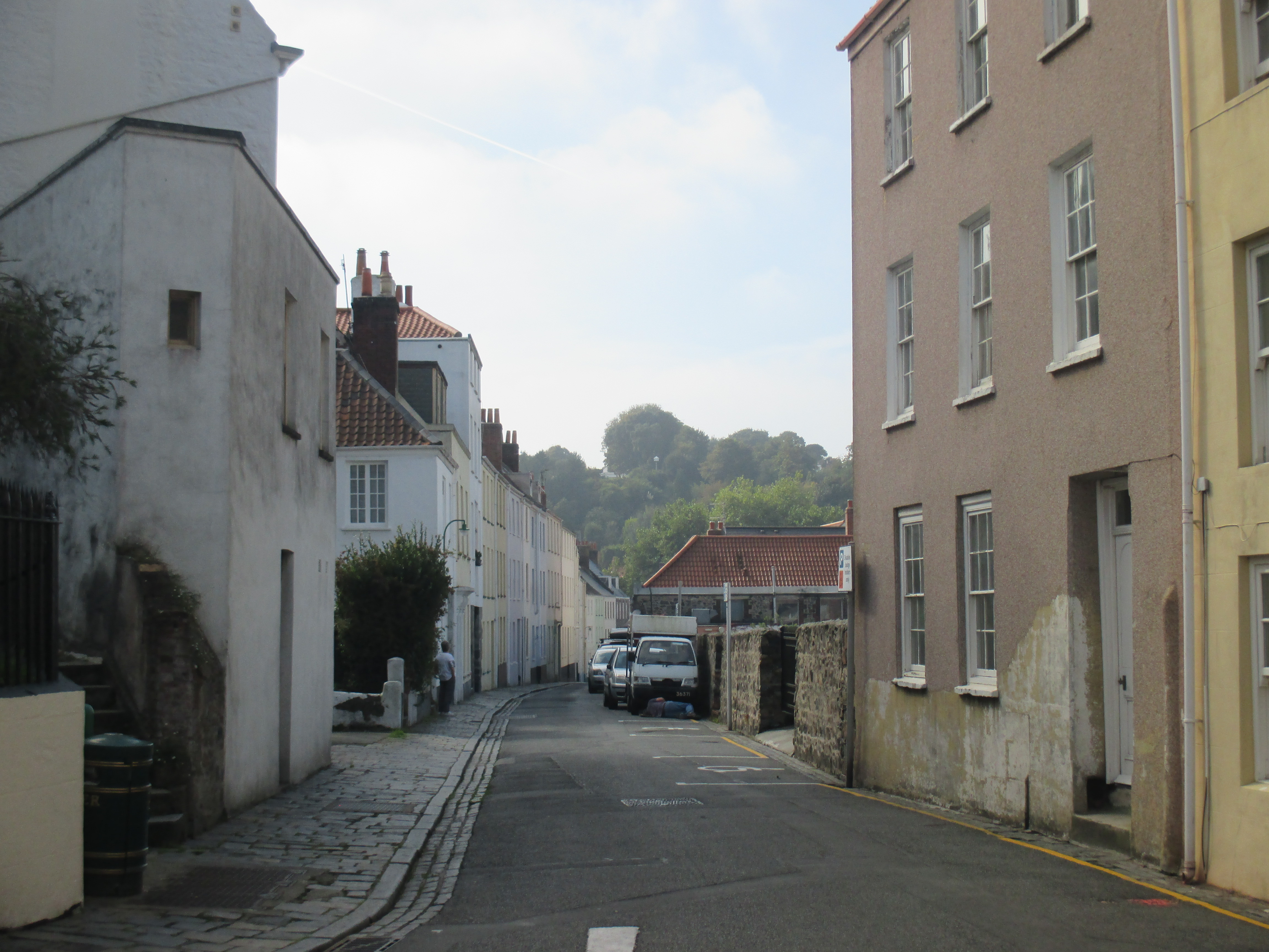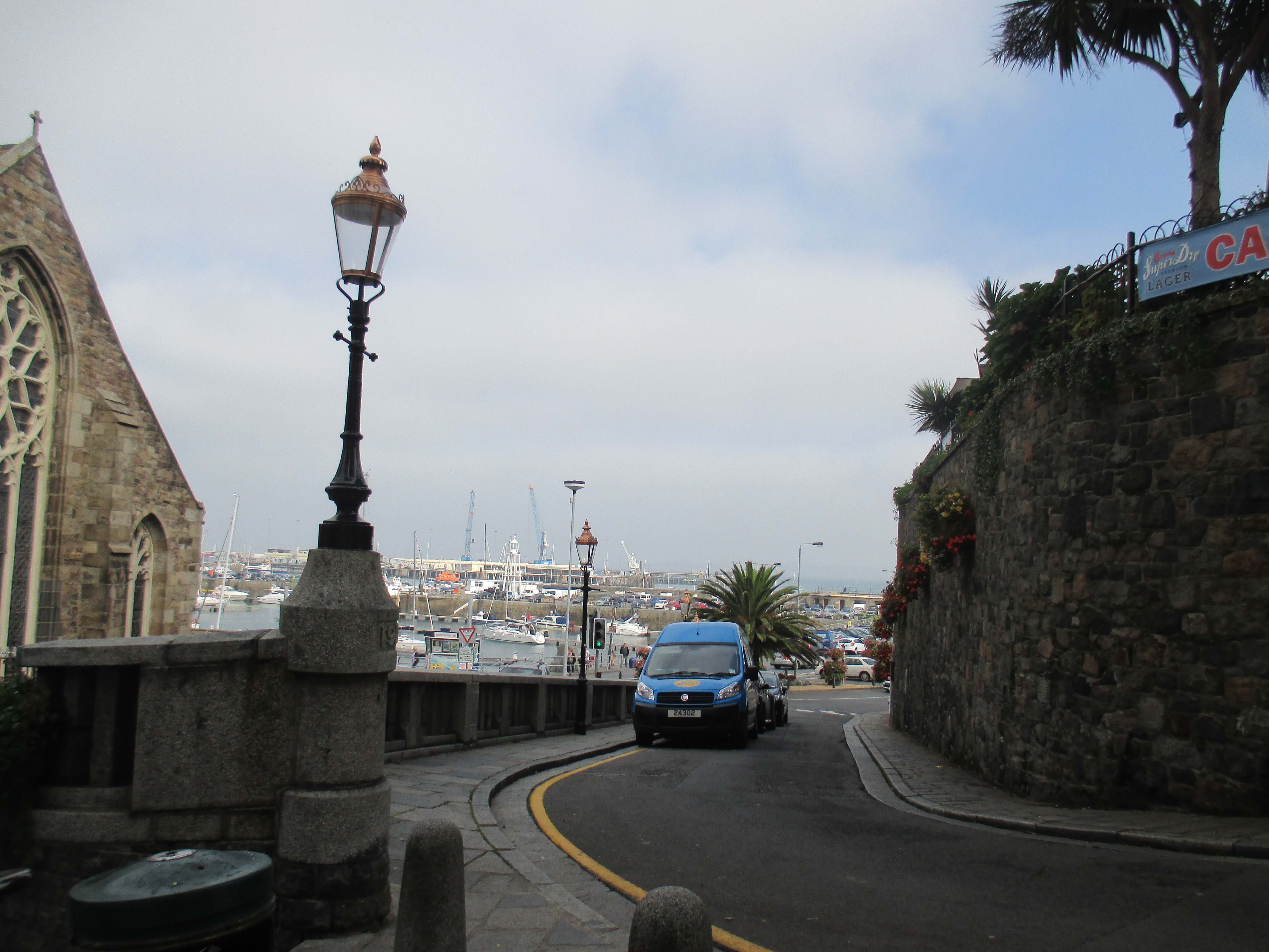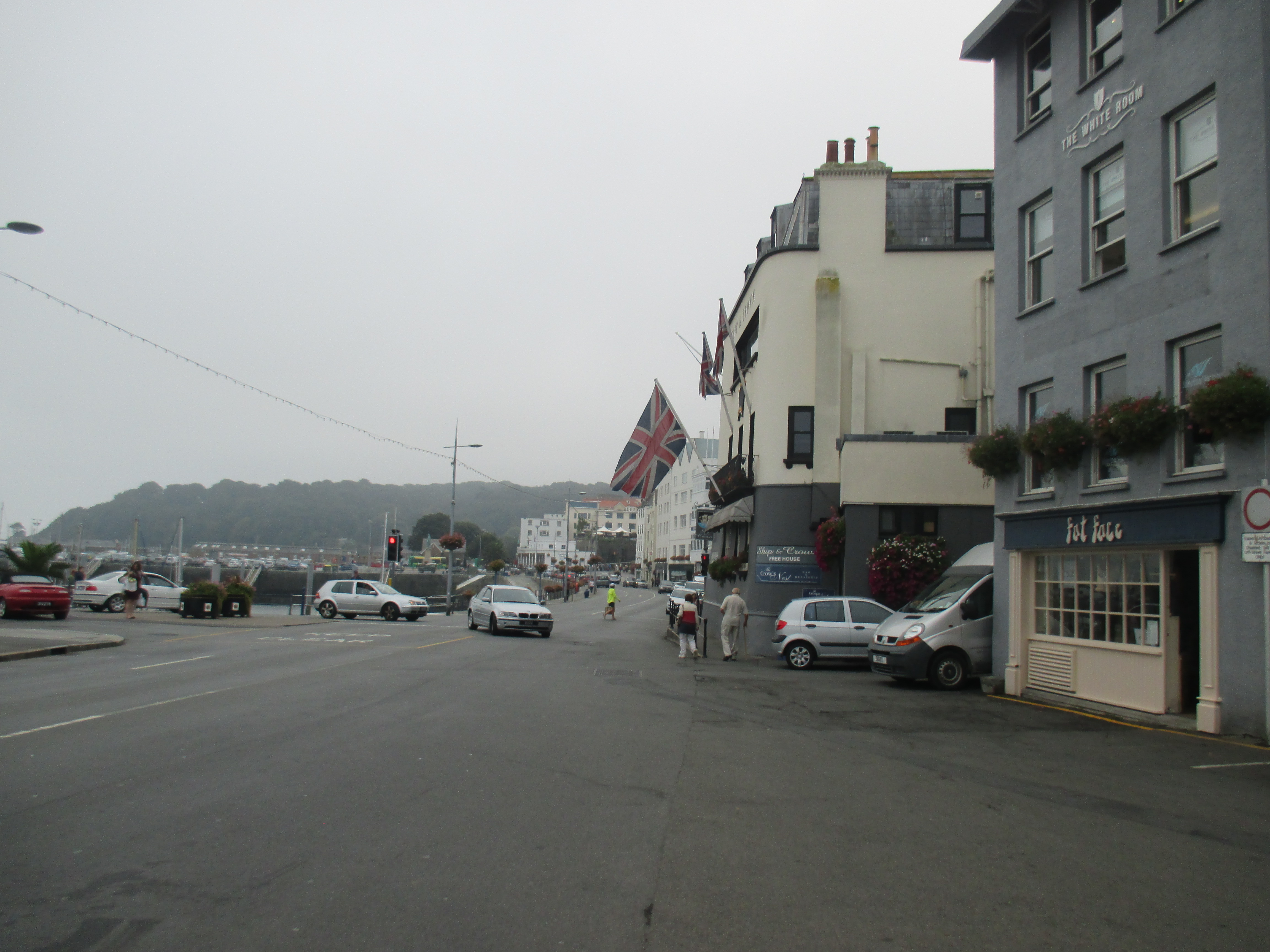 Our little vessel reaches St. Peter Port by noon. My knee has become infected from that bad scrape with the Jersey roads, and movement has become painful. The previous evening I hid my bicycle and one of my panniers behind some crates on the far edge of the harbour. Fortunately both bike and bag are still there. I change into some fresh clothes, dress the wound, and together we wander into St. Peter Port. Like many old harbour towns, what you see is what you get. As one’s boat draws close, one can see a small but substantial stretch of settlement mostly constructed during the 19th and early 20th centuries. There’s an extensive pierhead and several marinas populated with hobby yachts, and behind that, a wide esplanade lined with two to three-storey townhouses, hotels and public establishments. Raise your eyes higher and one can pick out a series of pretty steeples, nothing like the superstitious consolations of the old English port like old east London, Whitby or Newlyn, but enough to cater for the tastes of tradition and the soul, from a Church of Scotland to Roman Catholicism. Guernsey’s pretty coves and beaches are renowned, but there’s little among show here in the workaday ways of the harbour, and so no amusements, confusements or kiss-me-quick charades. Just a little south of the harbour one can’t help seeing the imposing fortifications of Castle Cornet, flattened brickwork becoming one with the craggy rocks, protecting this little island against the moods of Napoleon.