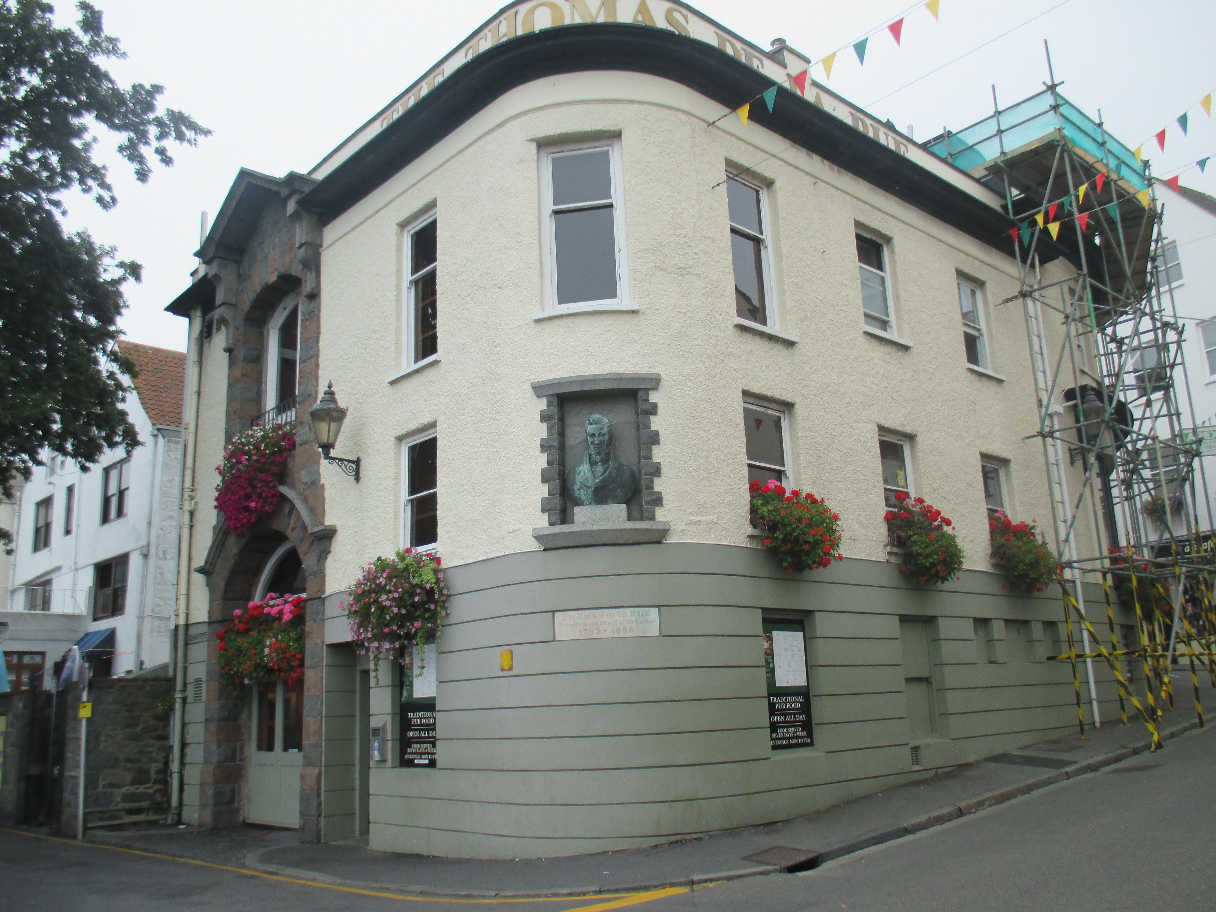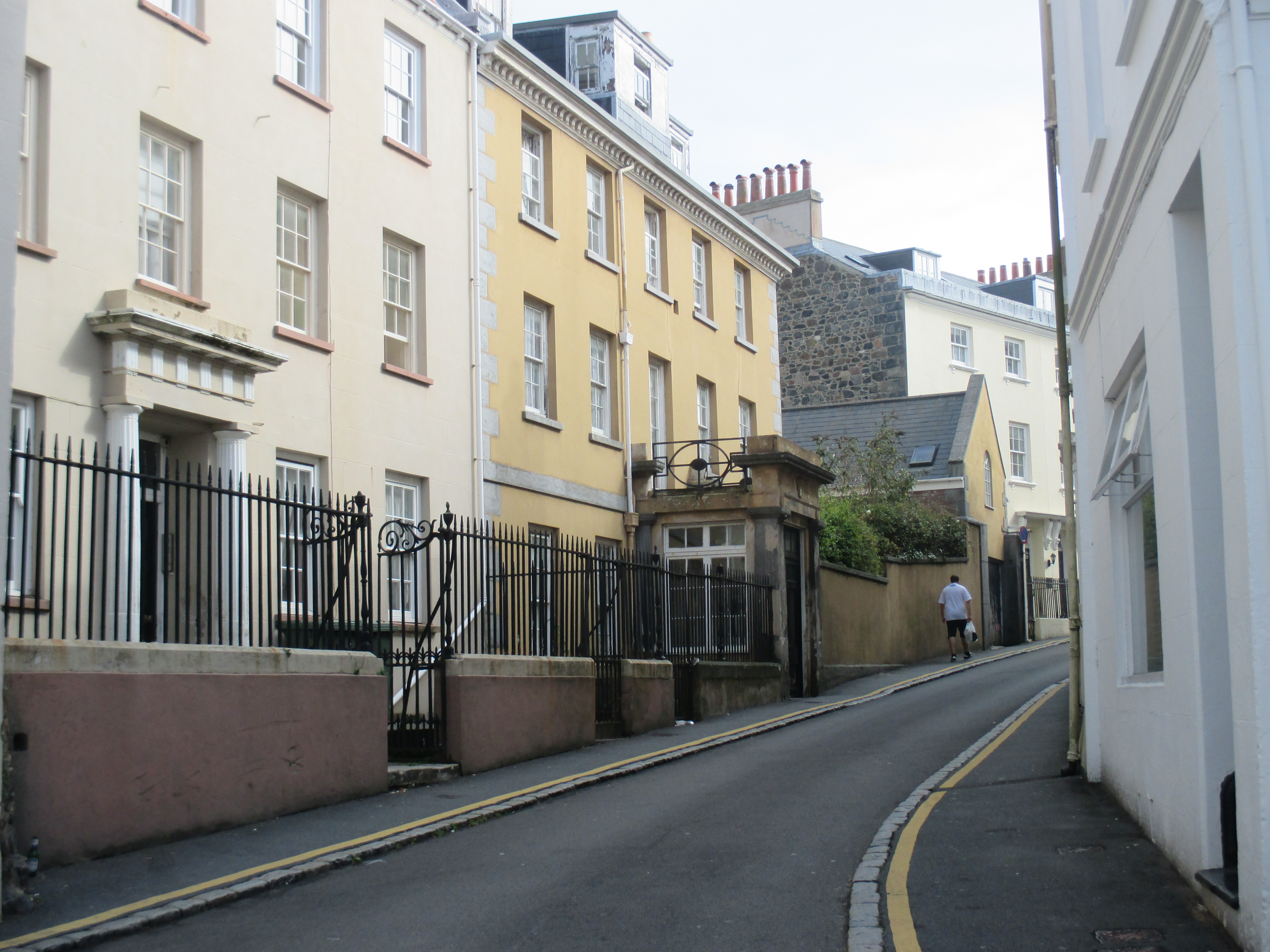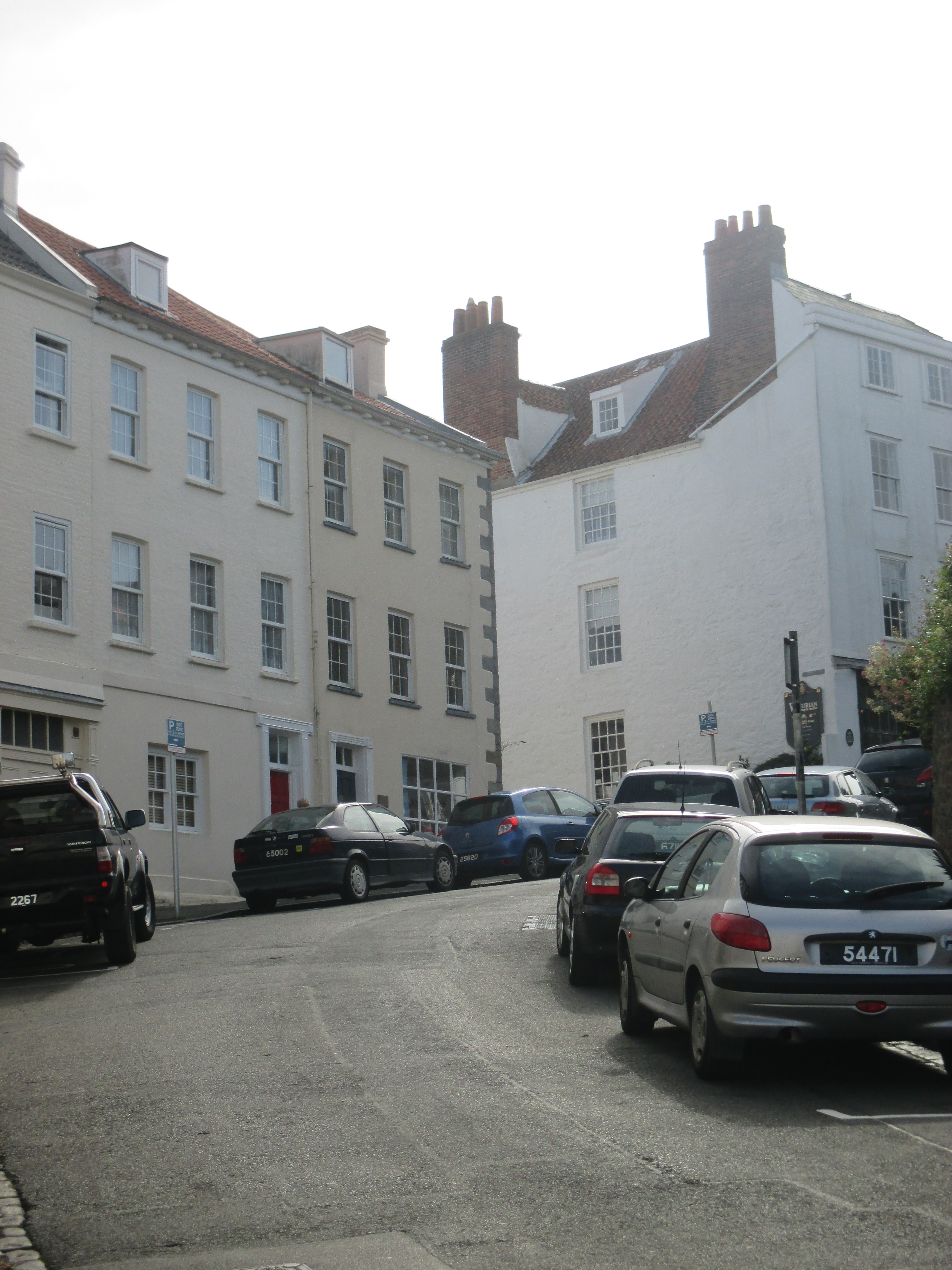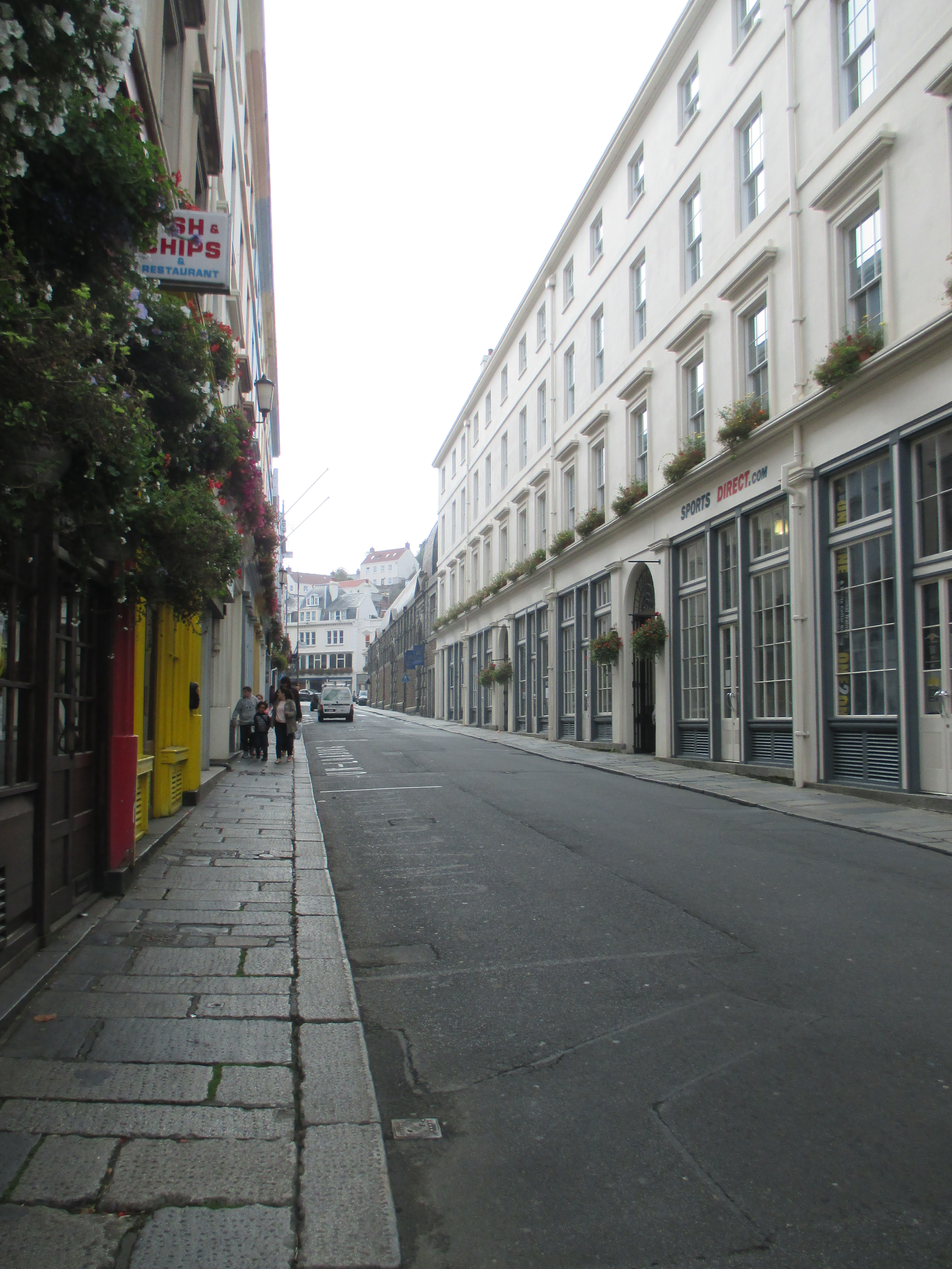 Our little vessel reaches St. Peter Port by noon. My knee has become infected from that bad scrape with the Jersey roads, and movement has become painful. The previous evening I hid my bicycle and one of my panniers behind some crates on the far edge of the harbour. Fortunately both bike and bag are still there. I change into some fresh clothes, dress the wound, and together we wander into St. Peter Port. Like many old harbour towns, what you see is what you get. As one’s boat draws close, one can see a small but substantial stretch of settlement mostly constructed during the 19th and early 20th centuries. There’s an extensive pierhead and several marinas populated with hobby yachts, and behind that, a wide esplanade lined with two to three-storey townhouses, hotels and public establishments. Raise your eyes higher and one can pick out a series of pretty steeples, nothing like the superstitious consolations of the old English port like old east London, Whitby or Newlyn, but enough to cater for the tastes of tradition and the soul, from a Church of Scotland to Roman Catholicism. Guernsey’s pretty coves and beaches are renowned, but there’s little among show here in the workaday ways of the harbour, and so no amusements, confusements or kiss-me-quick charades. Just a little south of the harbour one can’t help seeing the imposing fortifications of Castle Cornet, flattened brickwork becoming one with the craggy rocks, protecting this little island against the moods of Napoleon.