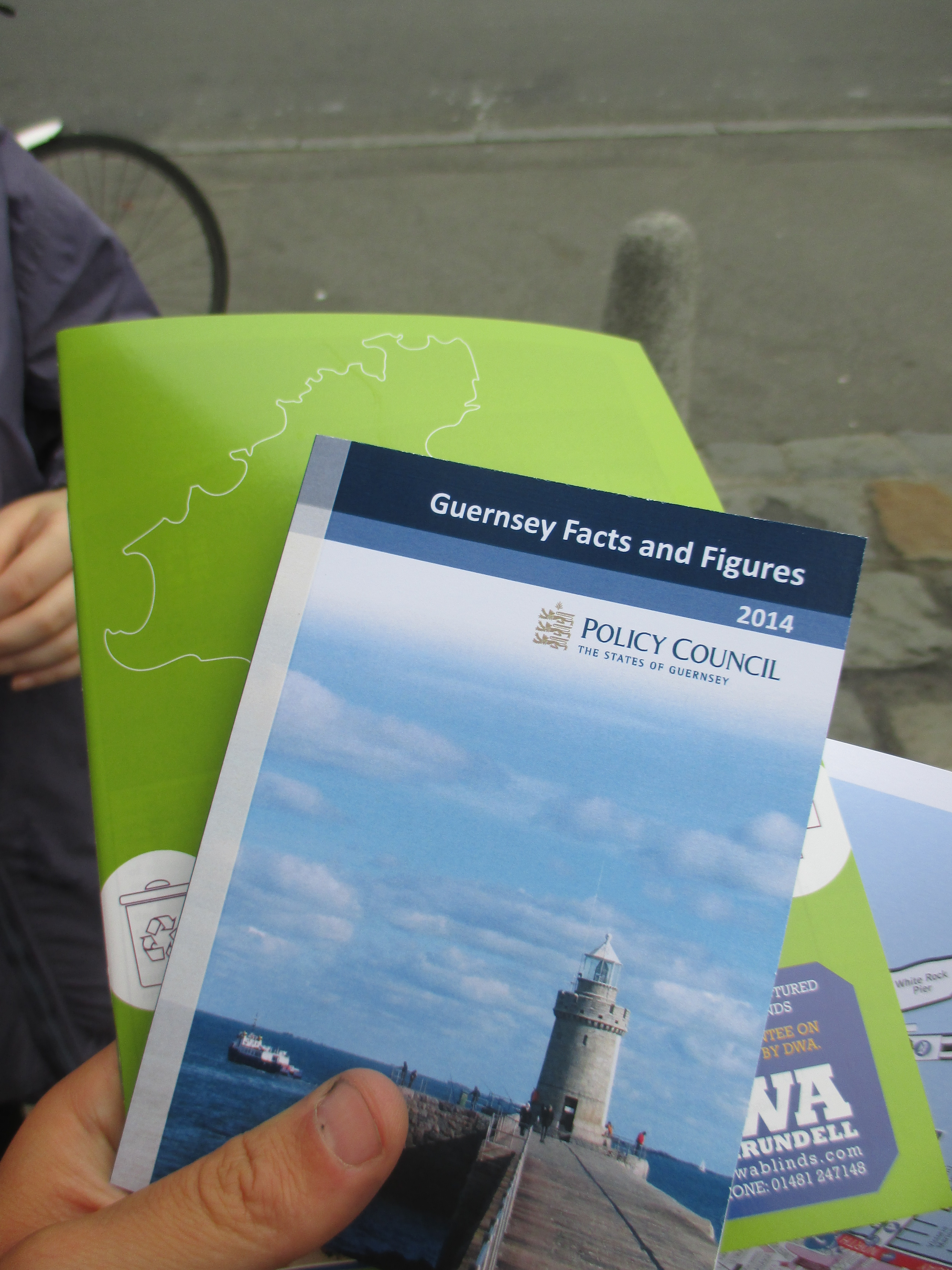 We wander by a clocktower and besides a small monument to the liberation of the island from German occupation. Composed of fifty layers of granite representing the years since the war’s end, it is a little underwhelming in stature and aspiration, aware of its own historical significance but neither prissy or dramatic about it. Following the esplanade south towards the small town centre, we pass bistros and restaurants, and the occasional tourist shop selling local butters and jams. Unsatisfied with the answers I’ve been given by these islanders, I pop into the visitor information centre to inquire about the island’s taxation. It’s an odd request, especially when expressed with breezy delivery by a young man whose appearance suggests ineligibility for taxation on grounds of income or lack thereof. Fortunately Guernsey’s better equipped than most, and I’m handed a thick report of facts and figures about the States of Guernsey, incorporating the nearby islands of Herm and Alderney. That’ll do!