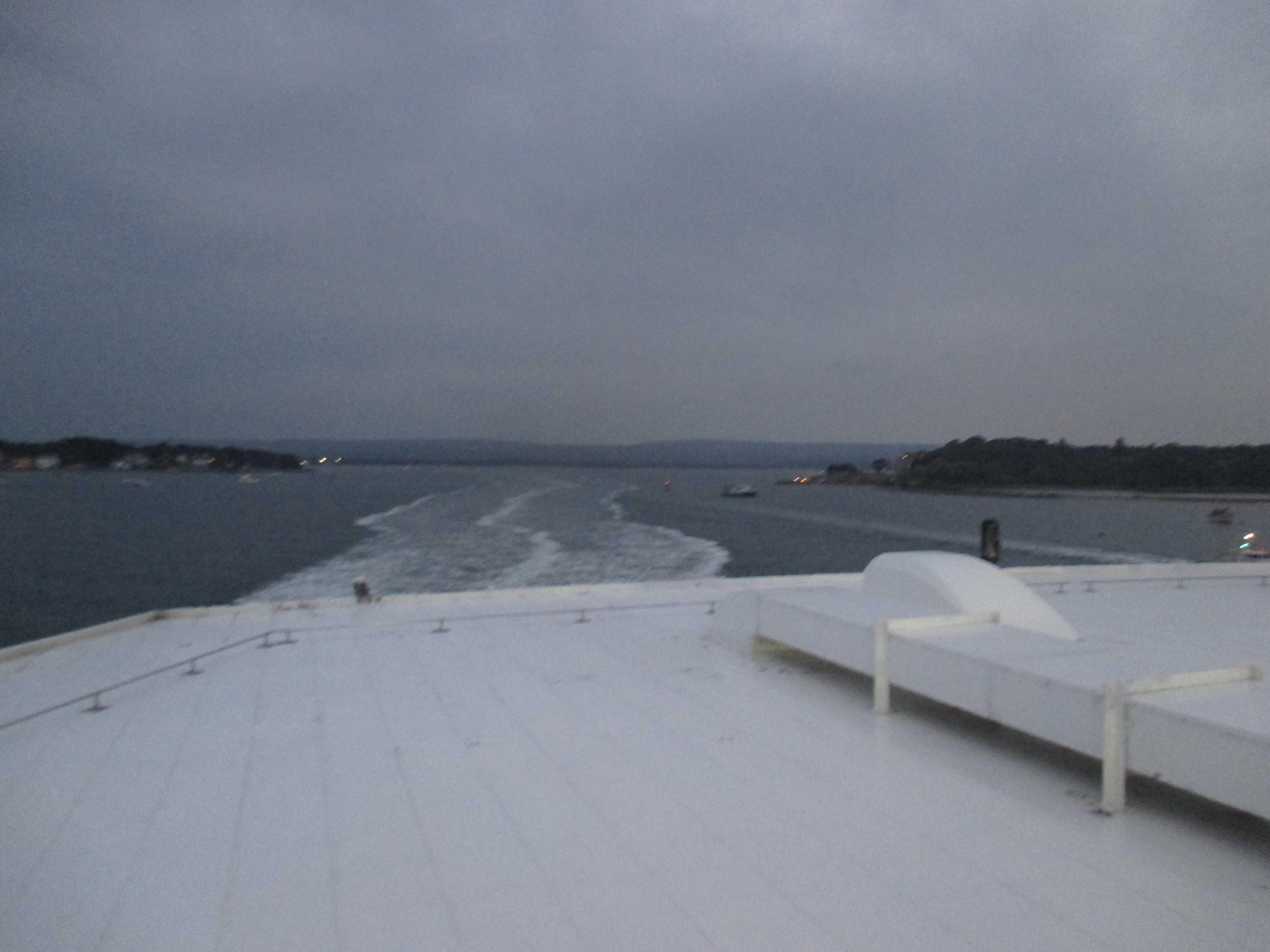 We begin to pass some headland, and I spy what I suspect to be the Swanage peninsula to our right (we’re sitting facing backwards), and the wooded prospect of Brownsea island in the distance, where Colonel Baden-Powell first set up the Scout movement. An older man opposite us confirms this to be the case, and over conversation he tells us his business on Guernsey as a project manager for a young millionaire. He’s overseeing the construction of a large ‘super-house’ on the island. The millionaire wants to escape his tax duties whilst continuing to work on nearby Bournemouth. We’re told that non-Guernsey residents must pay an extra 30% on properties, bringing the cost of this construction to around £5 million, but this doesn’t seem to be an issue. The guy with us seems a little distant and unattached to his paymaster but happy to do the work, and his main complaint is the slowness of getting things done on the island, be it securing a permit or finding a contractor. It doesn’t matter too much. Though the ferries to and from the islands can be expensive, he has the occasional pleasure of joining his boss in his private jet, a neat 38 minutes flight from Guernsey to Bournemouth. Quicker than the average commute, certainly.