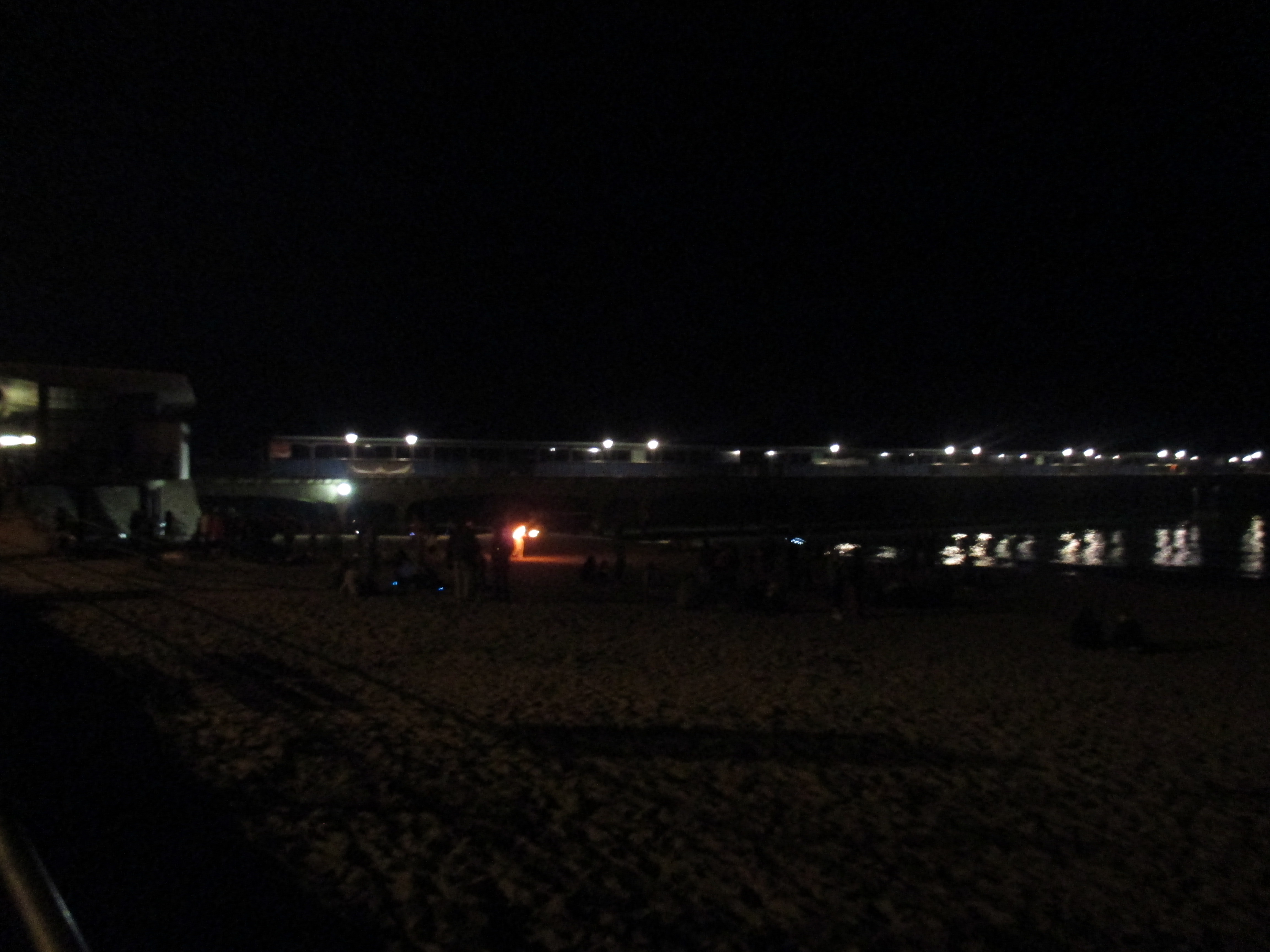 Tonight we’re staying with Ricardo through Couchsurfing (our host in Jersey had, frustratingly, bailed out at short notice). He’s a friendly and trusting Portuguese guy, and he offers to give us the keys to his place whilst he finishes his shift at a restaurant. We chat, then I ride back towards Bournemouth centre, along a very dark cliff park, and down to a large gathering at Boscombe Pier, where there’s an ‘LED and fire party’ on, with teenagers drinking and congregating on the beach. Further in, I pass lots of young people sitting and socialising in the town’s stately gardens, even at night, giving the place a surprisingly nice vibe, like a bohemian European city, occasionally interrupted by aggressive shouting and fights breaking out, like that in the main square when I arrive, which reminds me where I am again! I find my sister, and we head back to Ricardo’s, where we cook dinner for us all and chat.
