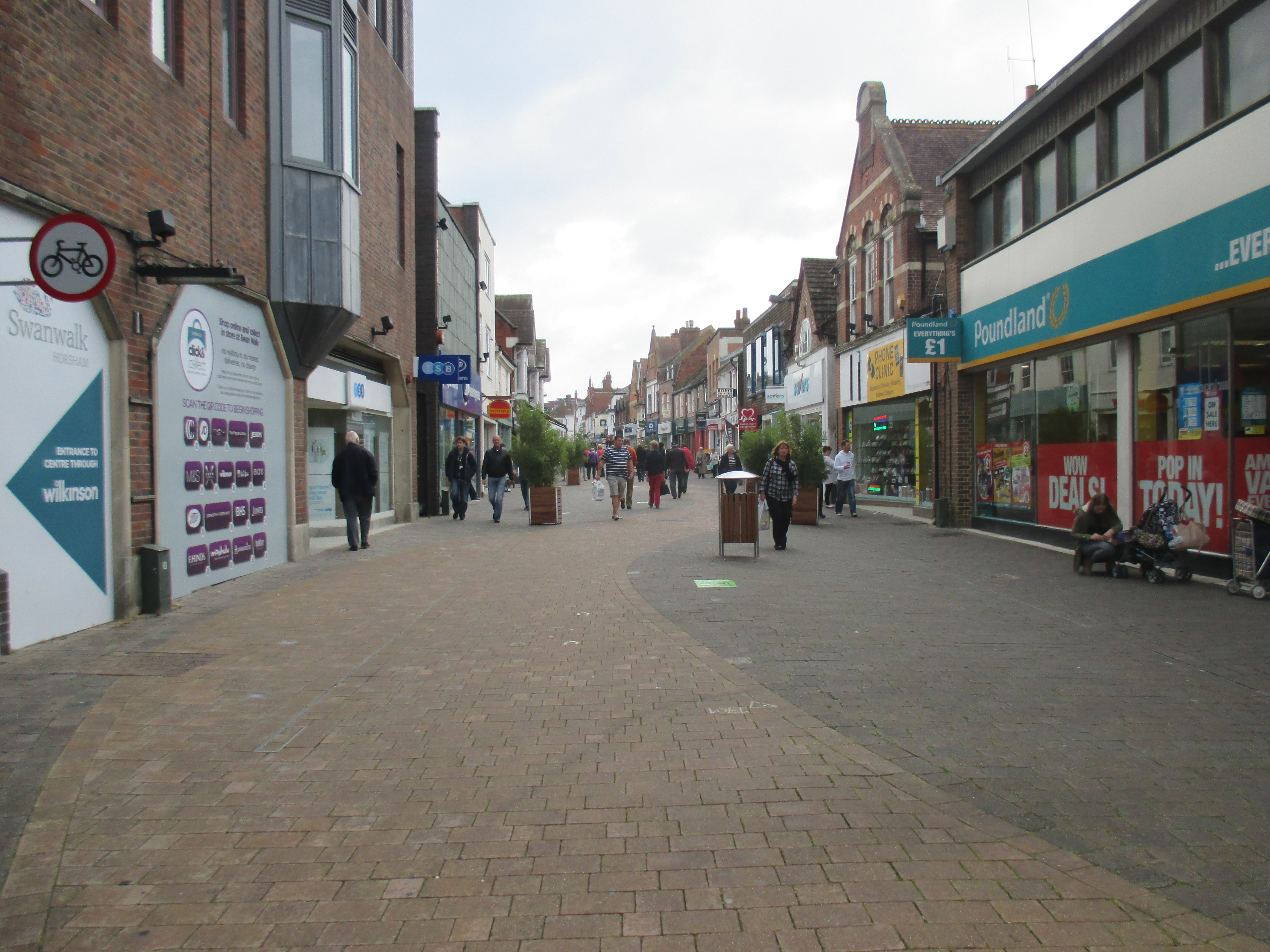 – street talk outside the Swan Walk shopping centre, Horsham.