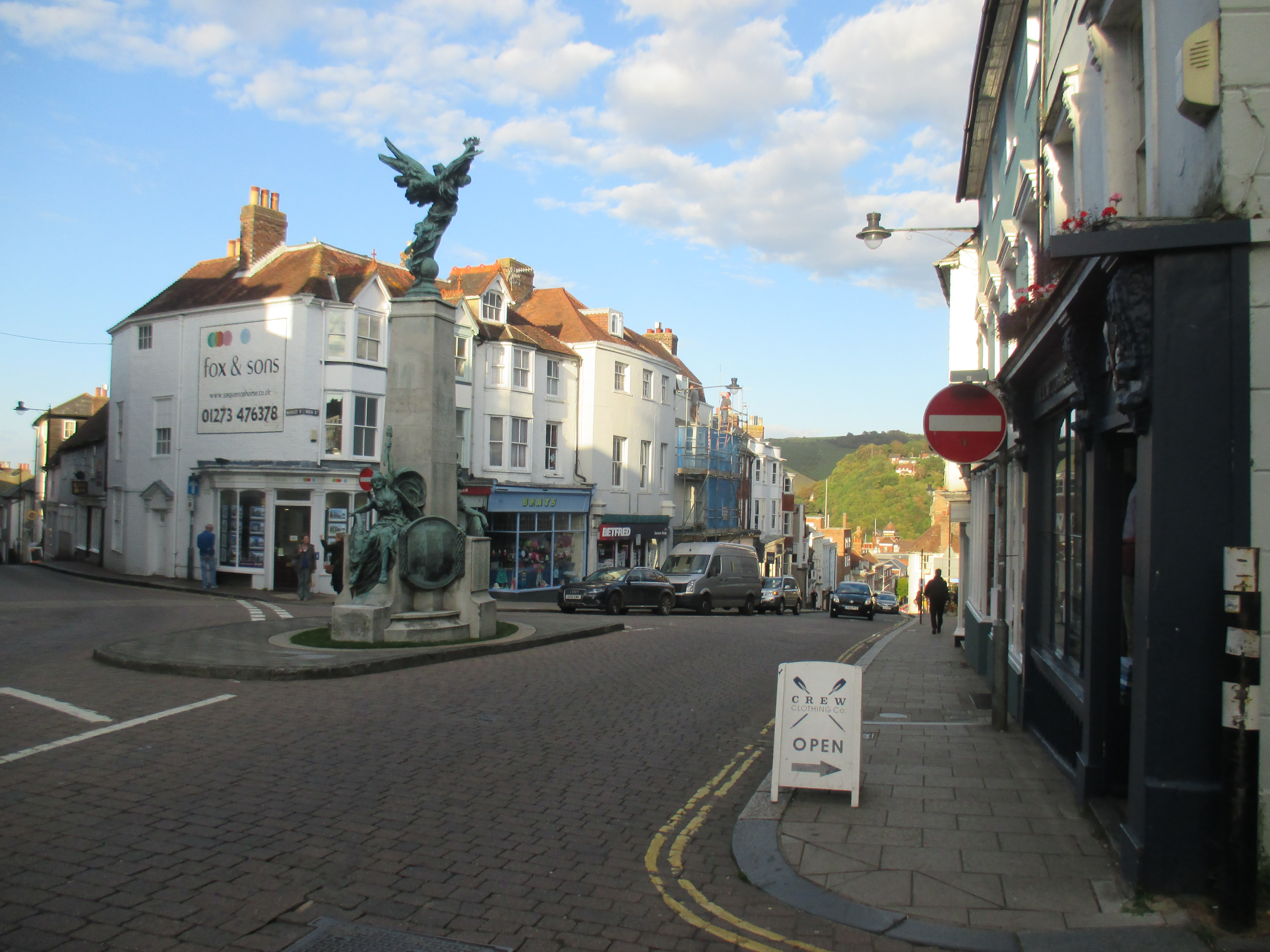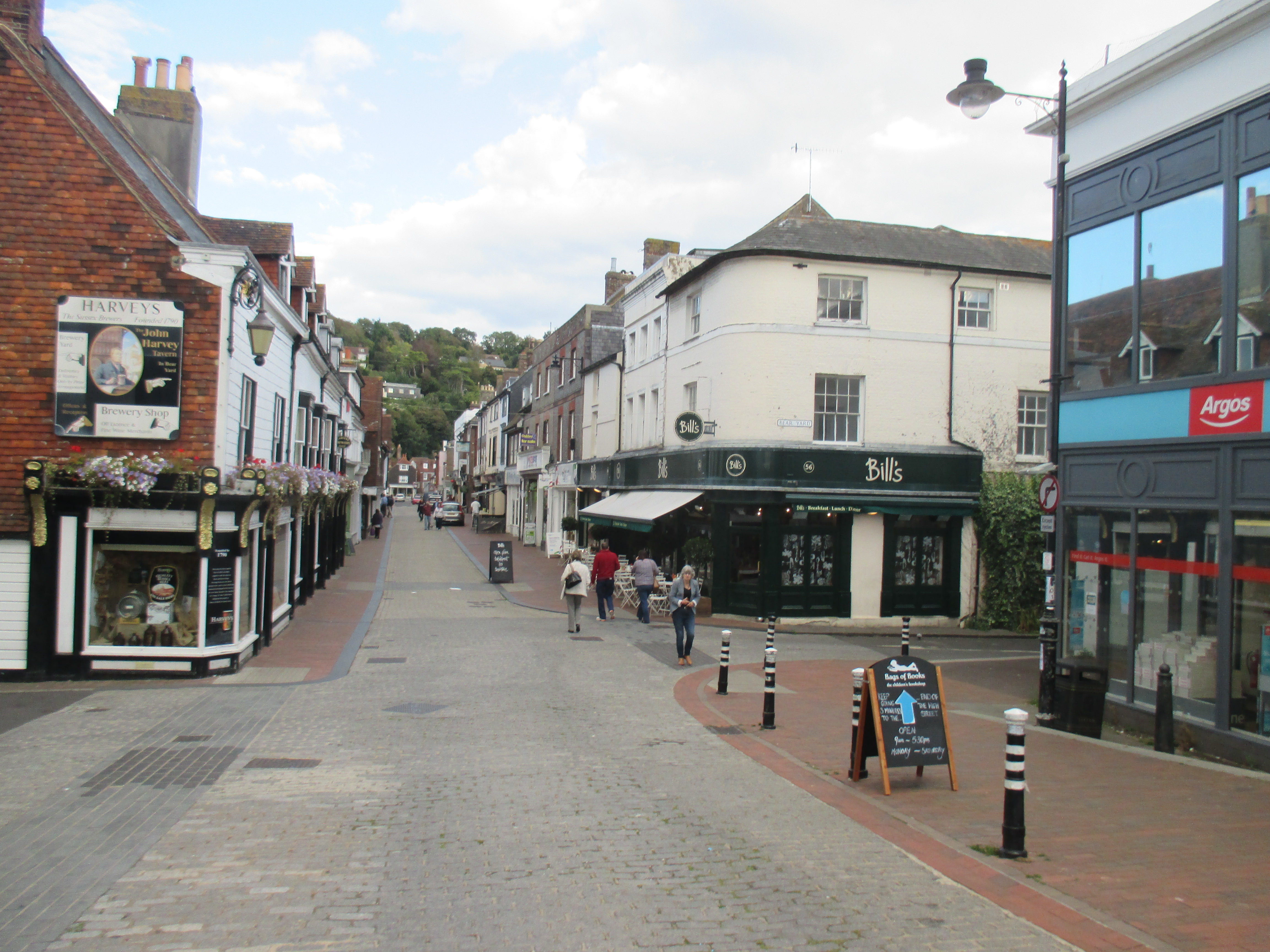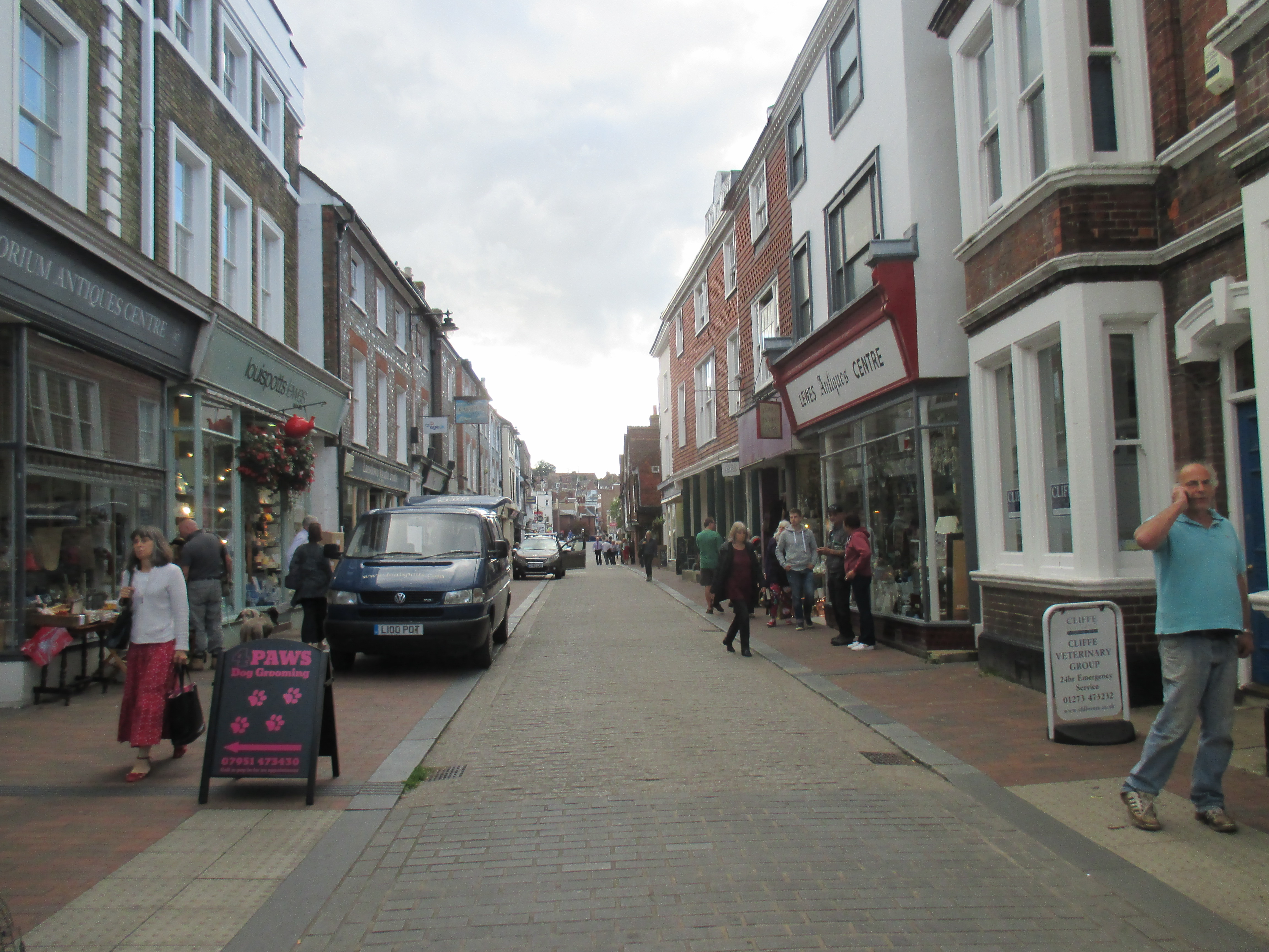 Eventually I reach Lewes, a small and old market town cut deep into a valley and surrounded by white chalk cliffs. The road dips into the town, threading through 18th and 19th century housing, quickly concluding at a small town centre defined by a Waitrose and a long High Street that cuts the shape of the town. Use this as an axis. I take on one end first, passing old Fitzroy Hall and Waterstones bookshop, crossing a bridge and passing Harveys brewery, producer of distinctive and pleasurable south-east English beer. There are more antique stores on this edge of town than most settlements five times Lewes’ size would require, but the effect is twee, harmless distraction. Petworth made a similar trade in overpriced bric-a-brac. Young men and women sit on benches by the river, by the shops, gazing either wistfully or diplomatically at some shared encounter. I pass them and envy them the opportunity of learning love and its errors again.