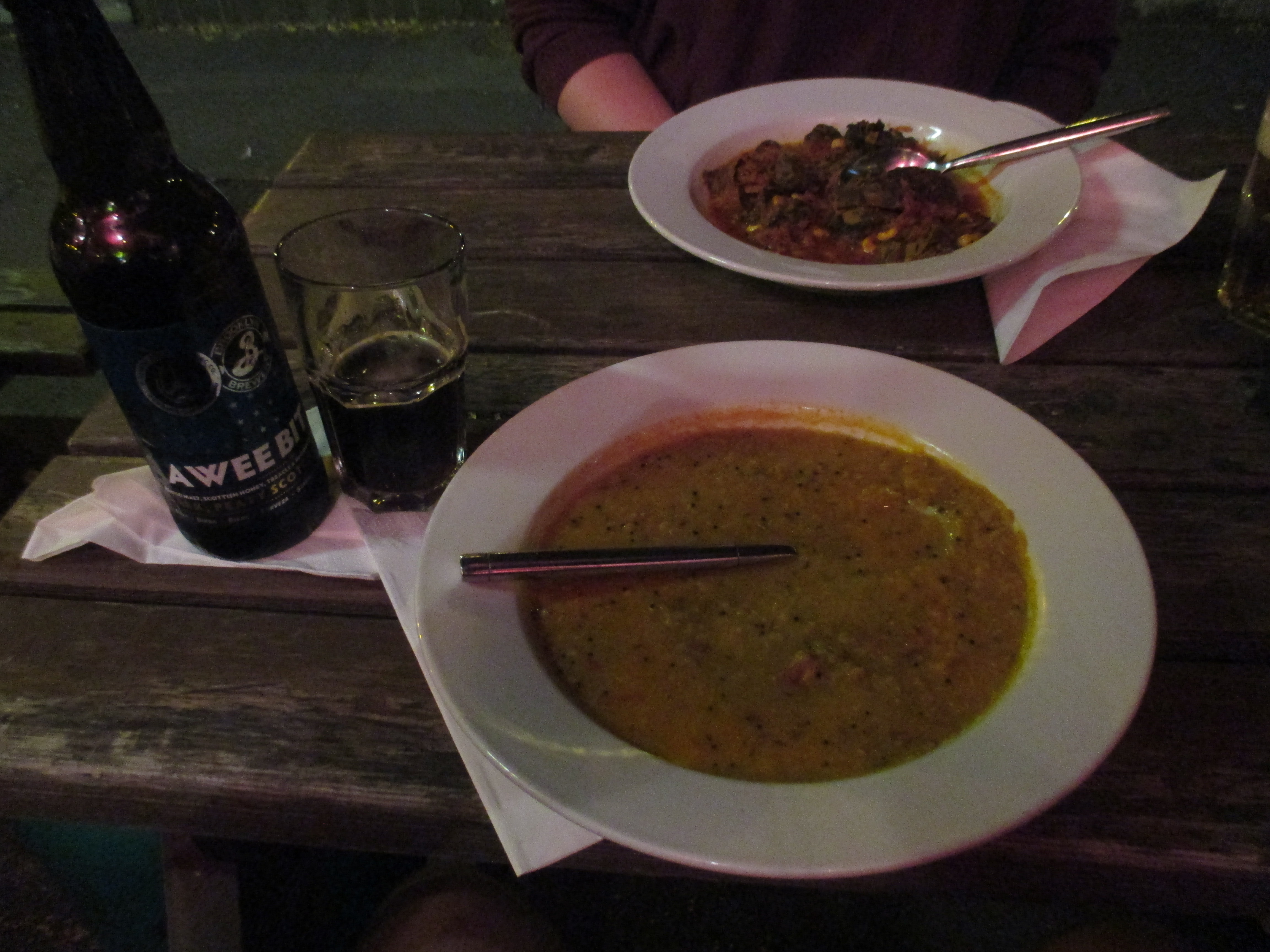 We head to Planet India, a local curry institution which deserves full marks for its menu descriptions alone (‘Doesn’t sound that great, just trust me, a quintessentially Gujarati dish’). The dall is delicious. We drink beer and talk. Erin’s just come back from Japan, and shows us some pretty fruity magazines found openly on sale there. For all the meekness and repression of extroverted social mores, expected particularly of women, there’s a bizarre and open hentai sexualisation of young women everywhere. Tattoos are frowned on, drug use receives severe prison sentences, and no phone-calls are permitted on trains. The salary-man is exulted as a masculine cultural hero of the workplace, and she describes a crippling conformity at work compared to our standards. But are we not strange in turn, another island nation, gripped by an unspoken but all-too-real hierarchy of social class, from the zero-hours migrants sweeping the streets to Queen and her corgis behind palace gates? Only the poorest seem to pay taxes, and property rules the waves, even if no-one seems to own up to owning anything.