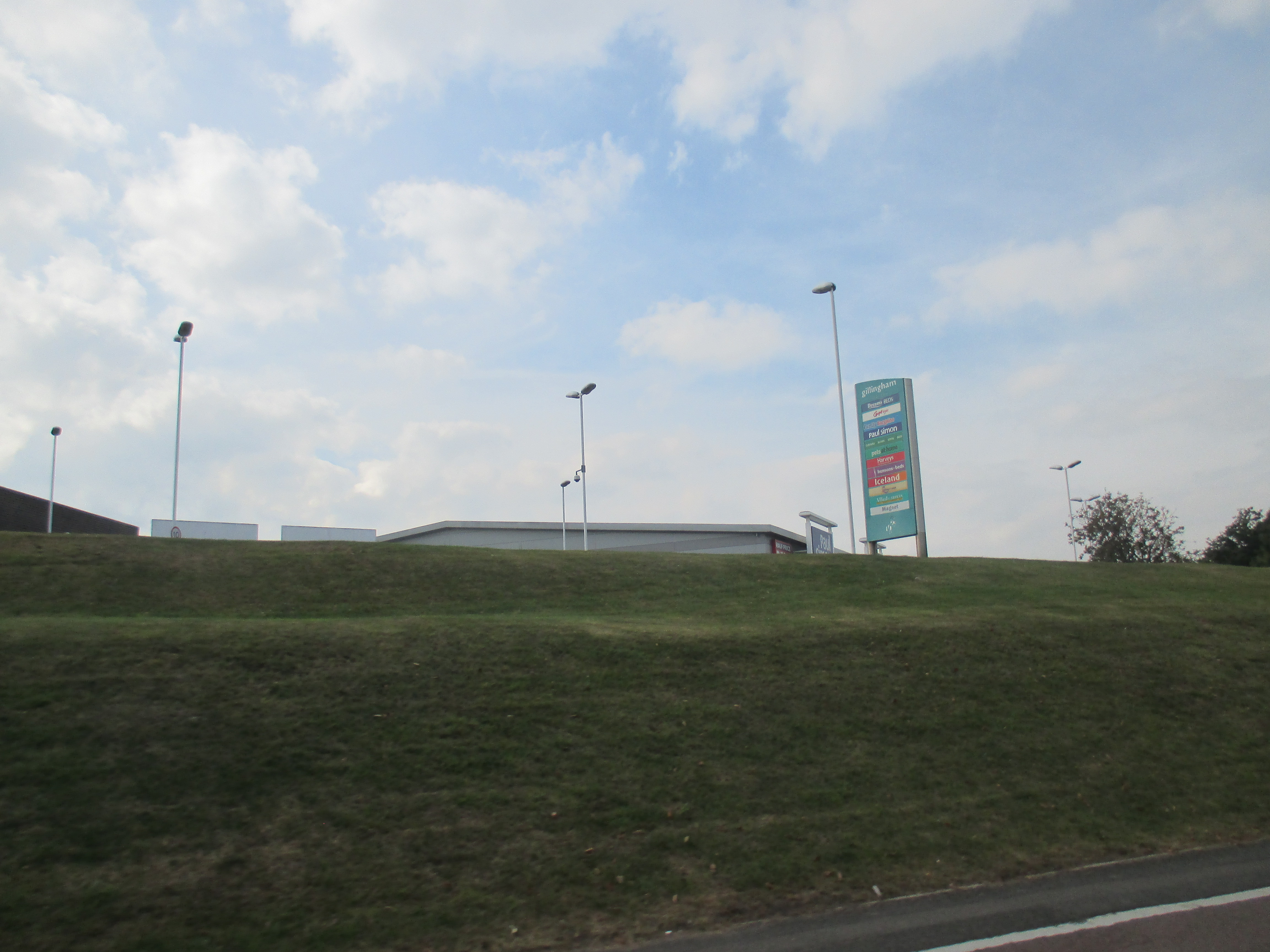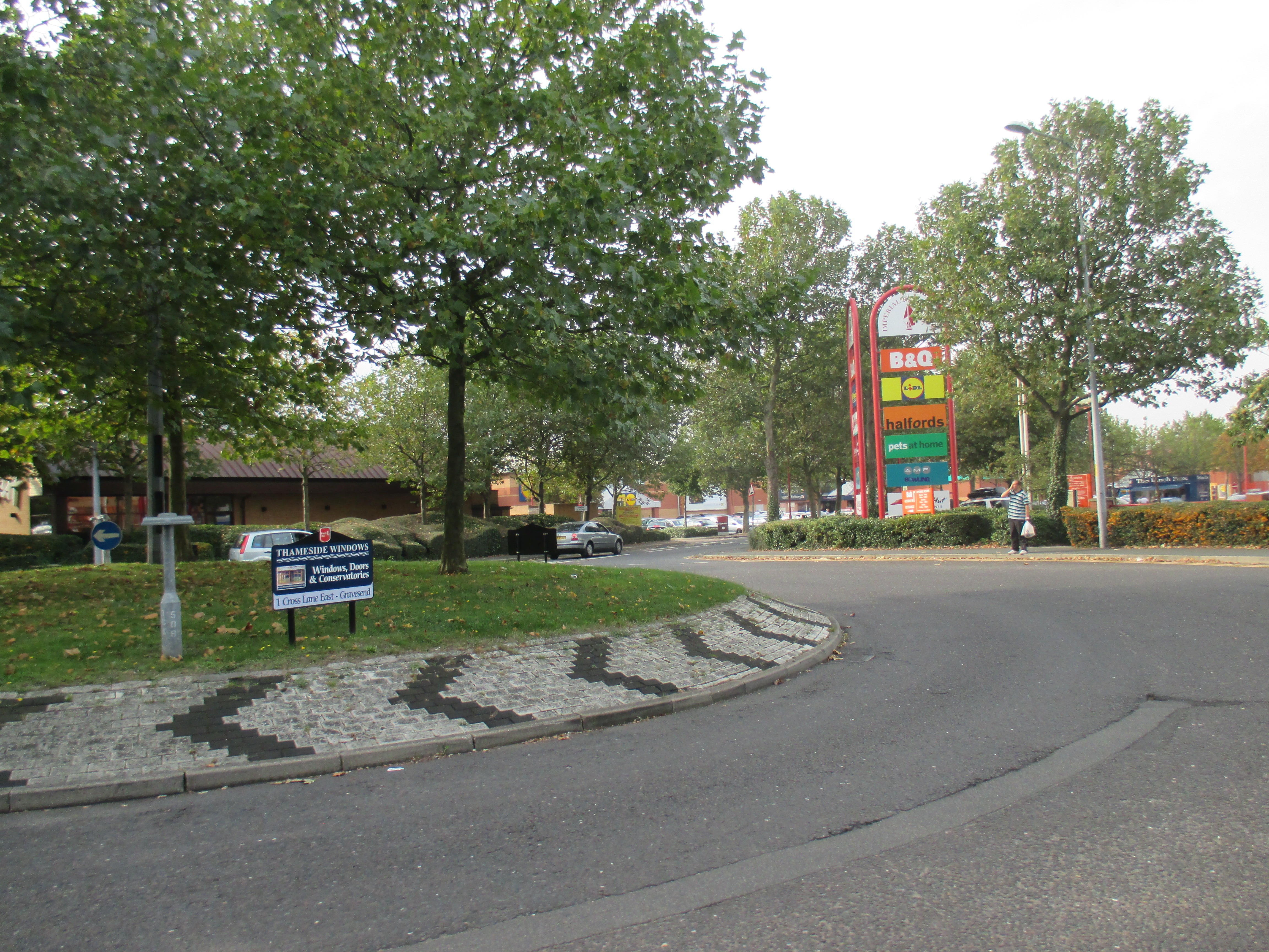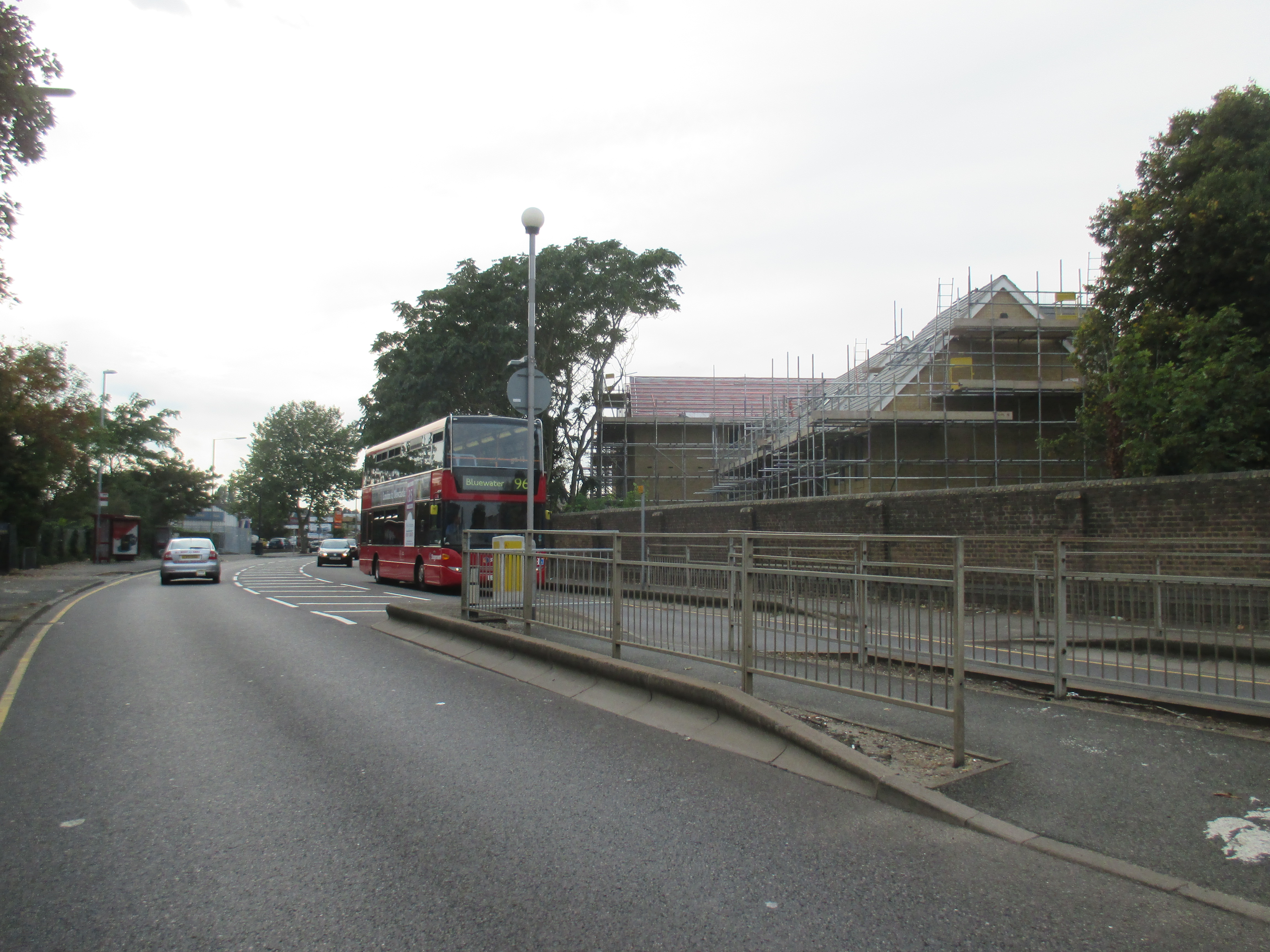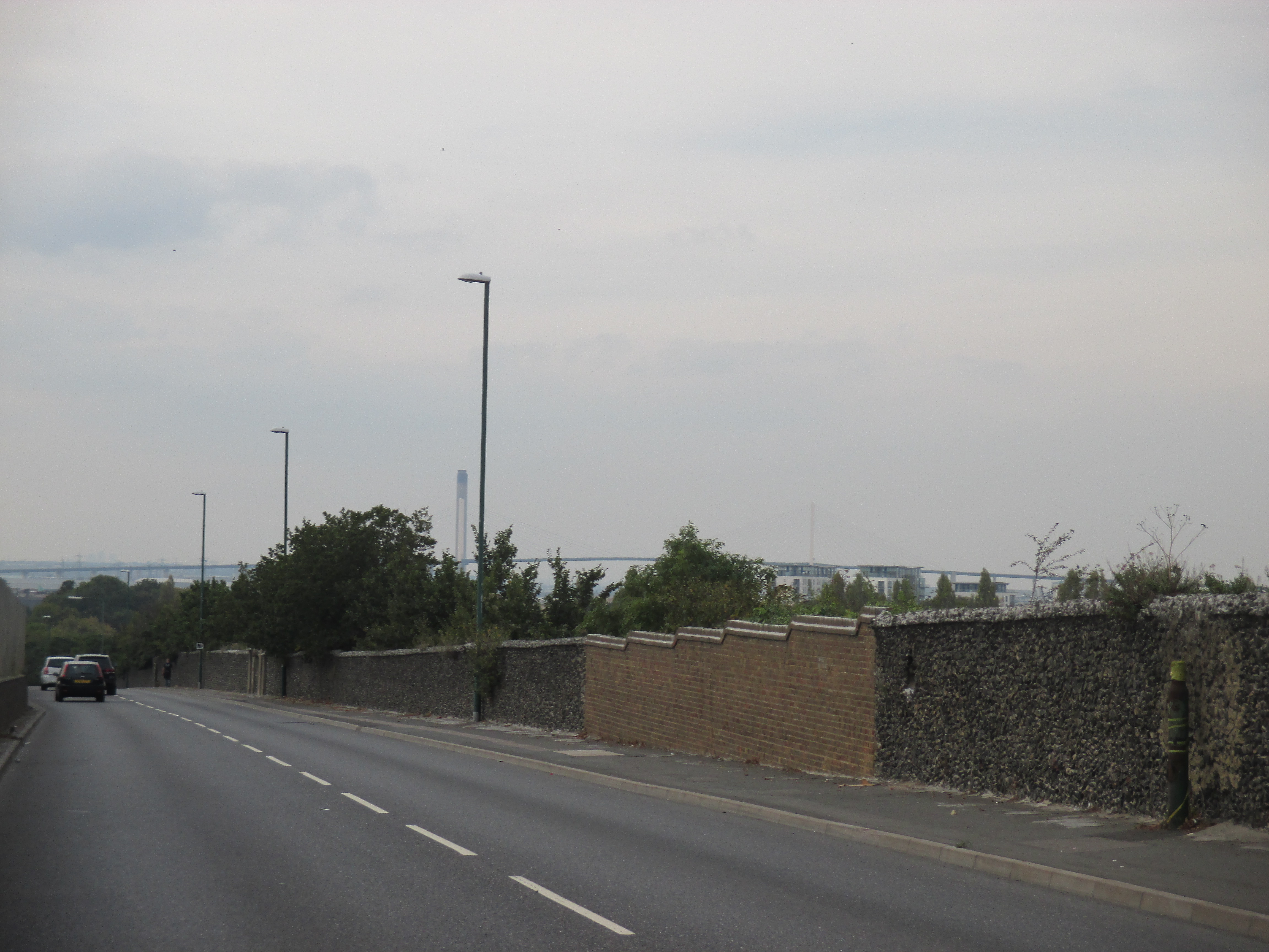 Two kids shout amiably at me on the road to Stone. The terrain’s become entirely built-up now, and the number of brownfield sites is disappearing, replaced with acres of suburban housing. Somewhere along Watling Street, I’ve entered London, but god knows where – there is no welcome sign, no obvious point of entry. The M25 is still some miles ahead, but there’s a continuity of urban settlement that suggests city. Instead of the rural privatised bus services I’d seen through the Medway towns and Gravesend, I spy my first London bus, route 96 to Bluewater, somewhere near Stone. I stop by a small supermarket and gorge on a calorific lunch of chocolate cookies and fruit smoothie, as young teenagers race around on dirt bikes, confusing the car drivers.