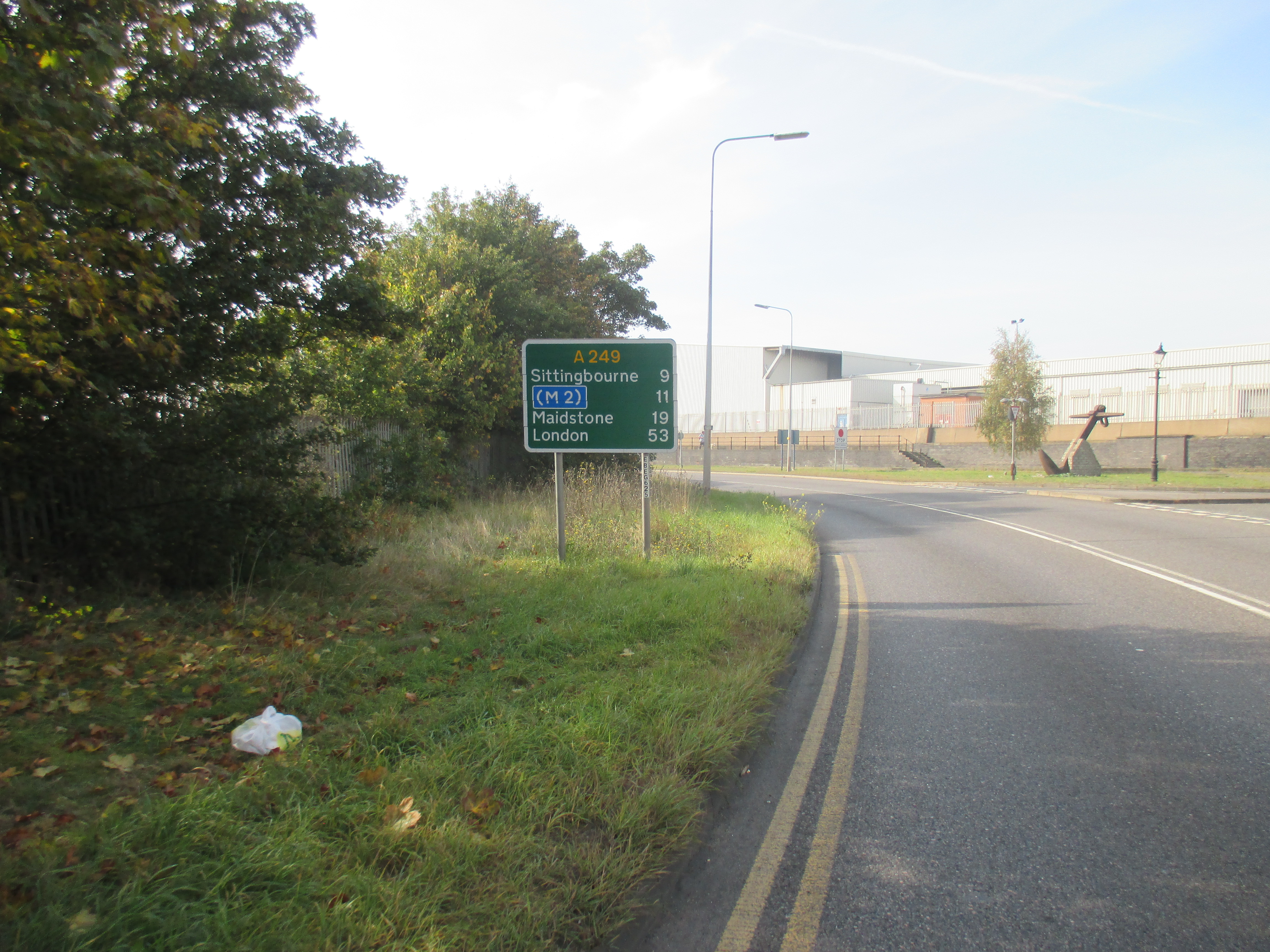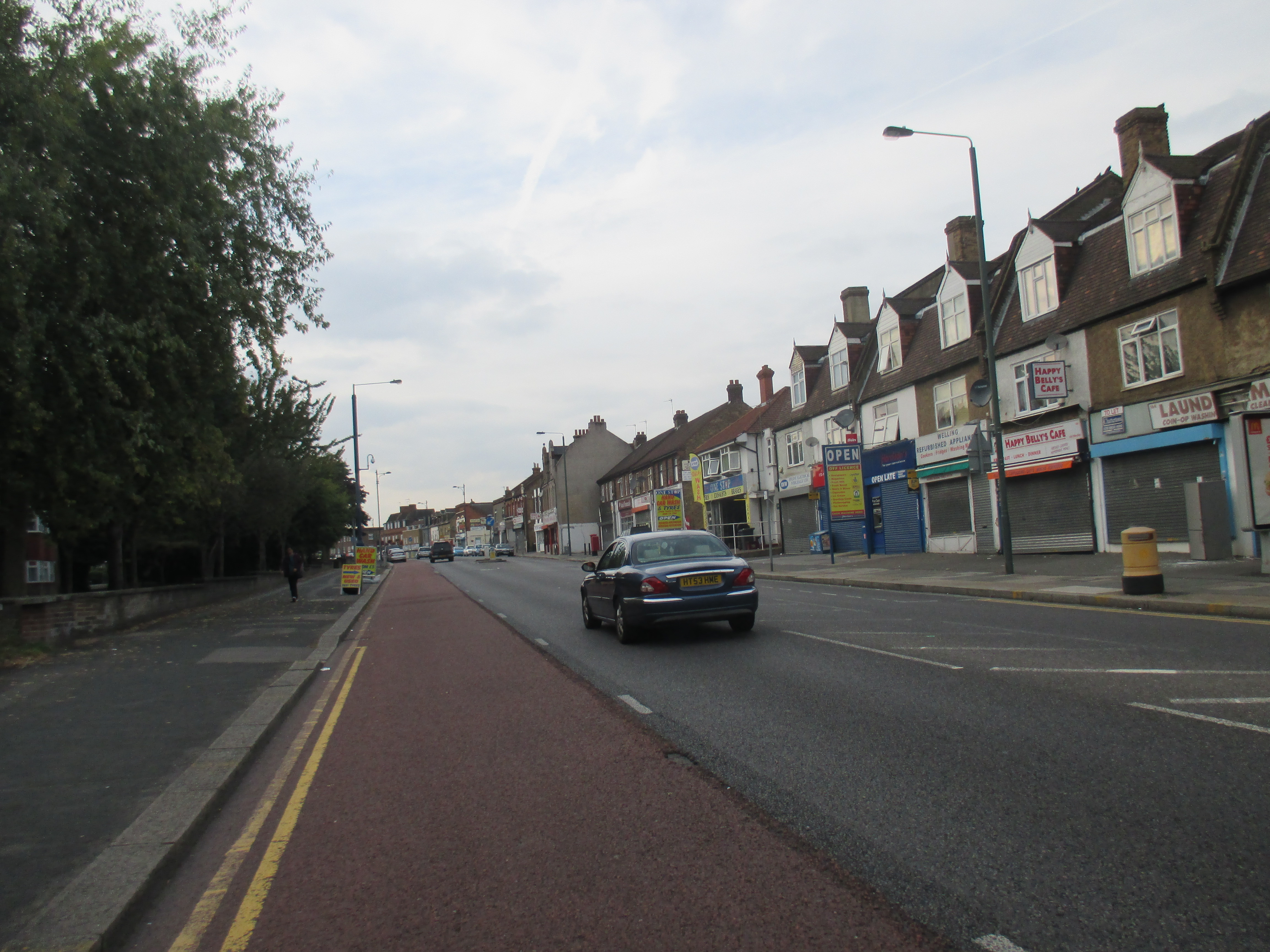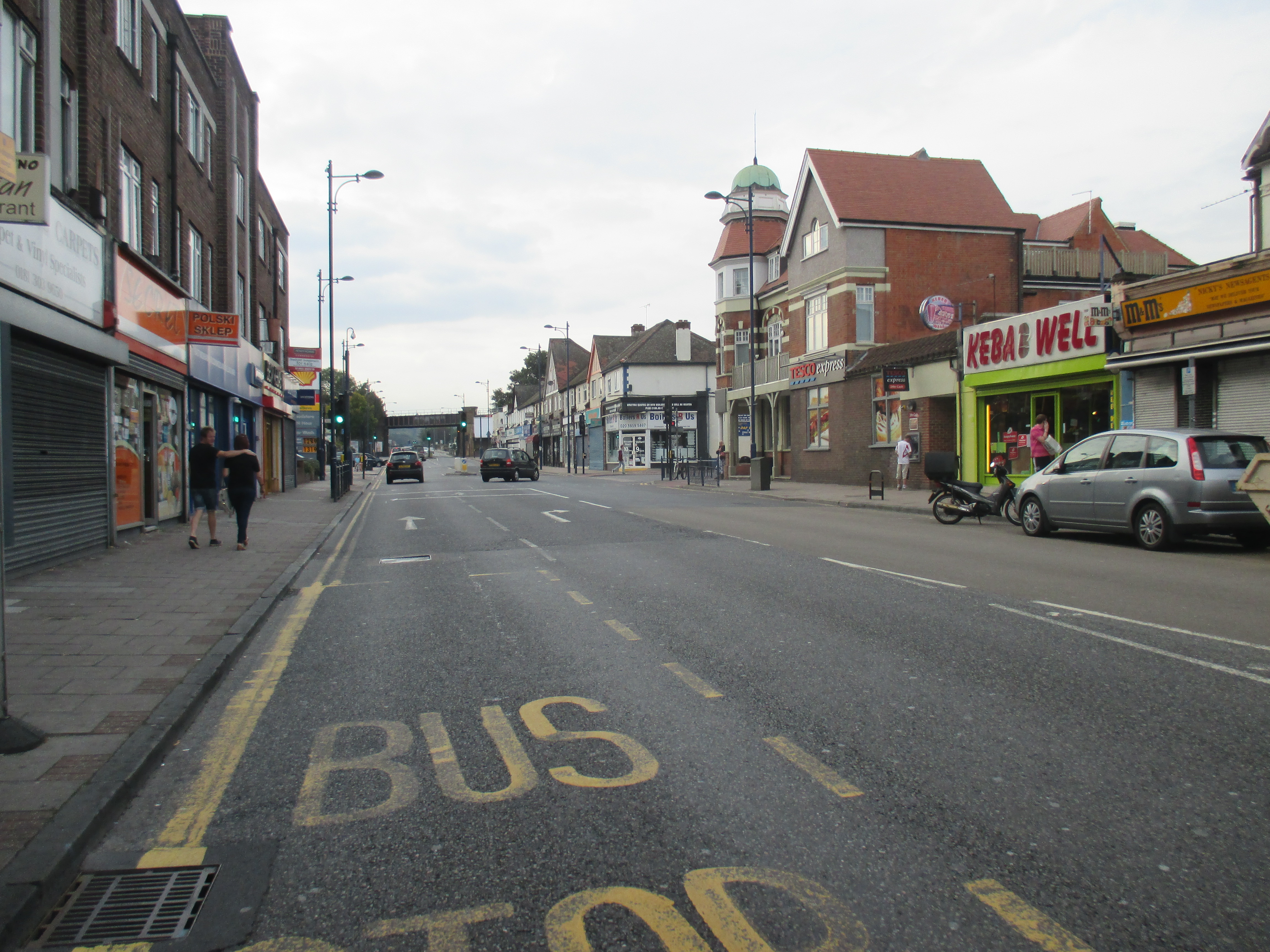 Two kids shout amiably at me on the road to Stone. The terrain’s become entirely built-up now, and the number of brownfield sites is disappearing, replaced with acres of suburban housing. Somewhere along Watling Street, I’ve entered London, but god knows where – there is no welcome sign, no obvious point of entry. The M25 is still some miles ahead, but there’s a continuity of urban settlement that suggests city. Instead of the rural privatised bus services I’d seen through the Medway towns and Gravesend, I spy my first London bus, route 96 to Bluewater, somewhere near Stone. I stop by a small supermarket and gorge on a calorific lunch of chocolate cookies and fruit smoothie, as young teenagers race around on dirt bikes, confusing the car drivers.