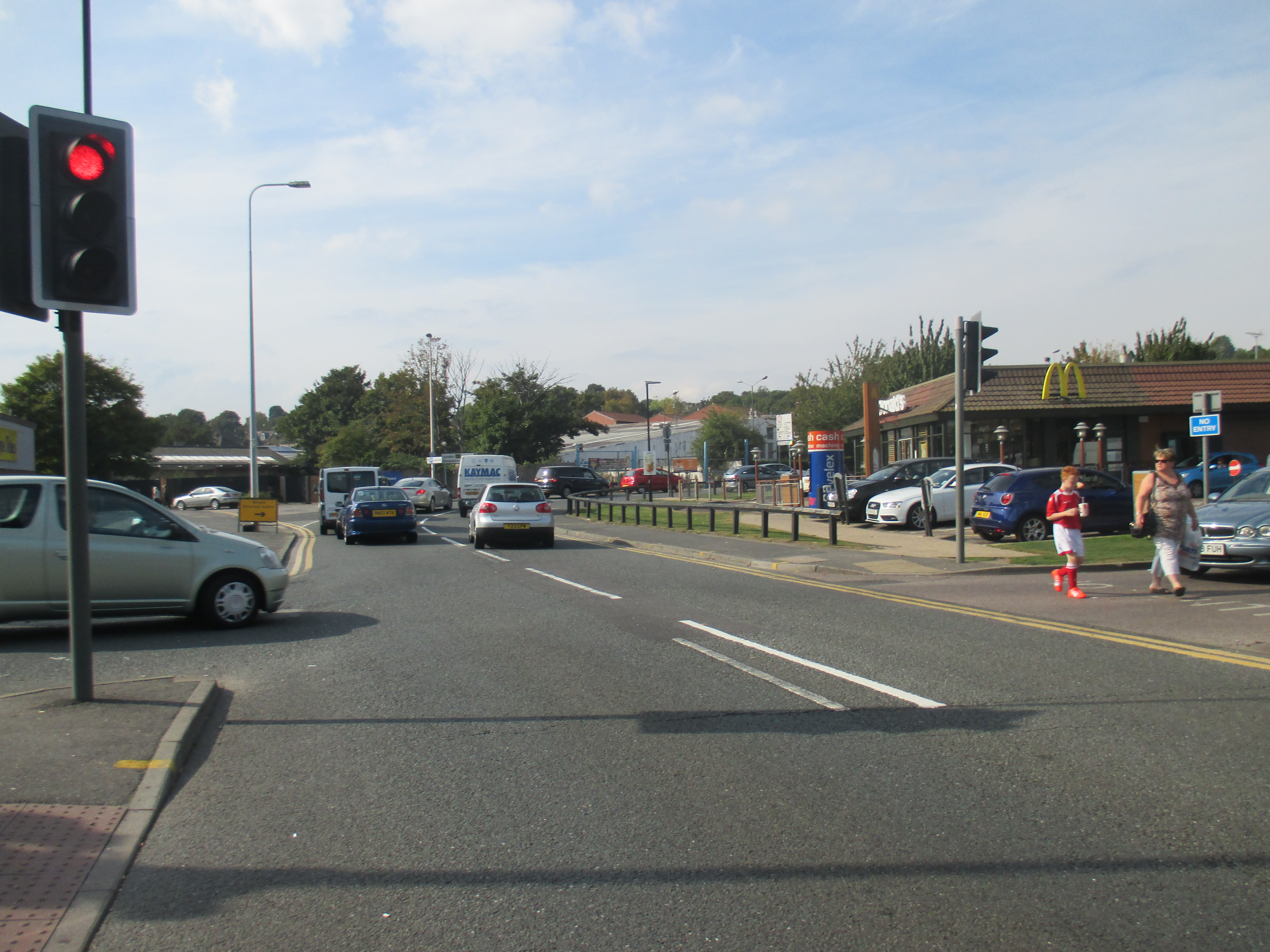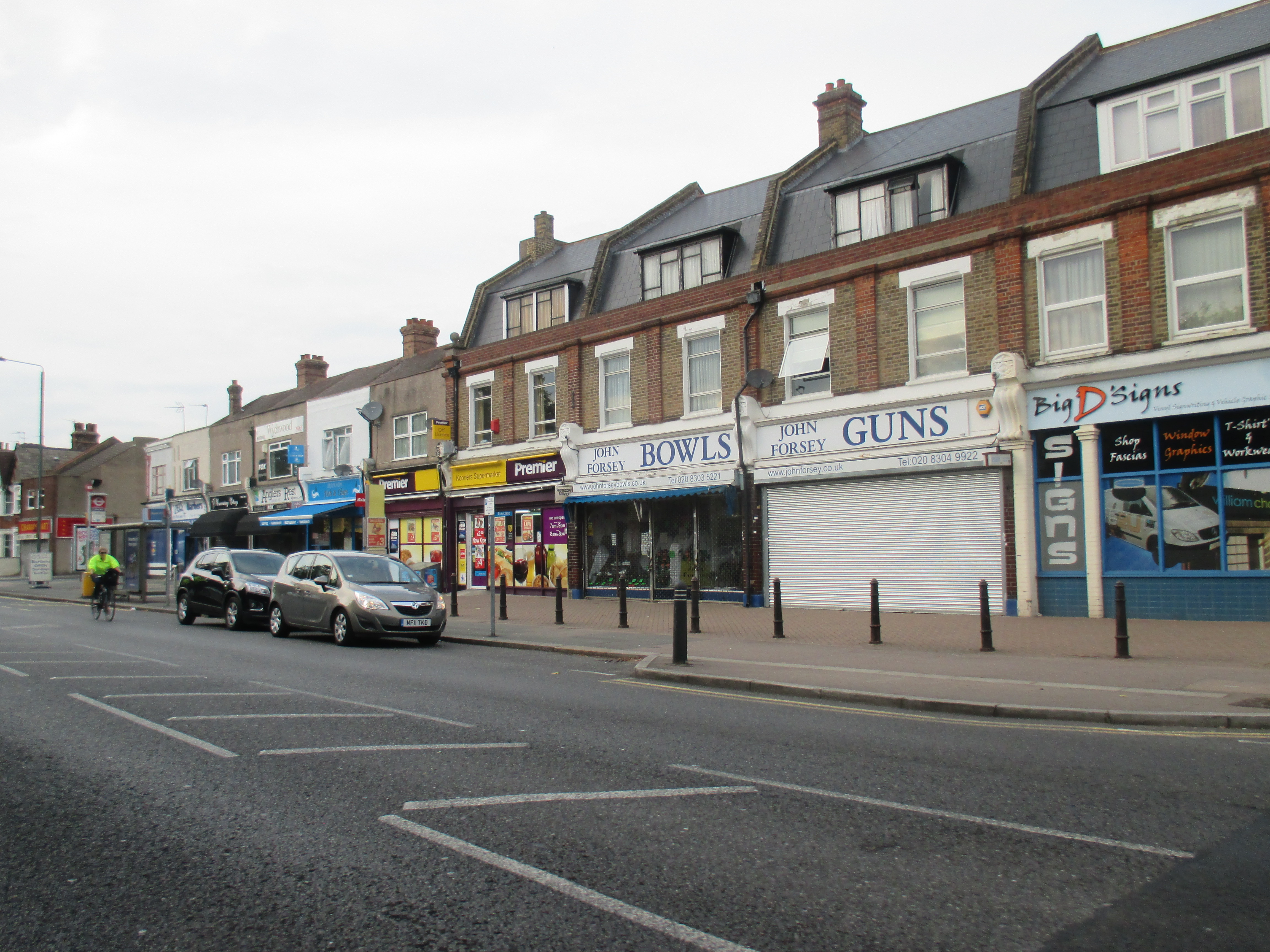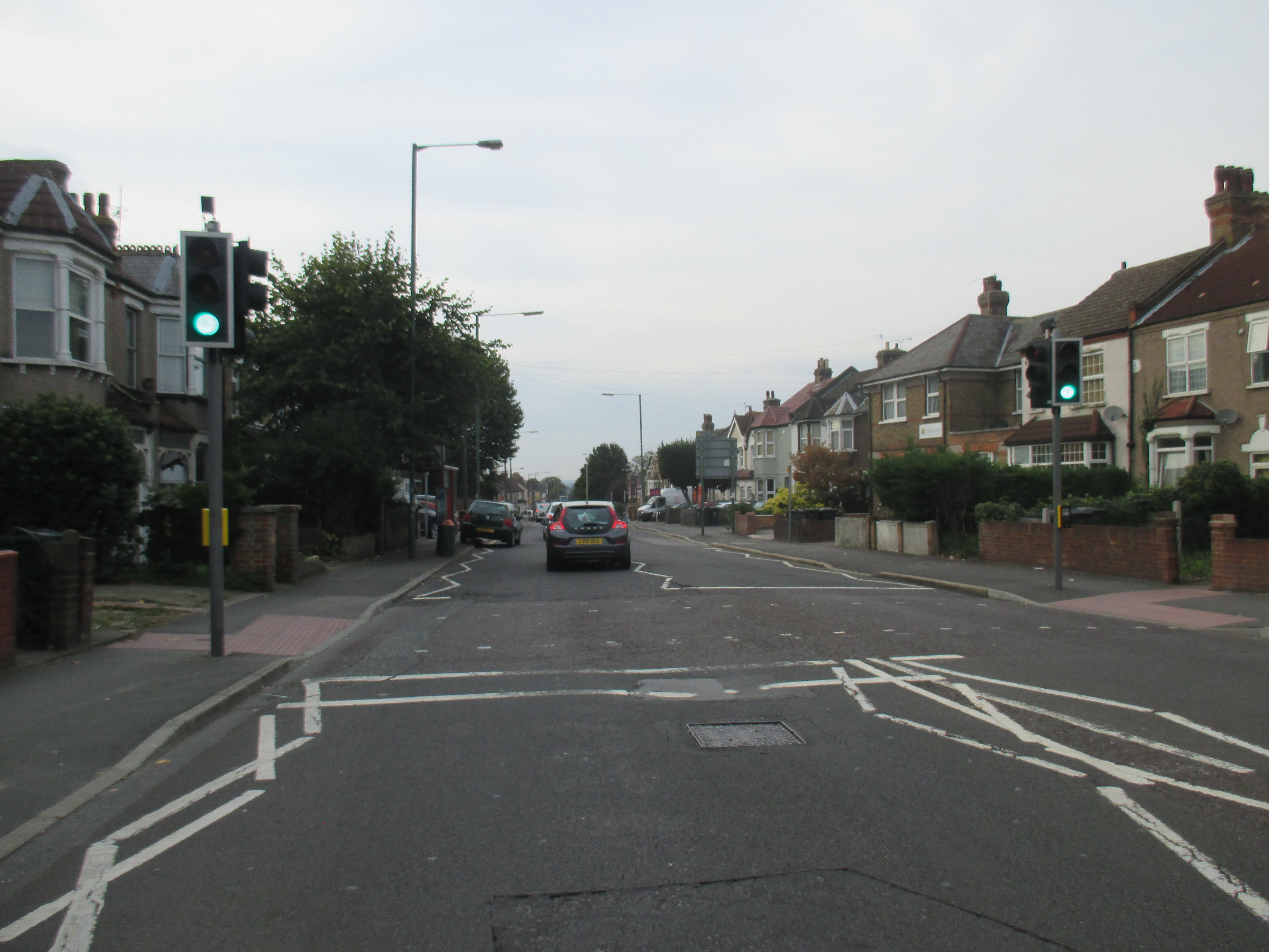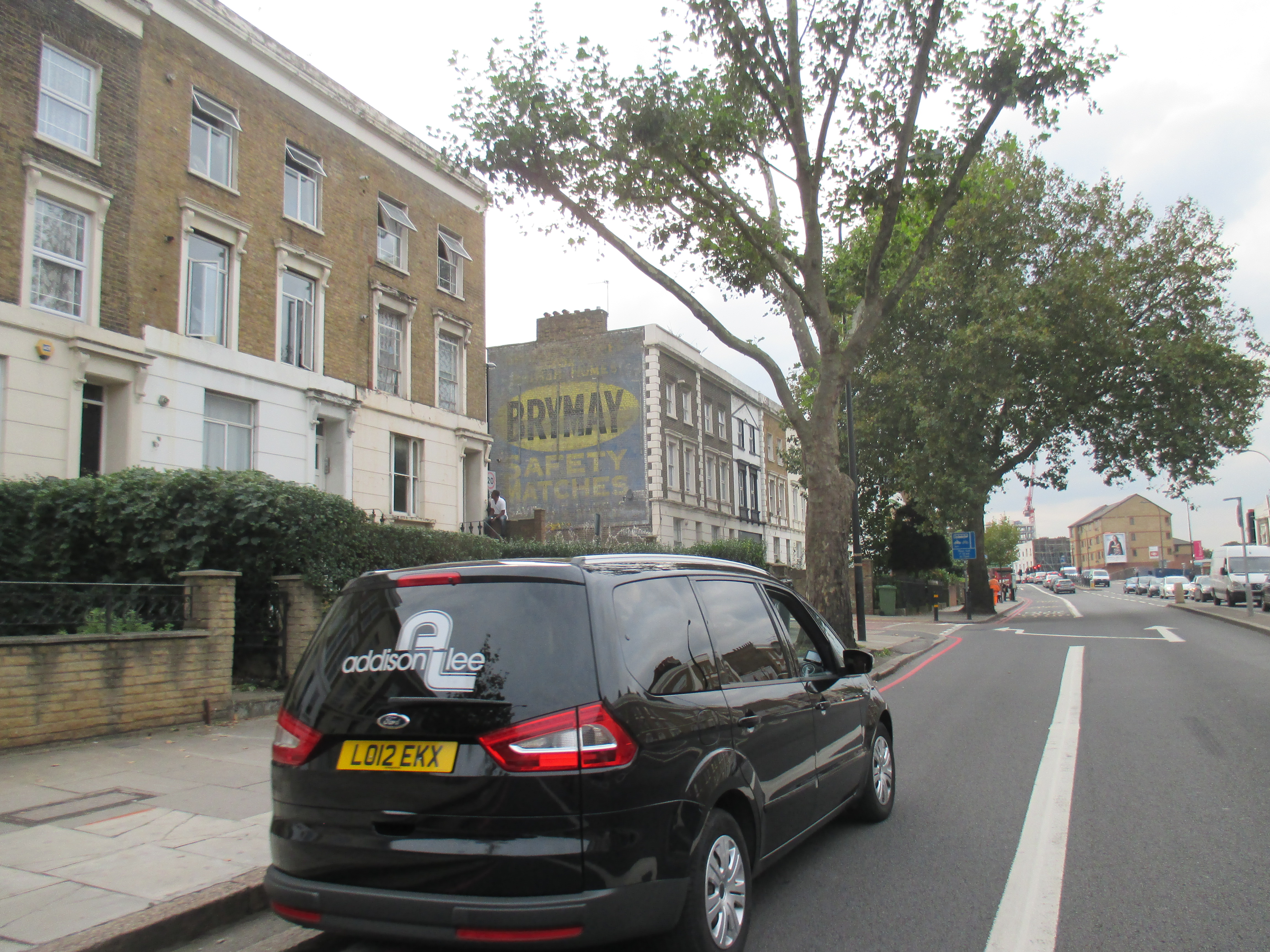 Two kids shout amiably at me on the road to Stone. The terrain’s become entirely built-up now, and the number of brownfield sites is disappearing, replaced with acres of suburban housing. Somewhere along Watling Street, I’ve entered London, but god knows where – there is no welcome sign, no obvious point of entry. The M25 is still some miles ahead, but there’s a continuity of urban settlement that suggests city. Instead of the rural privatised bus services I’d seen through the Medway towns and Gravesend, I spy my first London bus, route 96 to Bluewater, somewhere near Stone. I stop by a small supermarket and gorge on a calorific lunch of chocolate cookies and fruit smoothie, as young teenagers race around on dirt bikes, confusing the car drivers.