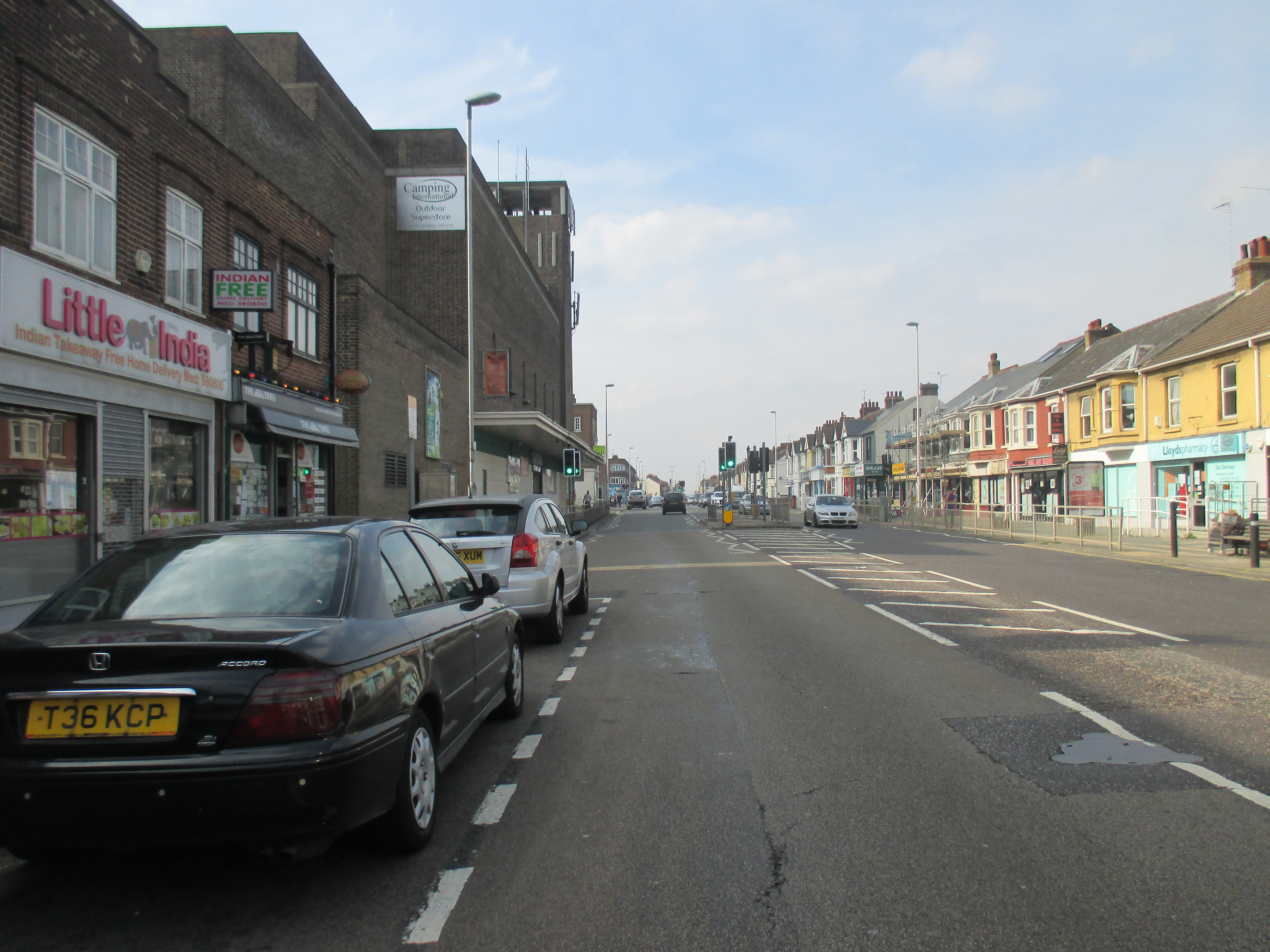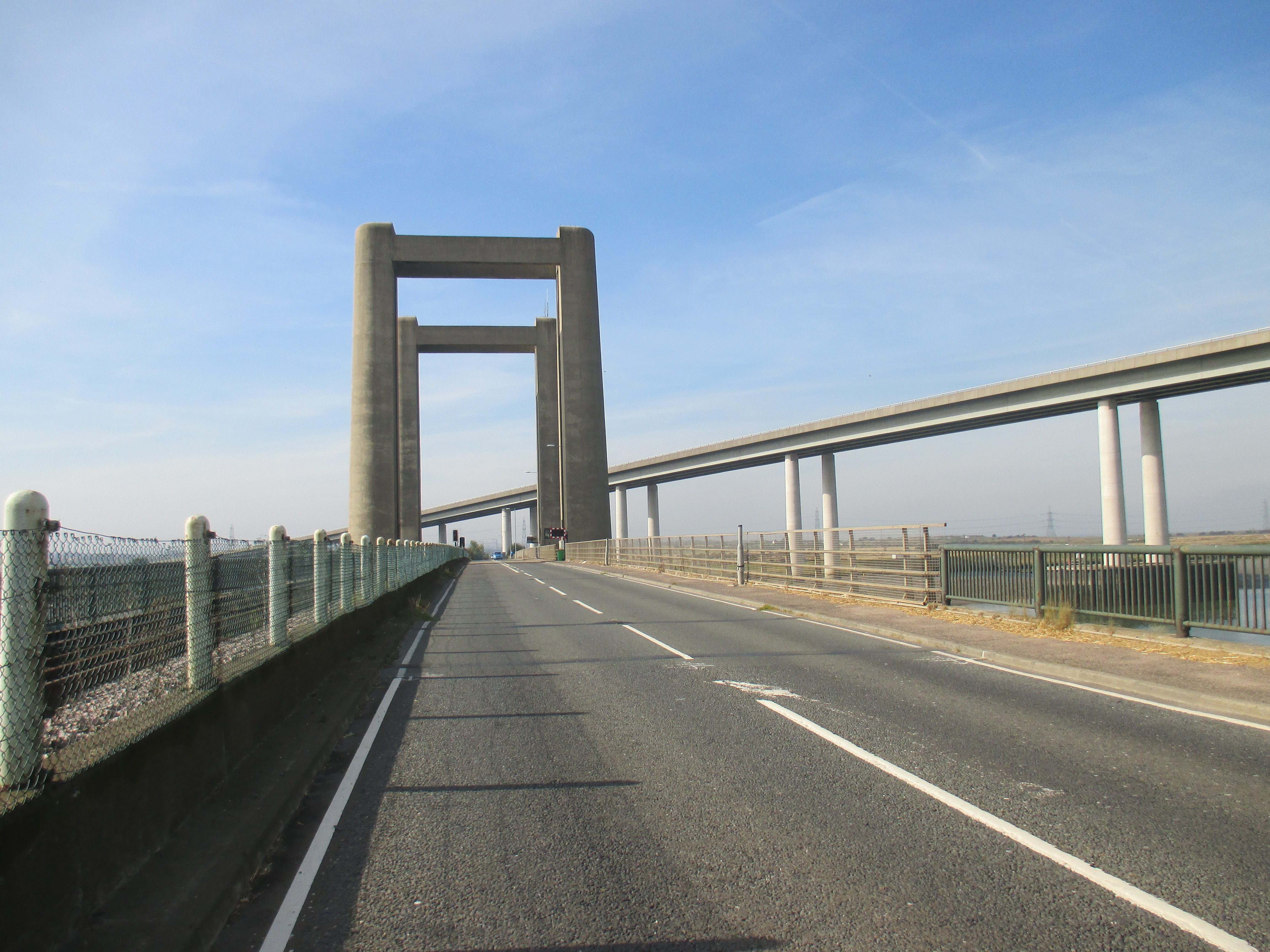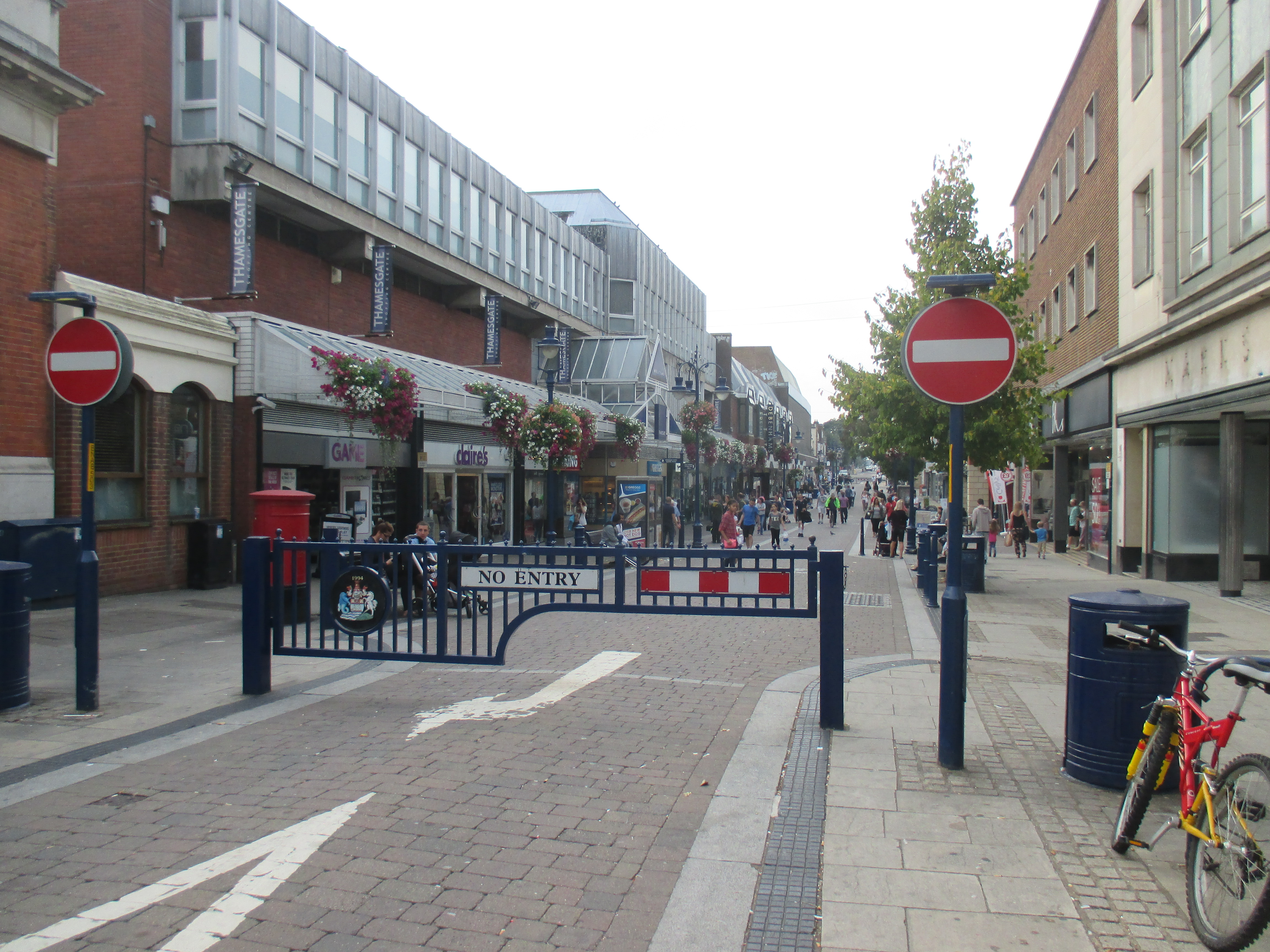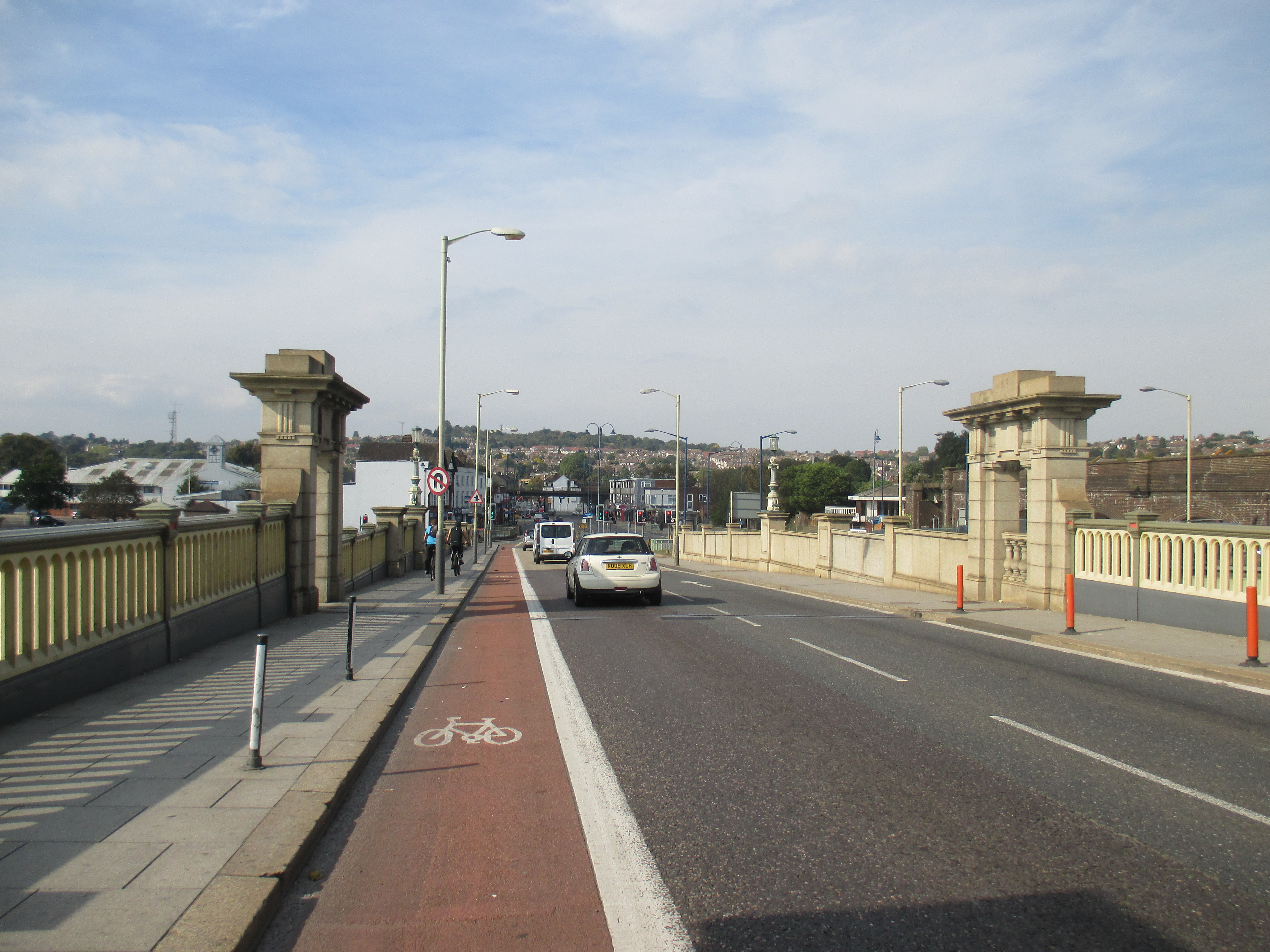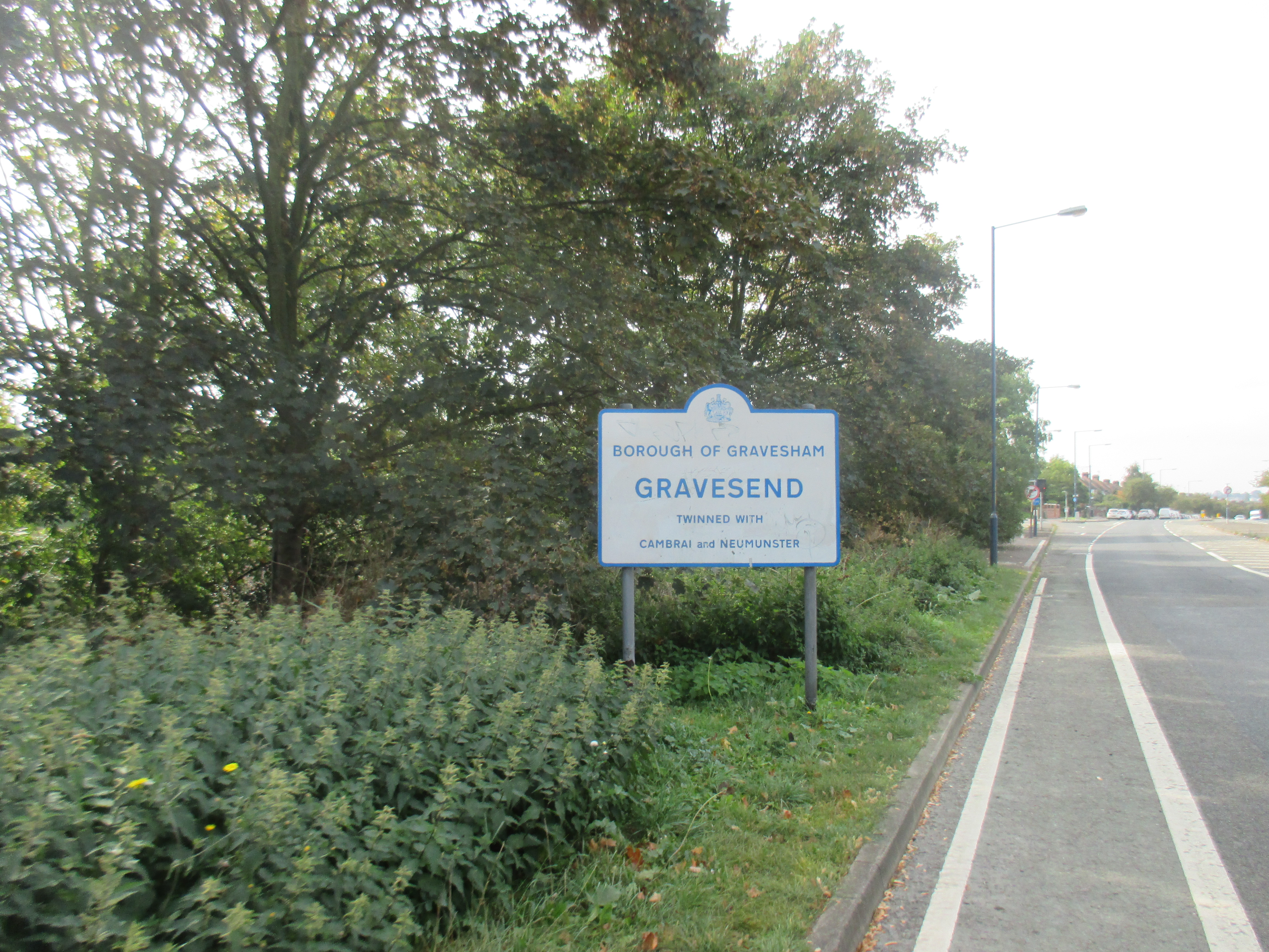 After Strood, the general condition of poverty and unemployment that seems to define the Medway area becomes apparent again. I have the Thames at my right, and as I ride along its course I glimpse peeps of gargantuan docks, refineries and industrial units towards the shoreline by tatty Northfleet and Greenhithe. The streets seem given over to trucks and heavy traffic, and life in these ugly and ill-coordinated terraced streets must be noisy and utterly boring. There’s just so little here. I ride into Gravesend, which in many ways feels indistinguishable from Gillingham. Only the additional signs for London convince me this is the correct way, and not the repetition of a looping nightmare. Large suburban terraces face a bevy of dingy off-licences and takeaways. The shopping precinct in its centre is fairly large but distinctly average, and everyone here looks bored.