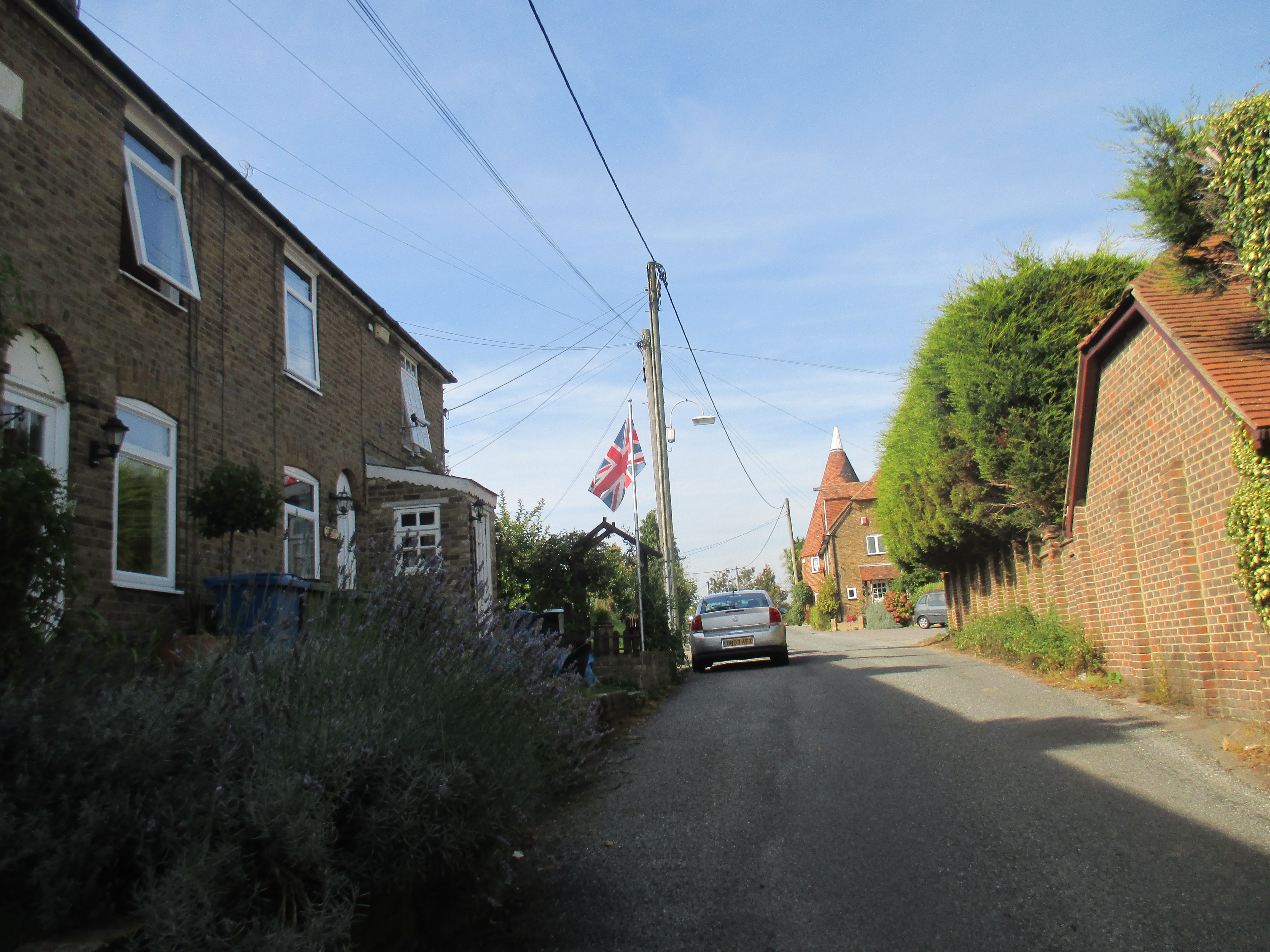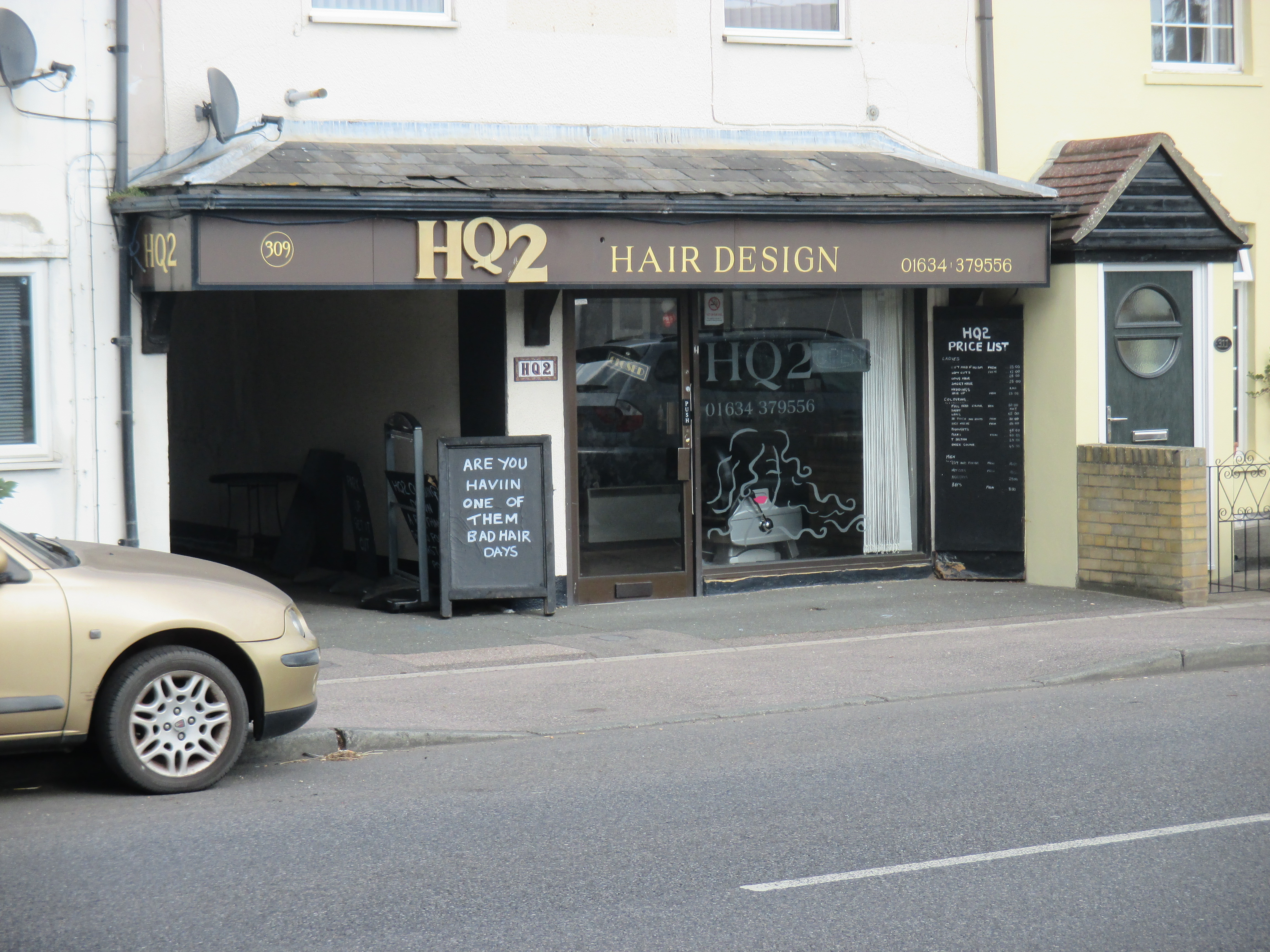 The wisest of all sages agree on the dark-humoured perversity of the universe. Some call it Murphy’s Law, or on these islands, the Law of Sod: if something bad can happen, it will. So it’s of no surprise then that as I ride into Rainham, my tyre gets a puncture. At first I can’t fix it, and it takes around an hour to take the wheel off and put on a new inner tube. Vindicated at least in carrying with me a spare all these days! On the other side of the road, a hairdresser’s sign captures the daft irony of the moment: ‘are you haviin one of them bad hair days’.