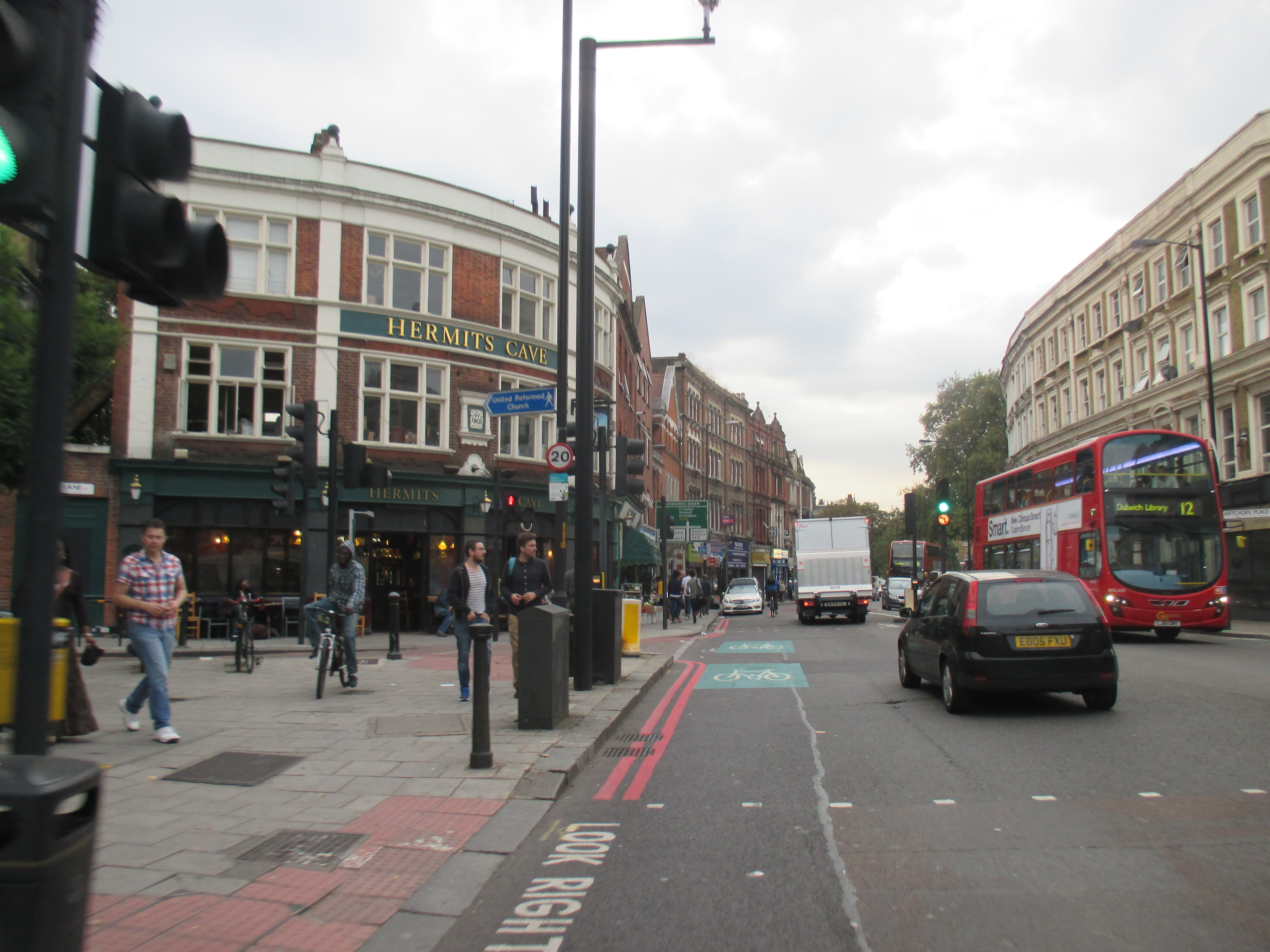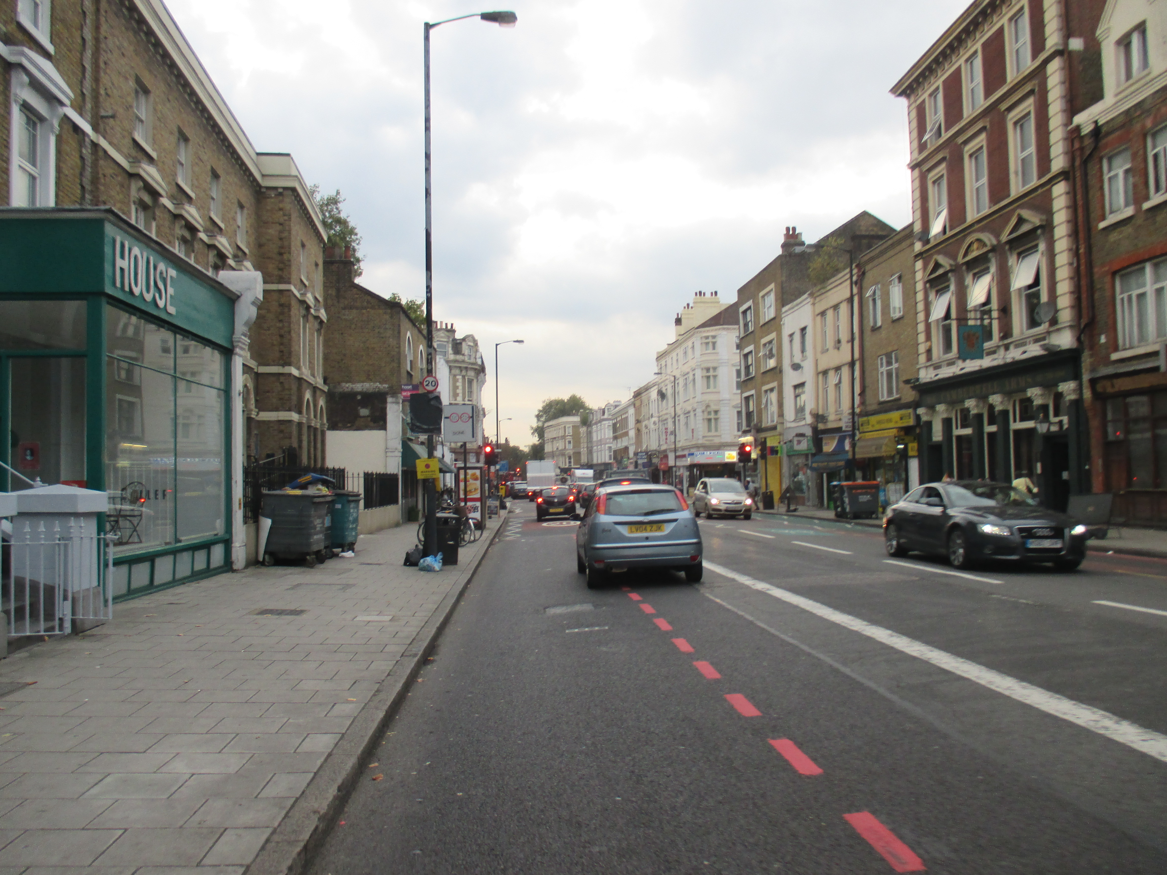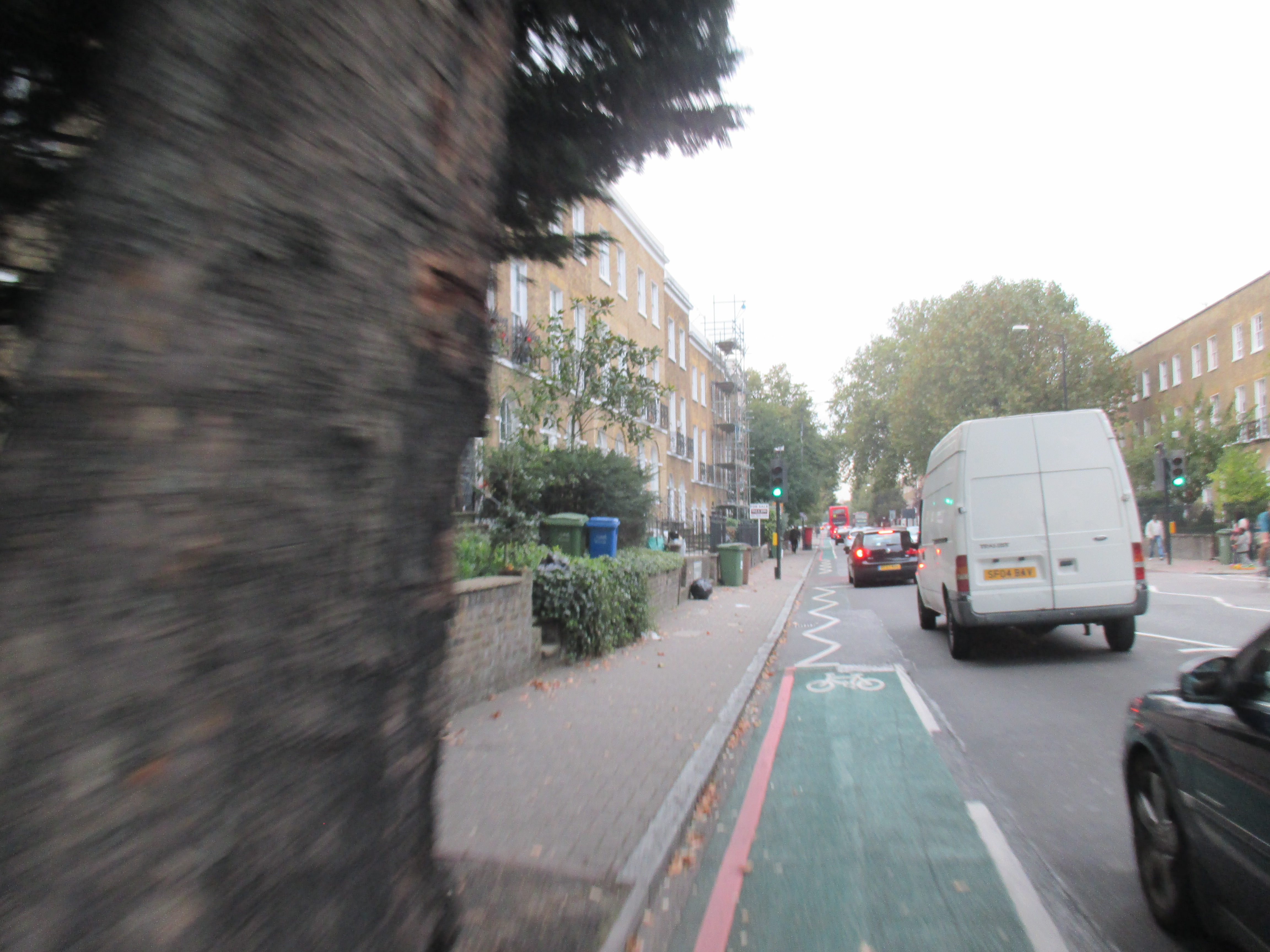 I ride out of the New Cross triangle, back on the last stretch, past another retail park and supermarket, a dirty bus garage, taking the left fork away from the Old Kent Road, the arse of London, whose long intestinal tract I’ve been following all day. Through Peckham, past fenced-off piles of rubble-remains of Wood Dene. Like Liverpool, many of Peckham’s worse council estates have been demolished but replaced with something more homely and pleasant, low-rise houses and small blocks with ample parking and garden spaces. Cyclists weave in and out of the traffic with the sense of direction and safety as mayflies. Few have helmets or lights, and most I see skip the red lights, causing danger to pedestrians. In London, it’s something you get used to, but the arrogance and aggression of cyclists here is quite extraordinary. Getting closer to home.