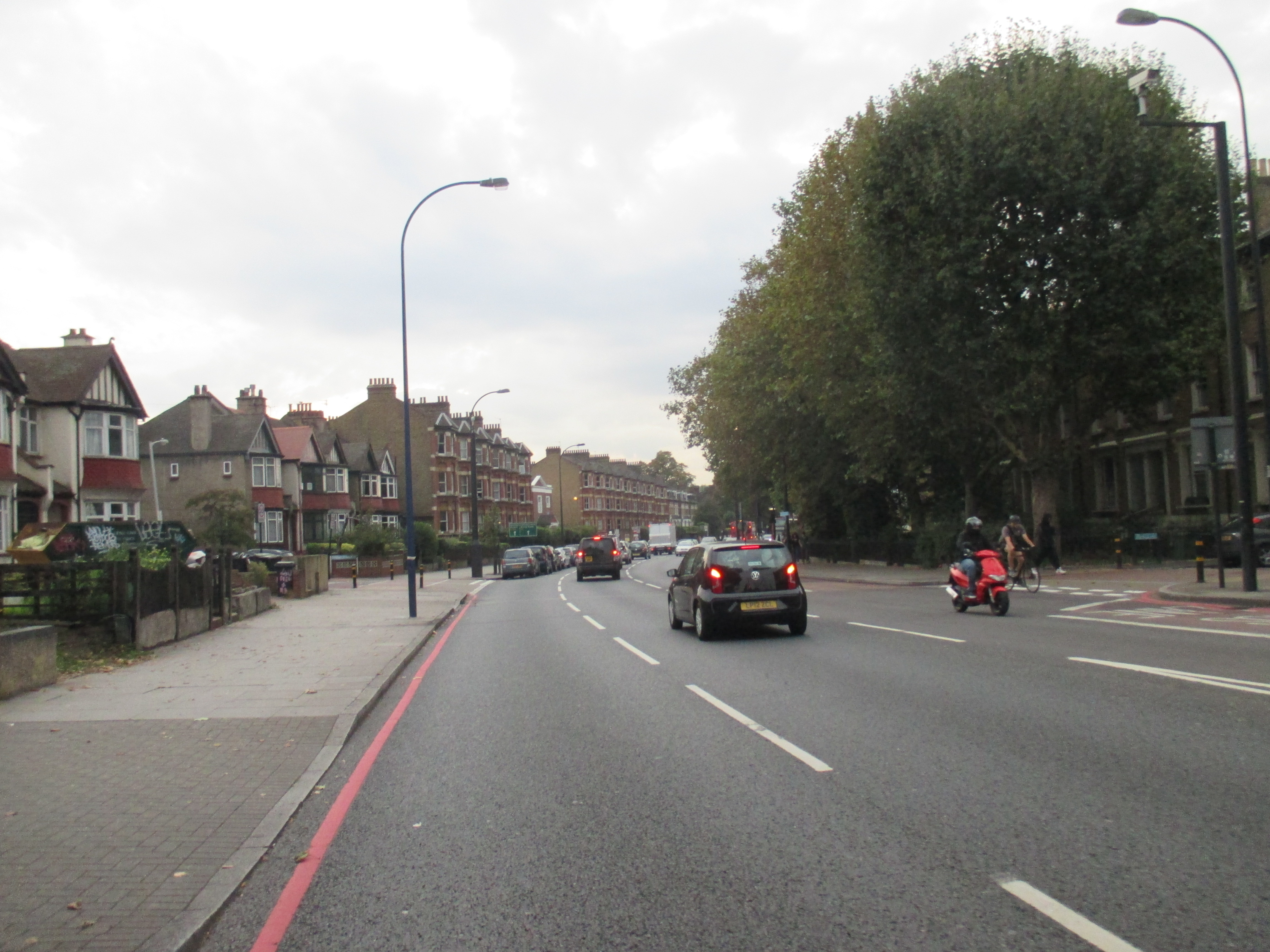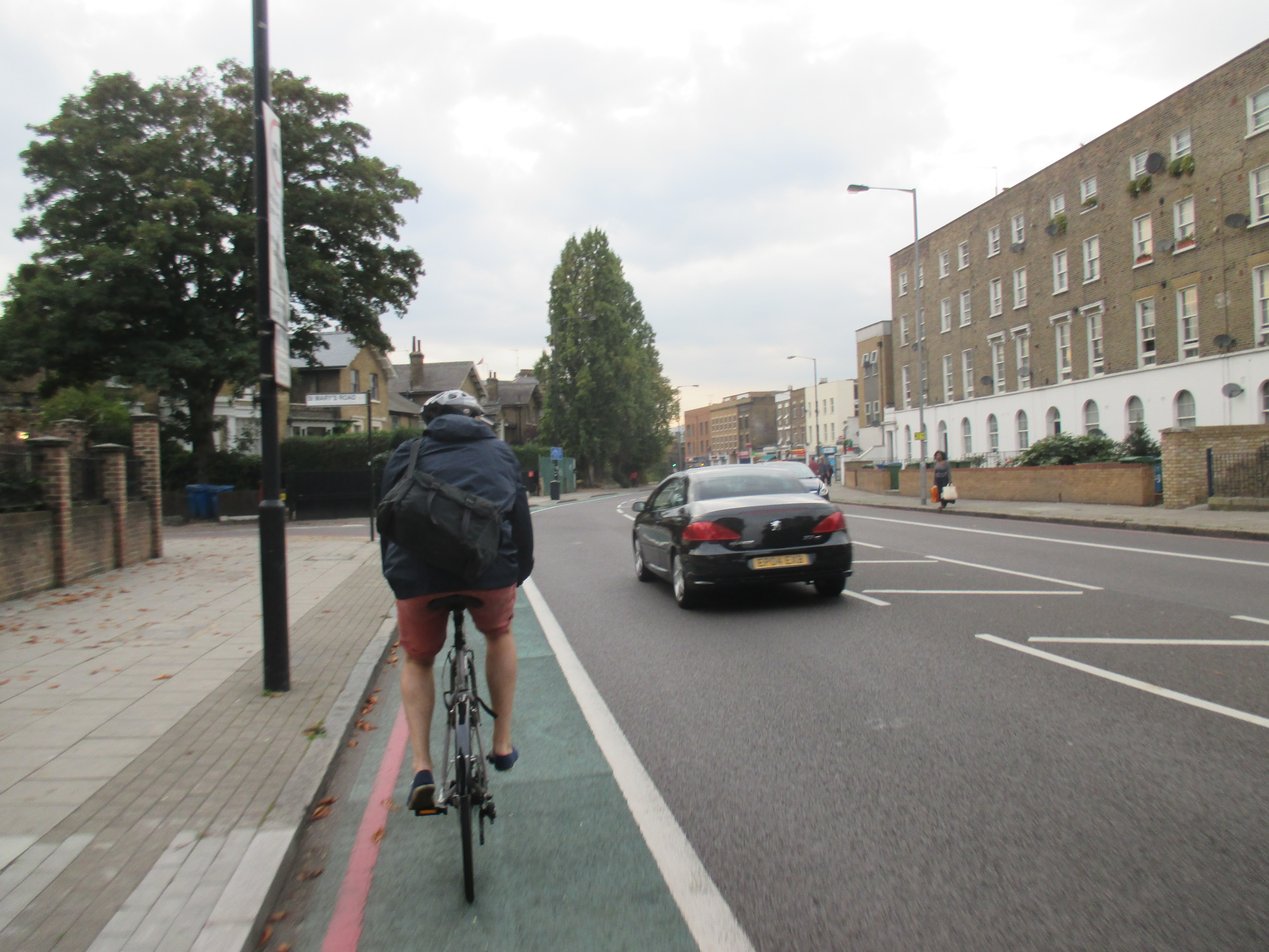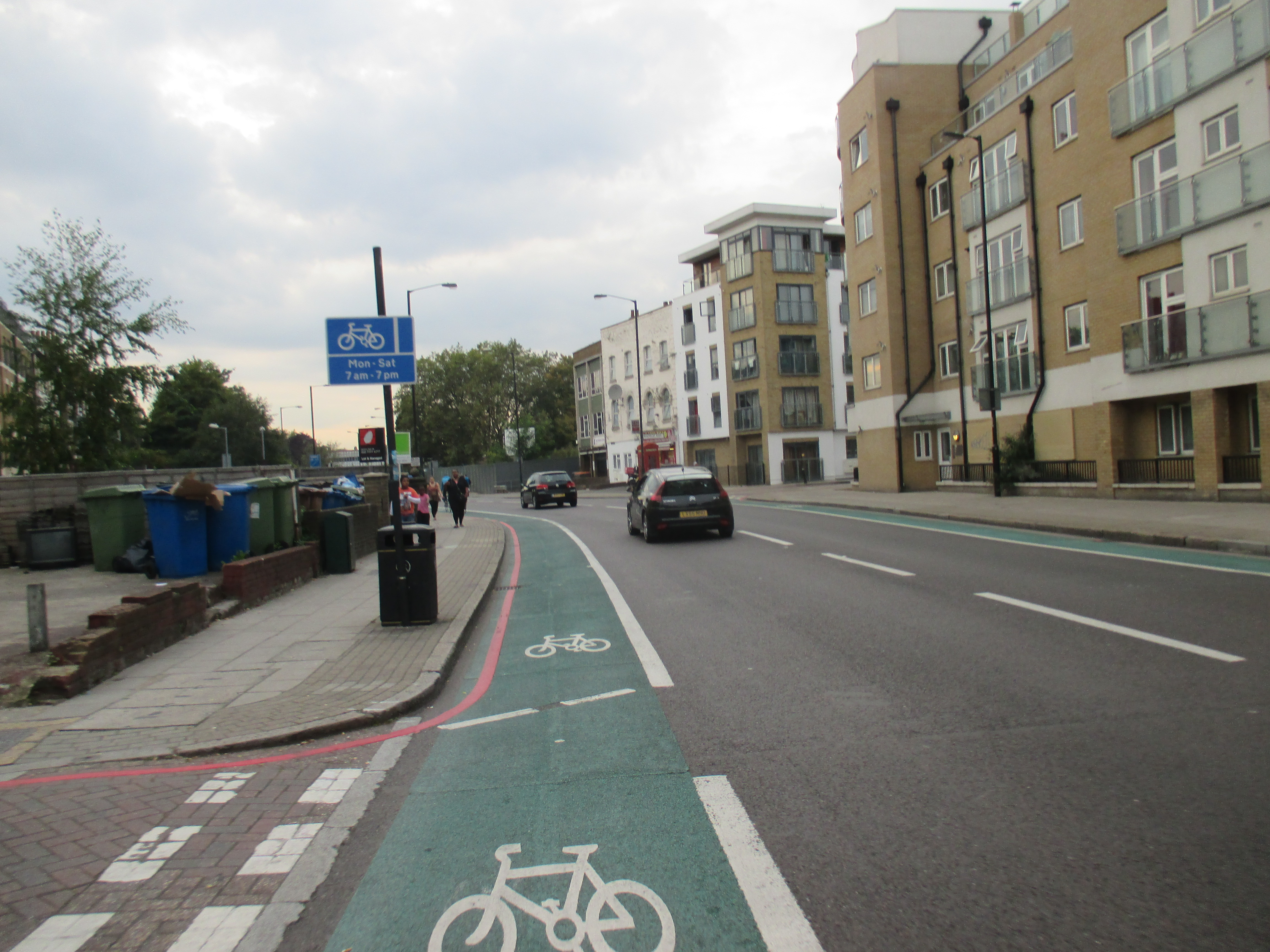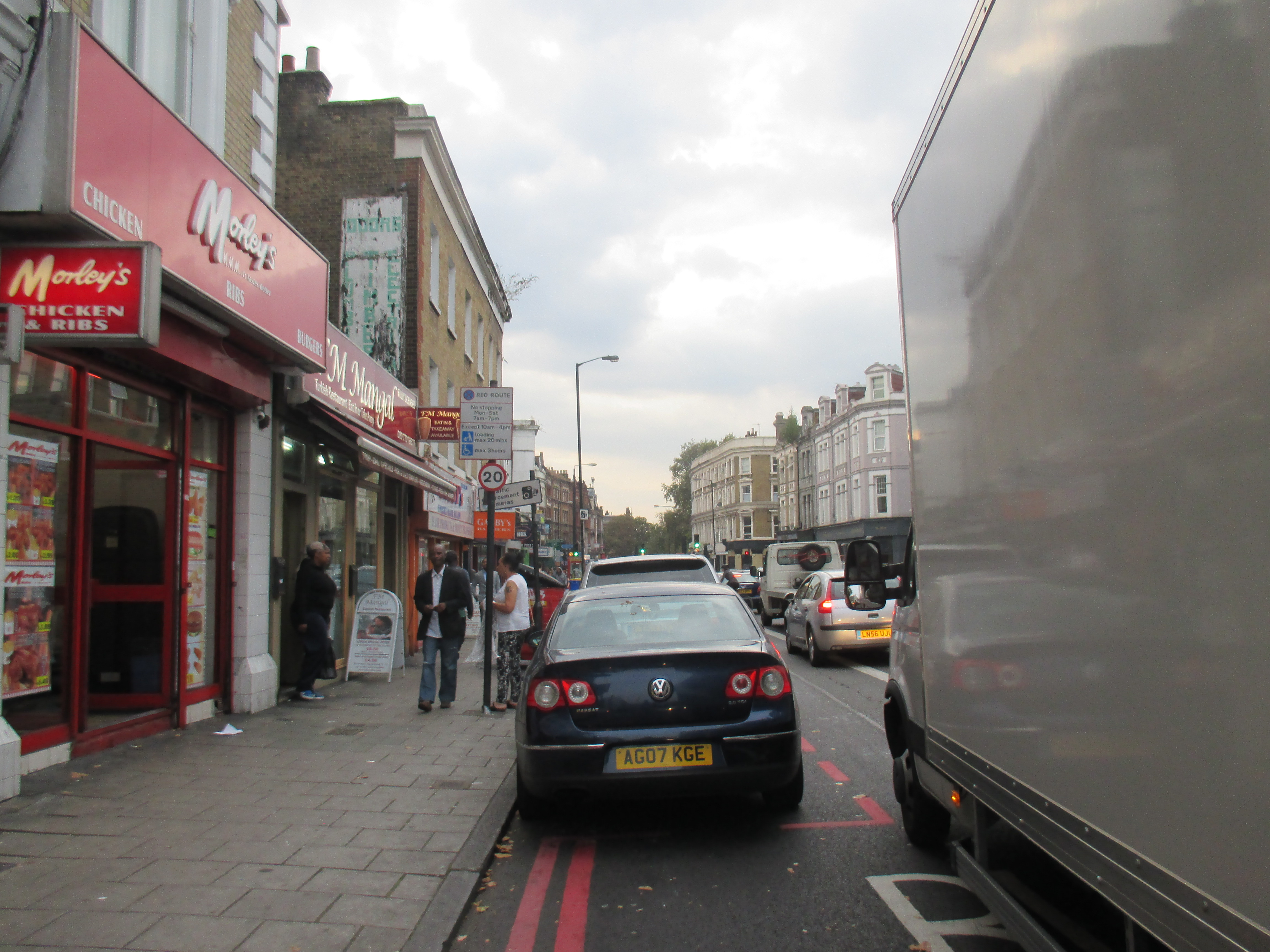 I ride out of the New Cross triangle, back on the last stretch, past another retail park and supermarket, a dirty bus garage, taking the left fork away from the Old Kent Road, the arse of London, whose long intestinal tract I’ve been following all day. Through Peckham, past fenced-off piles of rubble-remains of Wood Dene. Like Liverpool, many of Peckham’s worse council estates have been demolished but replaced with something more homely and pleasant, low-rise houses and small blocks with ample parking and garden spaces. Cyclists weave in and out of the traffic with the sense of direction and safety as mayflies. Few have helmets or lights, and most I see skip the red lights, causing danger to pedestrians. In London, it’s something you get used to, but the arrogance and aggression of cyclists here is quite extraordinary. Getting closer to home.