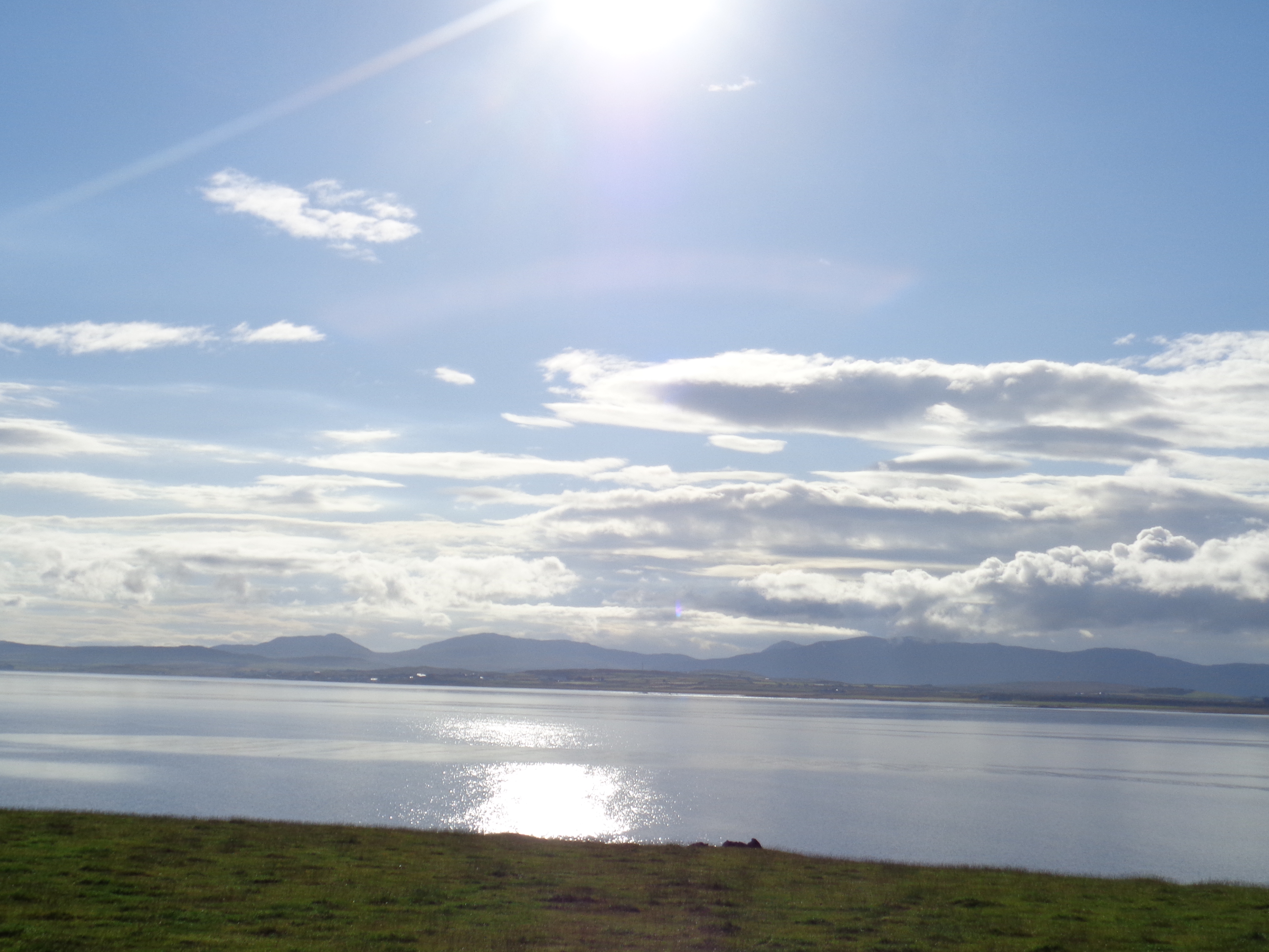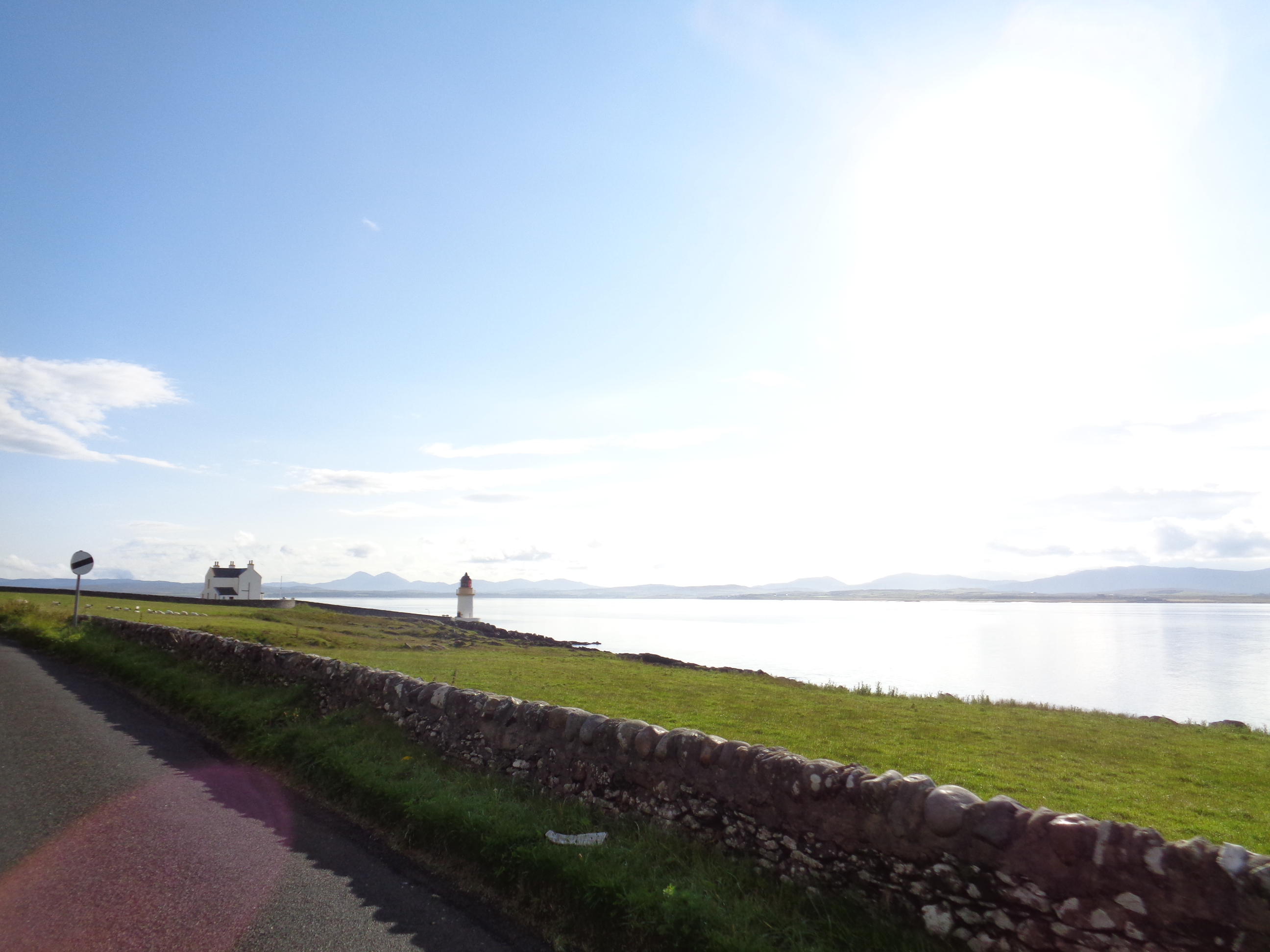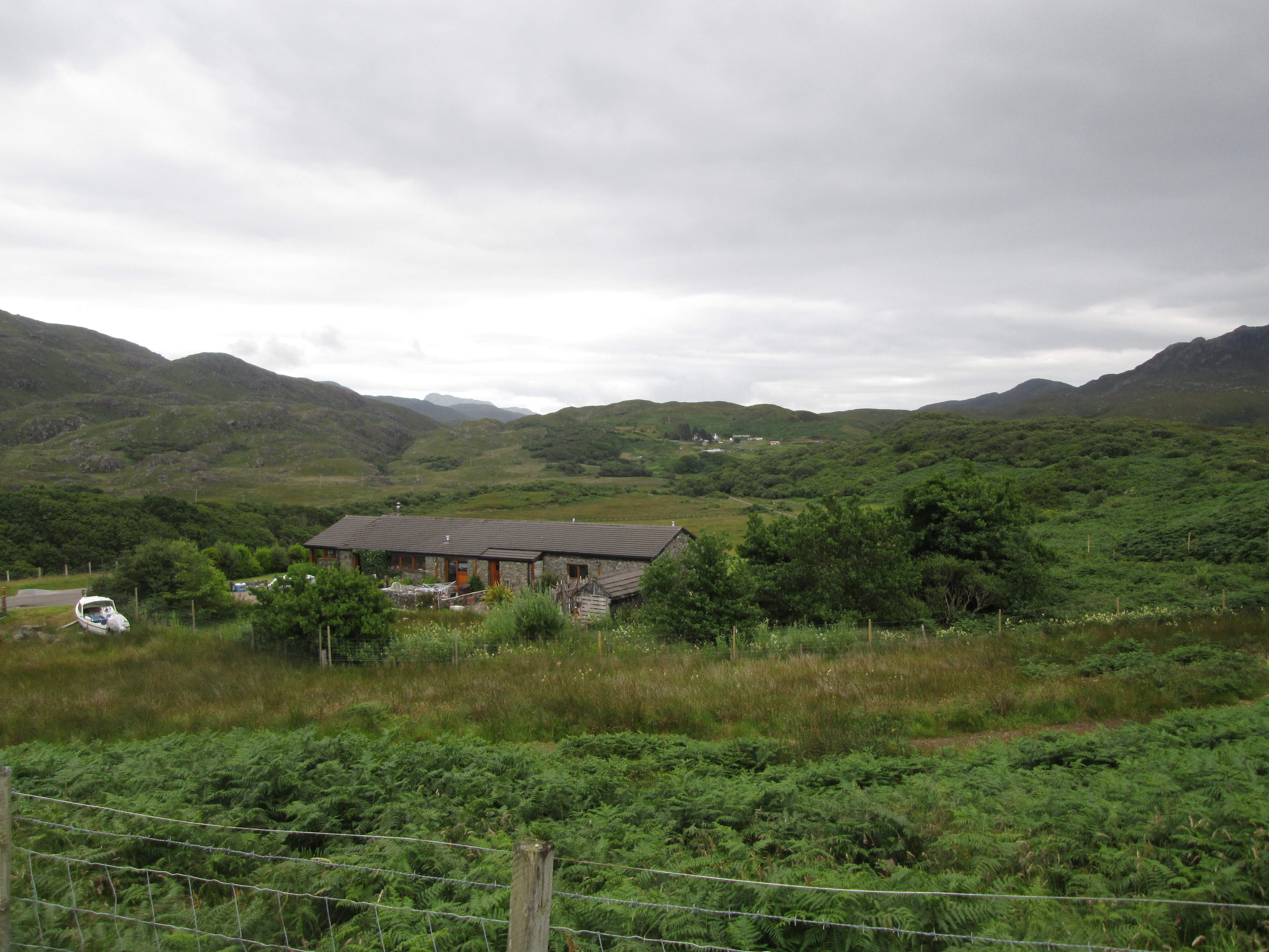The countryside leaving Dalmellington has been farmed with cattle, as has much of Ayrshire, and it gently slopes here and there with a pleasant though familiar aspect: green, farmed fields give way at their peaks to the beginnings of gentle mountains, marked with bursts of trees and shrubs. Further along, the road drills through a valley, small mountains sloping into the distance. It’s a relatively quiet road and there’s no threat of rain today. I pedal along gently, slowly building up a pace.