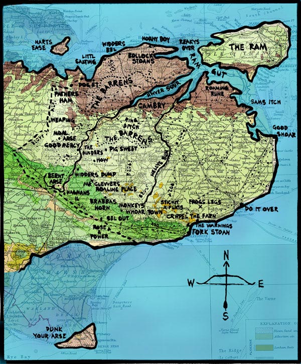 riddley walkerAcross the tranquil South Downs to Brighton, where I’ll see familiar faces at last, and visit the Grand Hotel where Debussy writes La Mer, before skulking the streets in drunken exuberance to piece together Brighton’s historic seediness, in Graham Greene, Patrick Kavanagh, and the psychological ‘escape’ of a Brighton hotel room. I’ll pass the De La Warr pavilion at Bexhill, along Hastings to Winchelsea, for visions of Turner and Millais. Back off any map again, across weird Romney Marshes, Ridley Walker country, to Dungenness and Llyd, and from there to Folkstone, and Dover, mapping stories of migration and trade, and finding remnants of Marconi’s radio tests and secret tunnels.